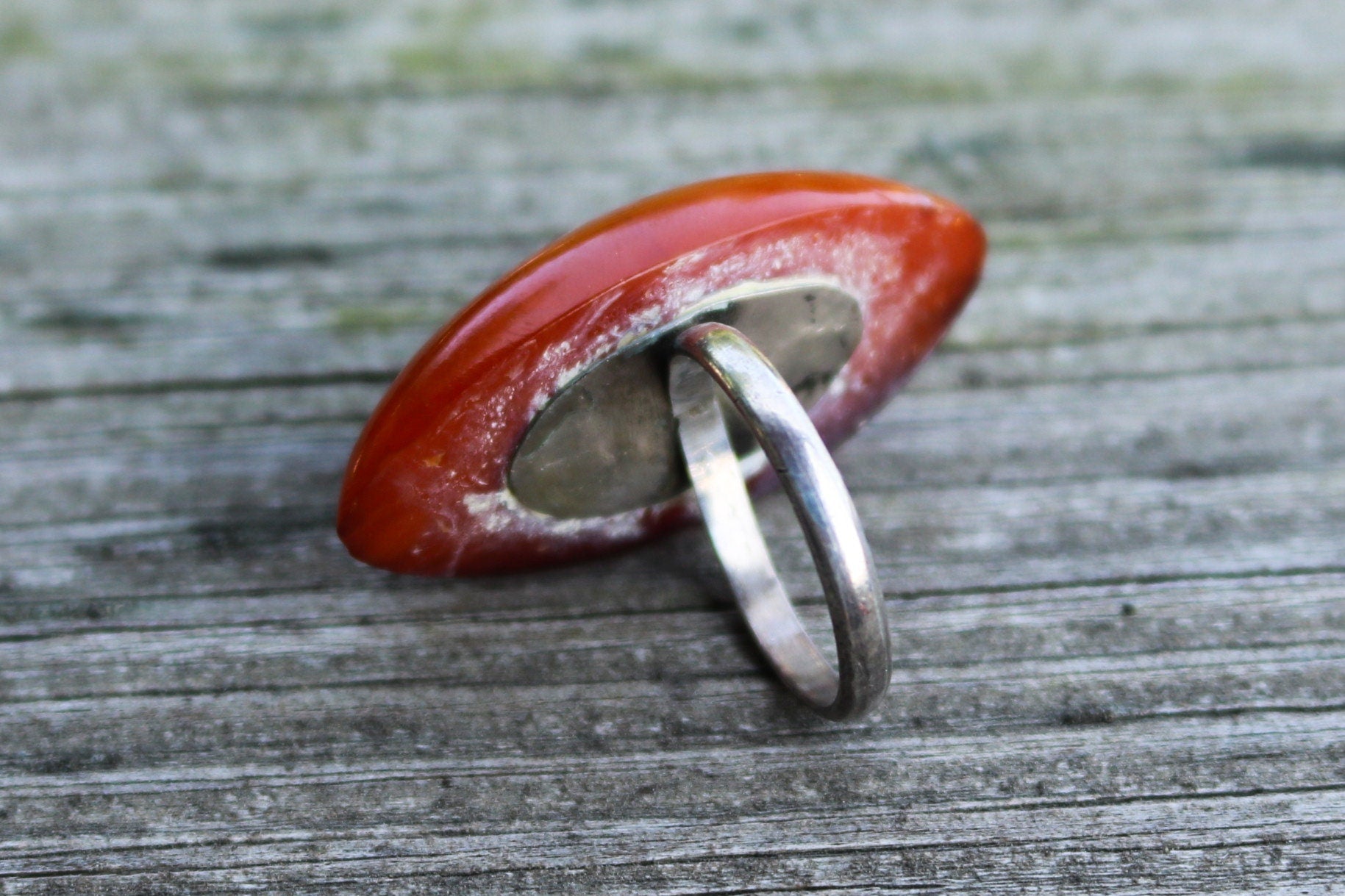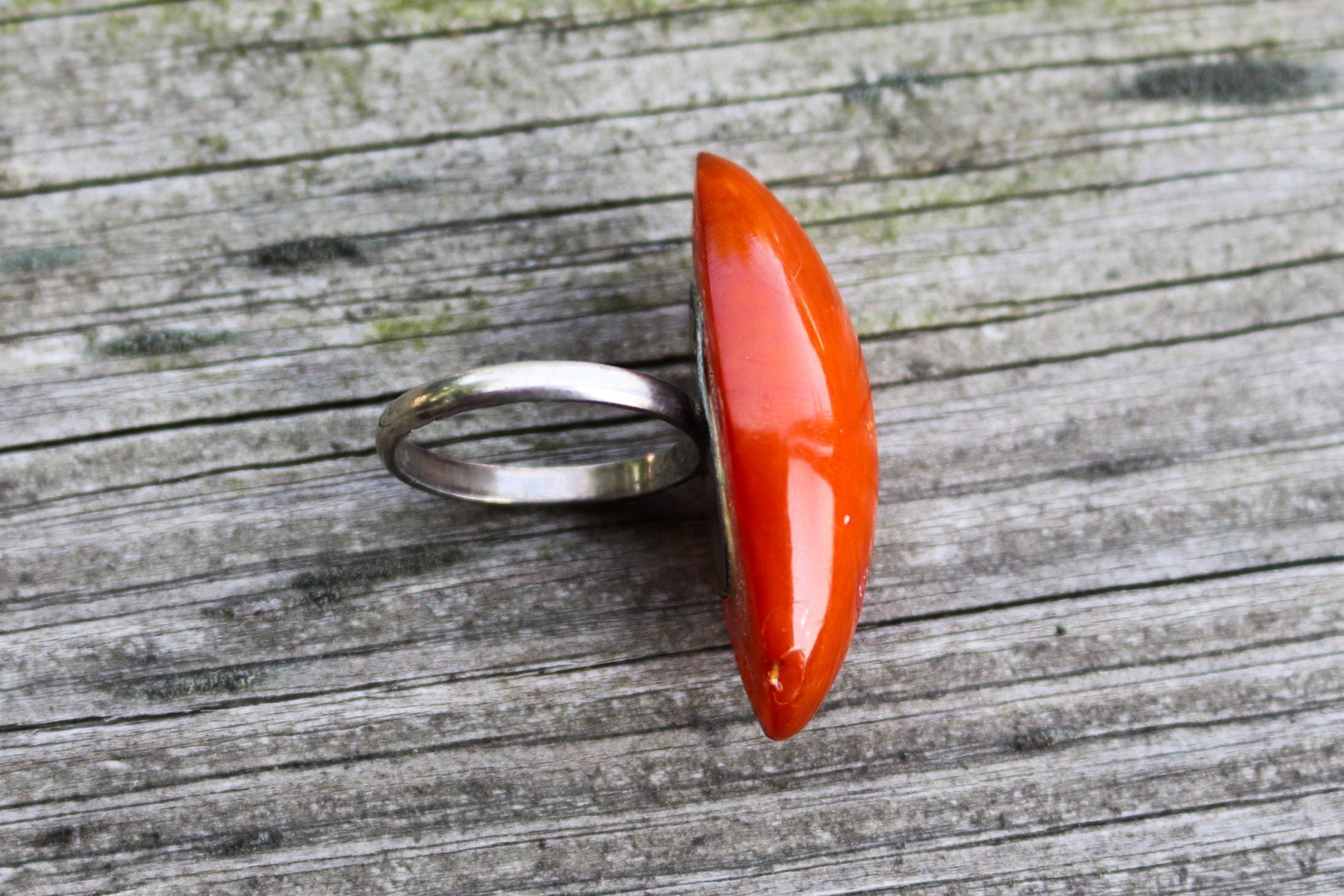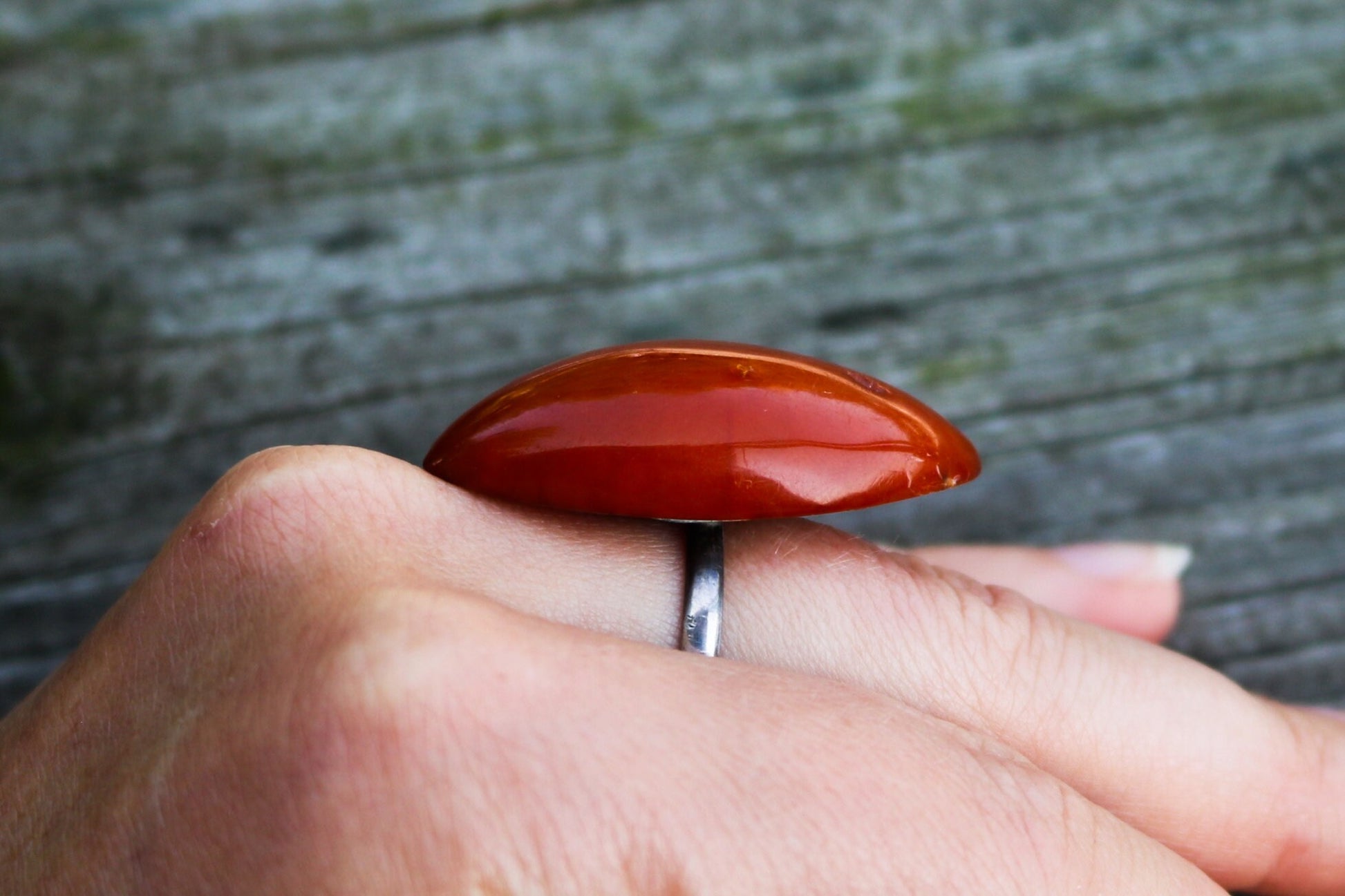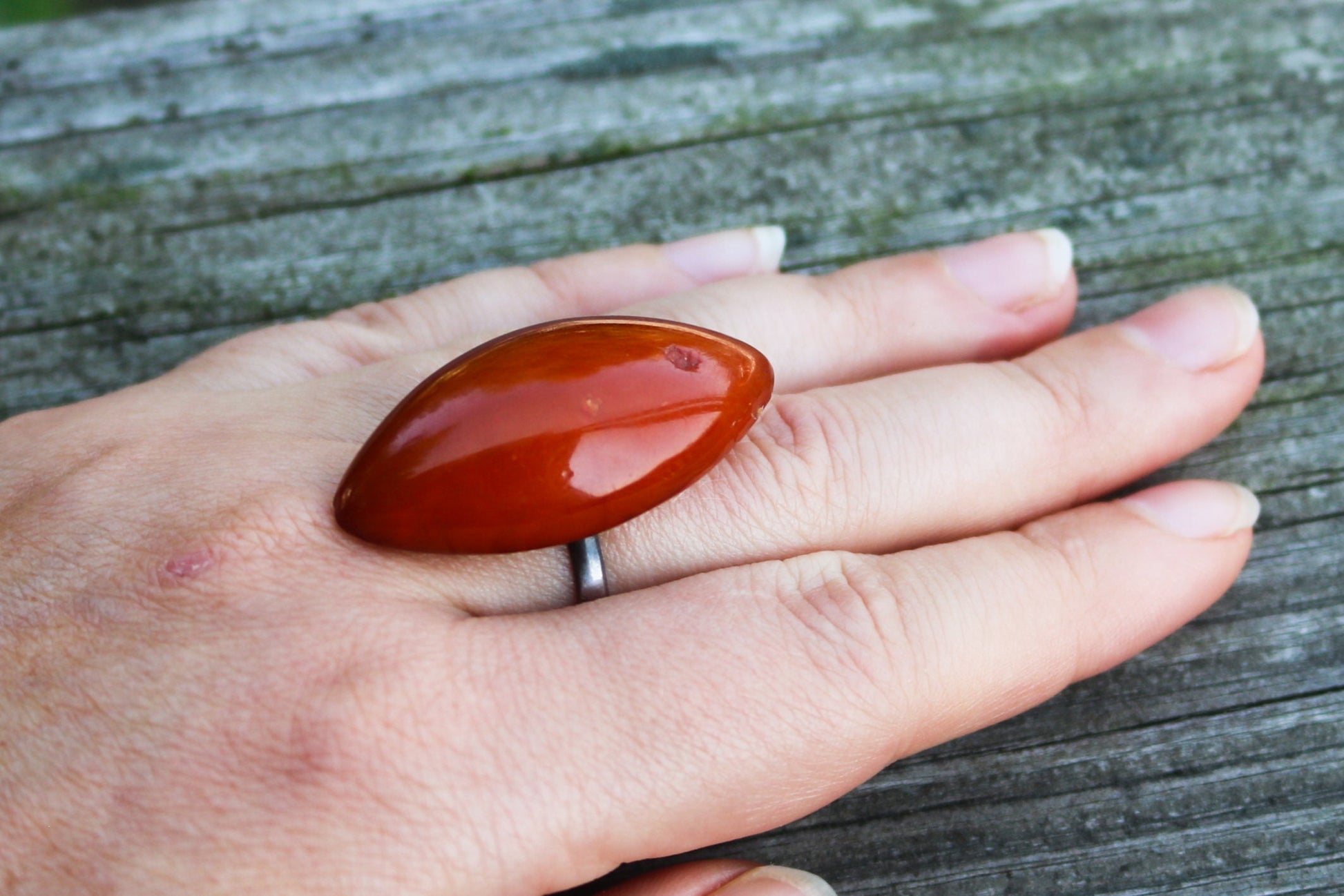 Antique Baltic Amber Red Ring Marquise Poland 1960s size 9 Untreated Natural Jewelry 925 Silver 7.5 gram