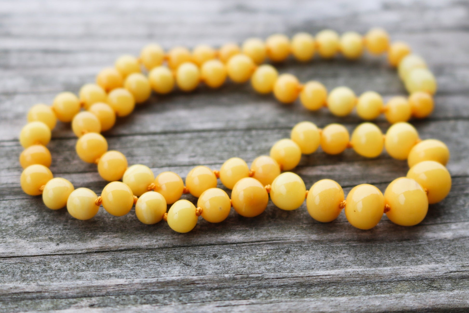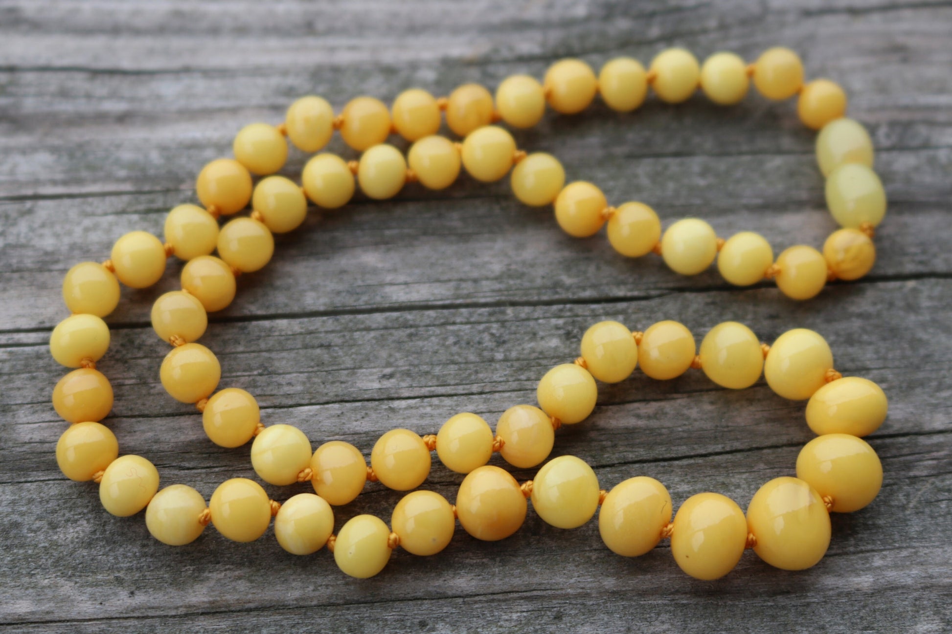 Baltic Amber calibrated necklace made out of hand carved baroque shaped beads in antique butterscotch (yolk) color. This is natural amber; each bead is made out of one piece of solid amber.