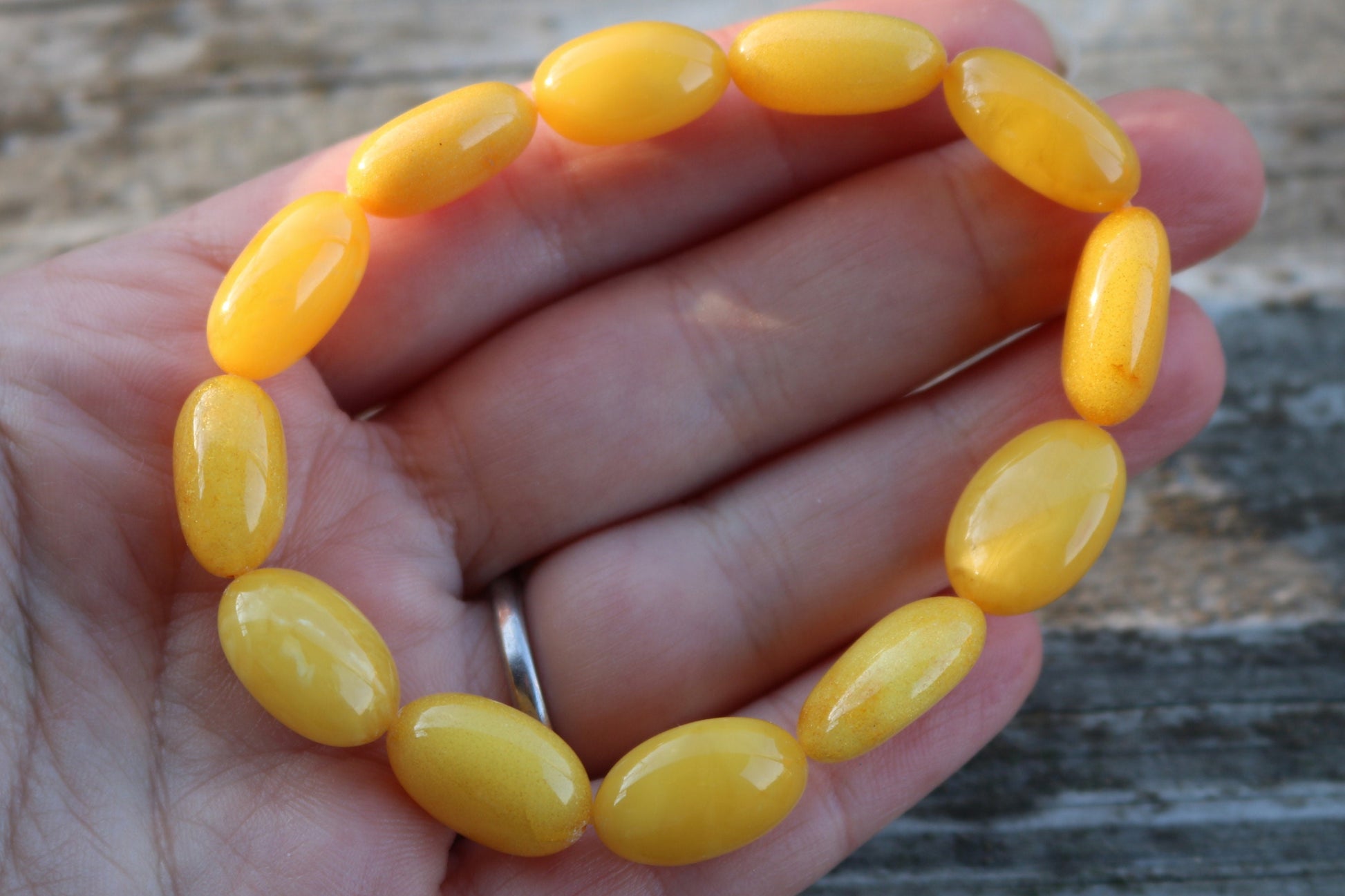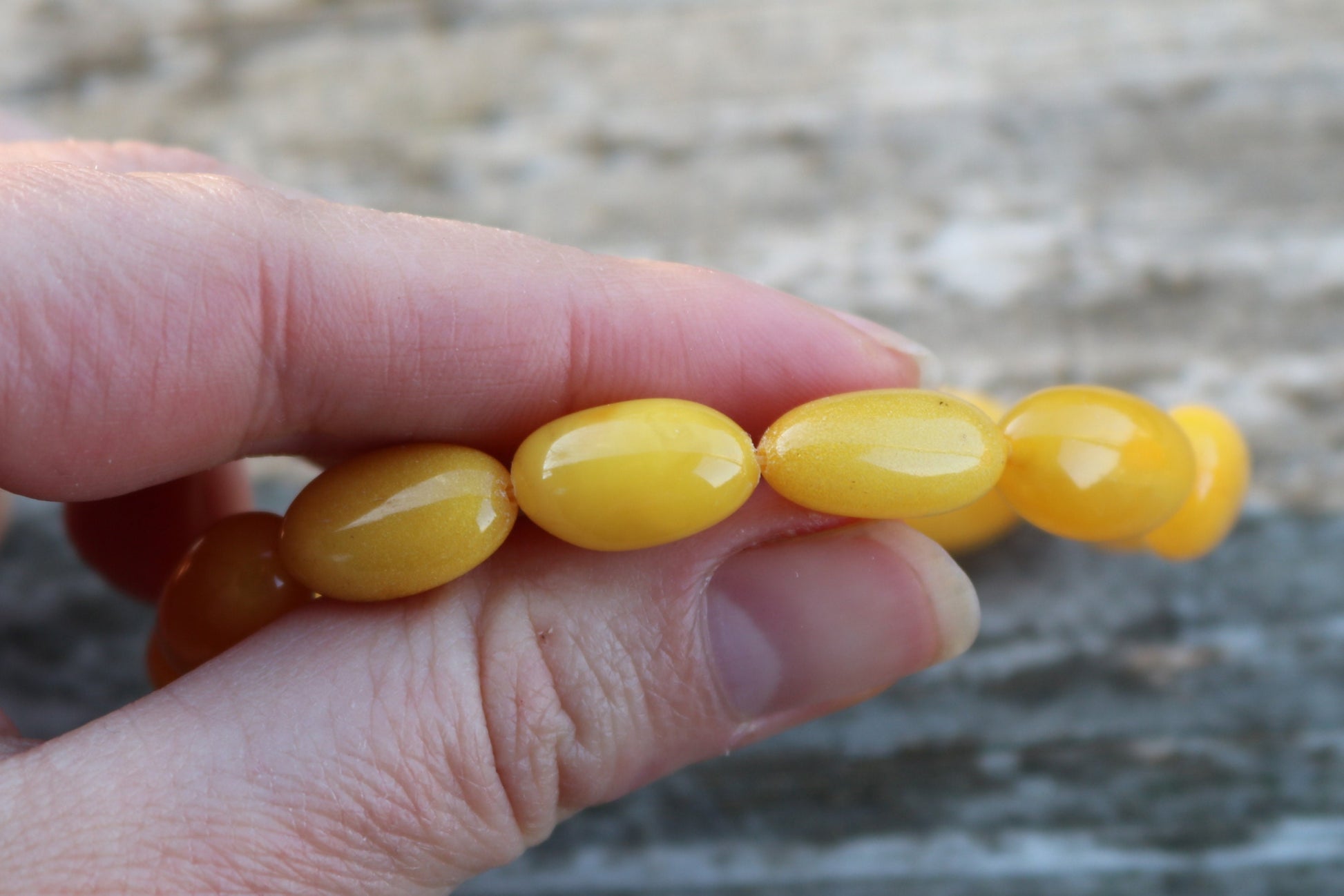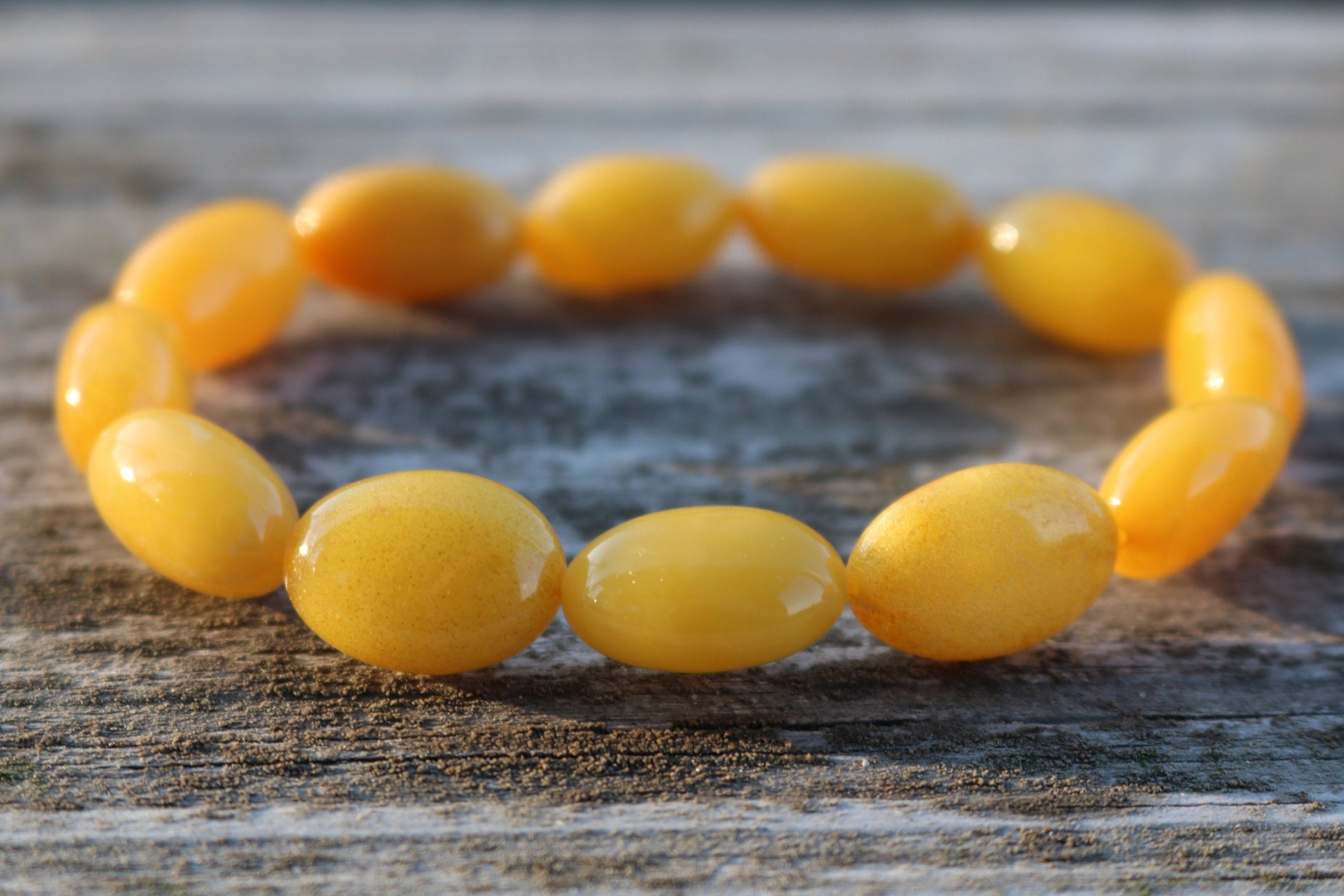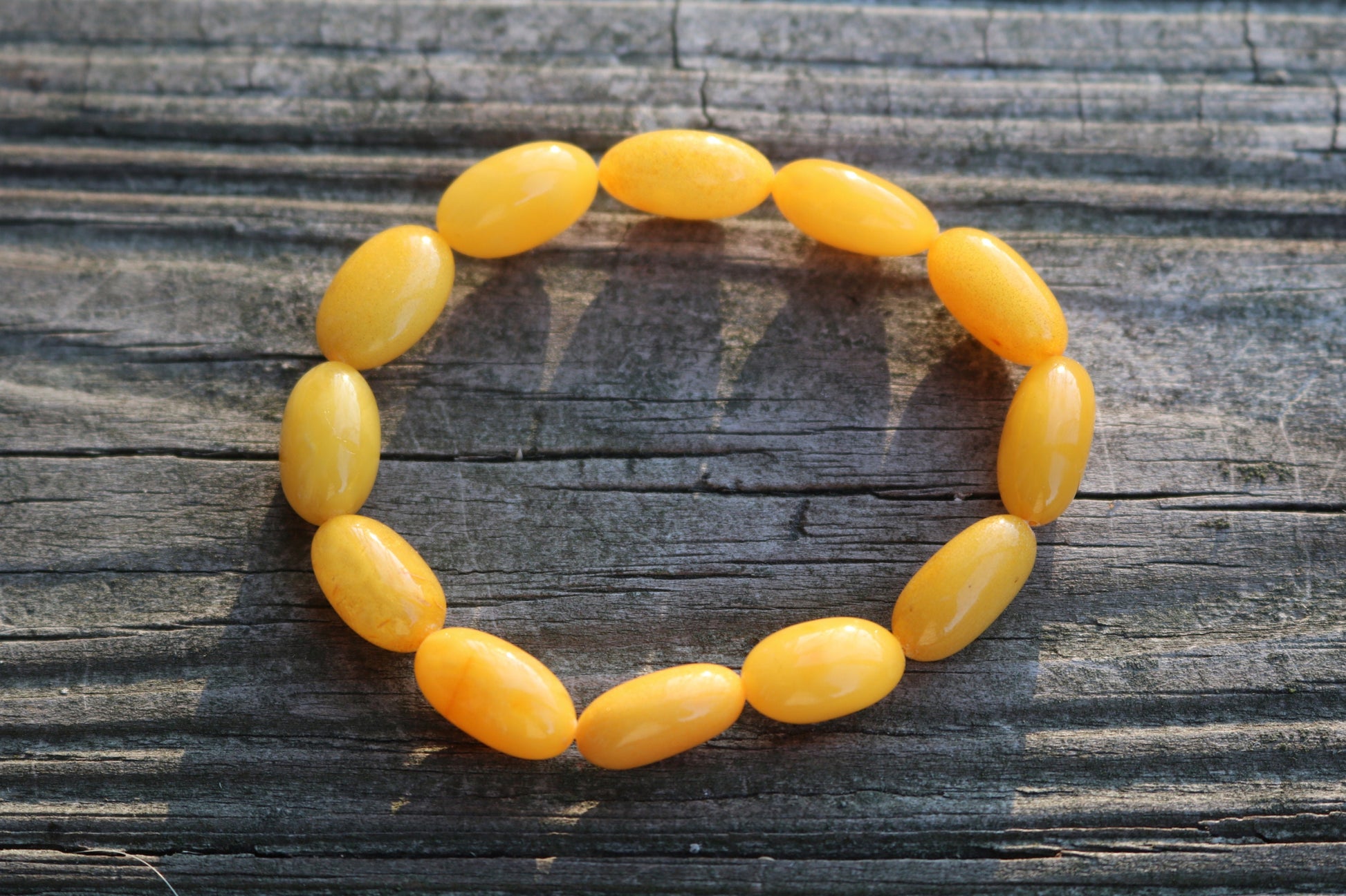 Baltic Amber Bracelet Antique Butterscotch Olive Beads Natural Yolk Unisex Jewelry 7.5" 10 gram