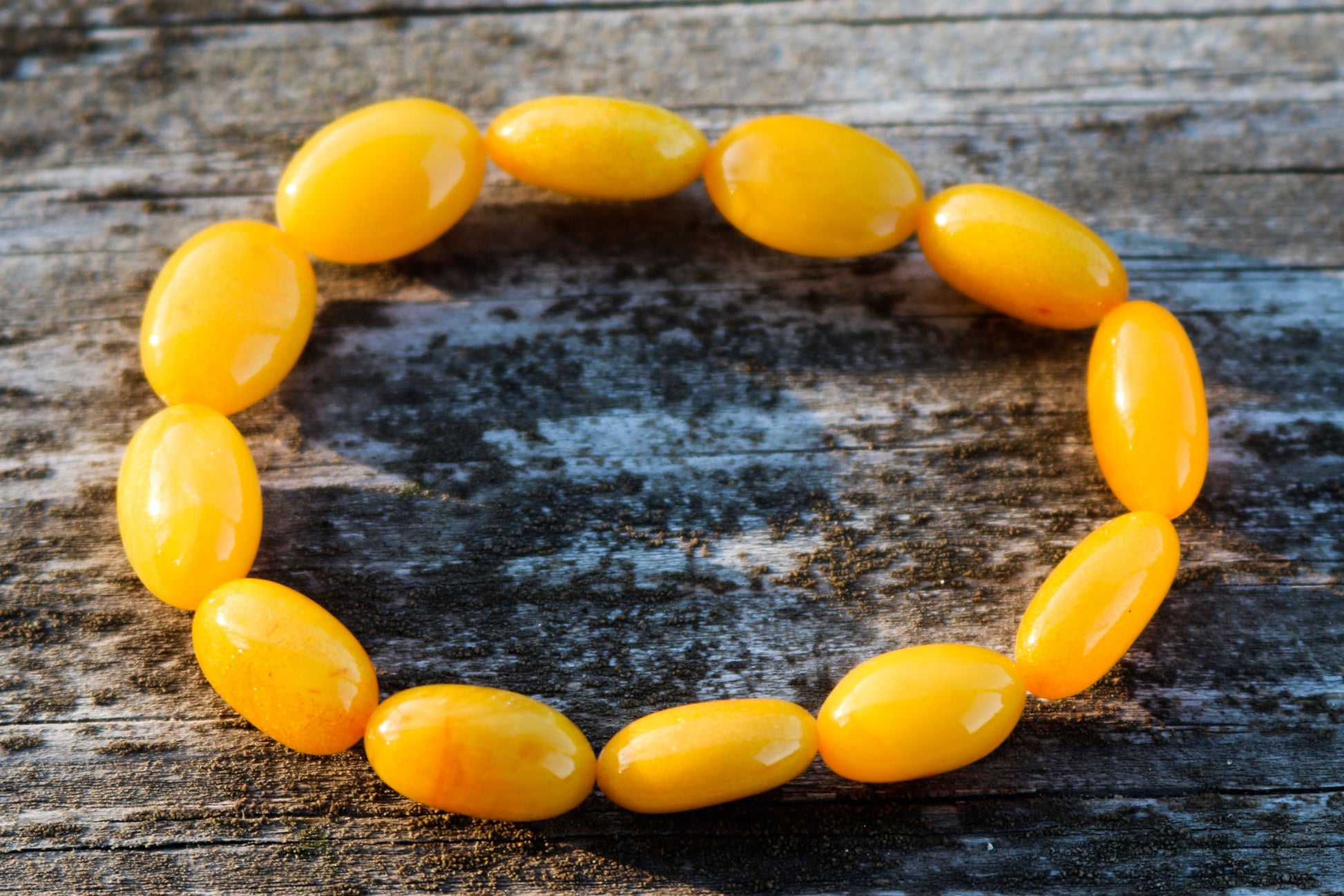 Baltic Amber hand carved bracelet made out of antique butterscotch (yolk) color. Solid natural amber.