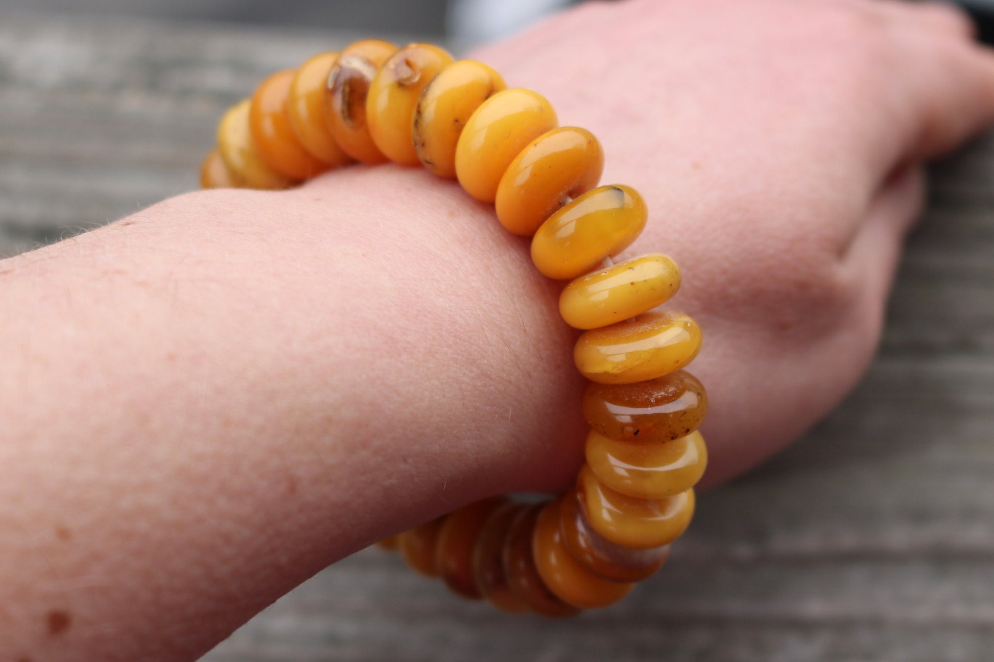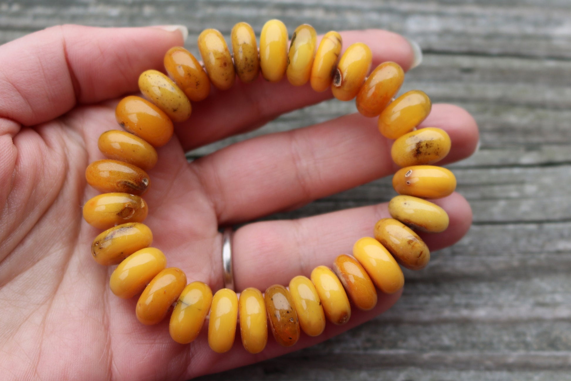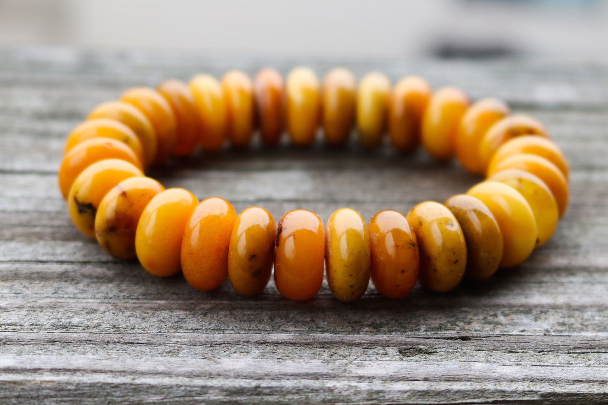 Baltic Amber Bracelet Antique Butterscotch Rondelle Beads Natural Untreated Unisex Jewelry Yolk 8.5" 30 gram