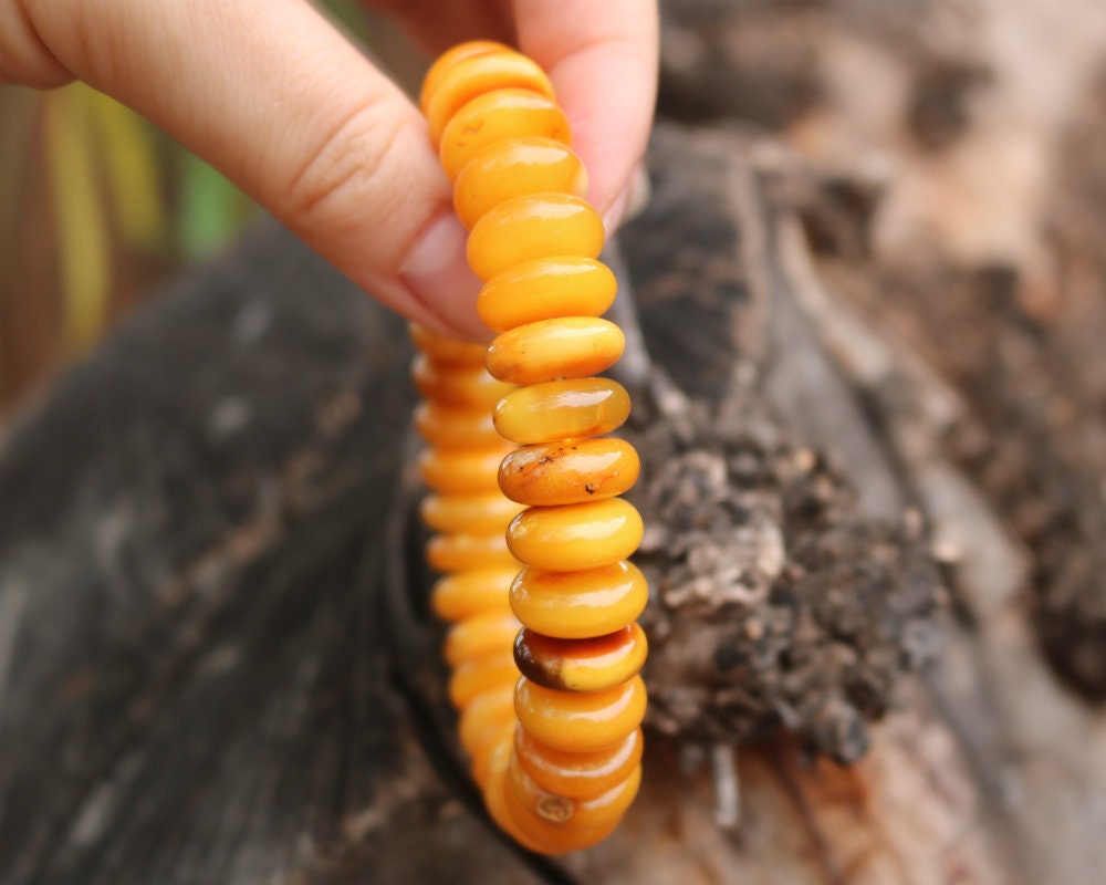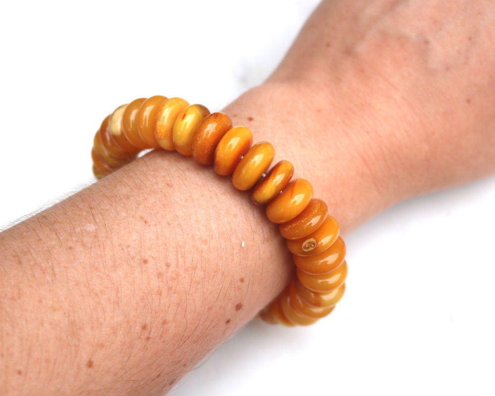 Baltic Amber Bracelet Antique Butterscotch Rondelle Beads Natural Yolk Unisex 31 gram
