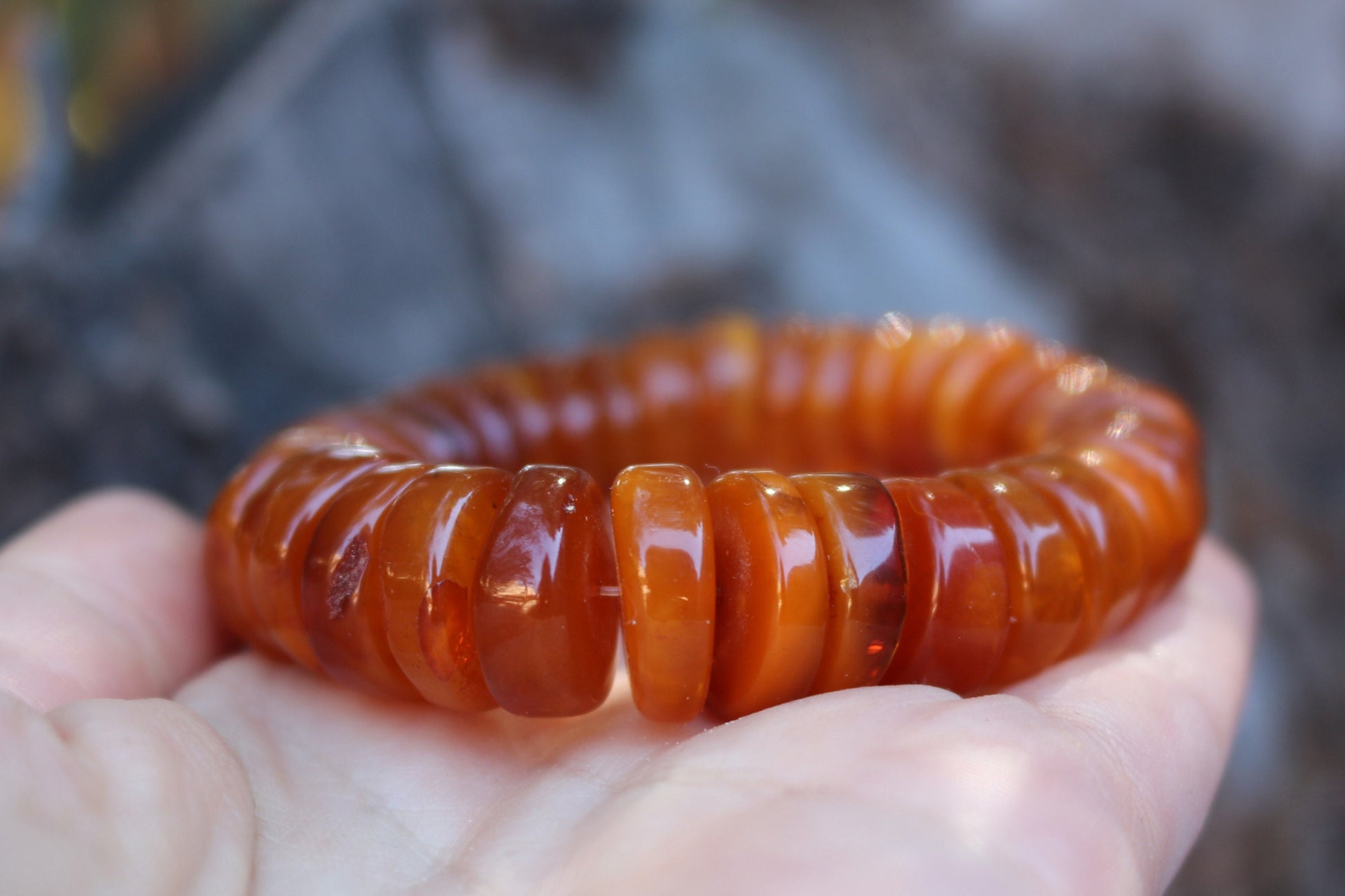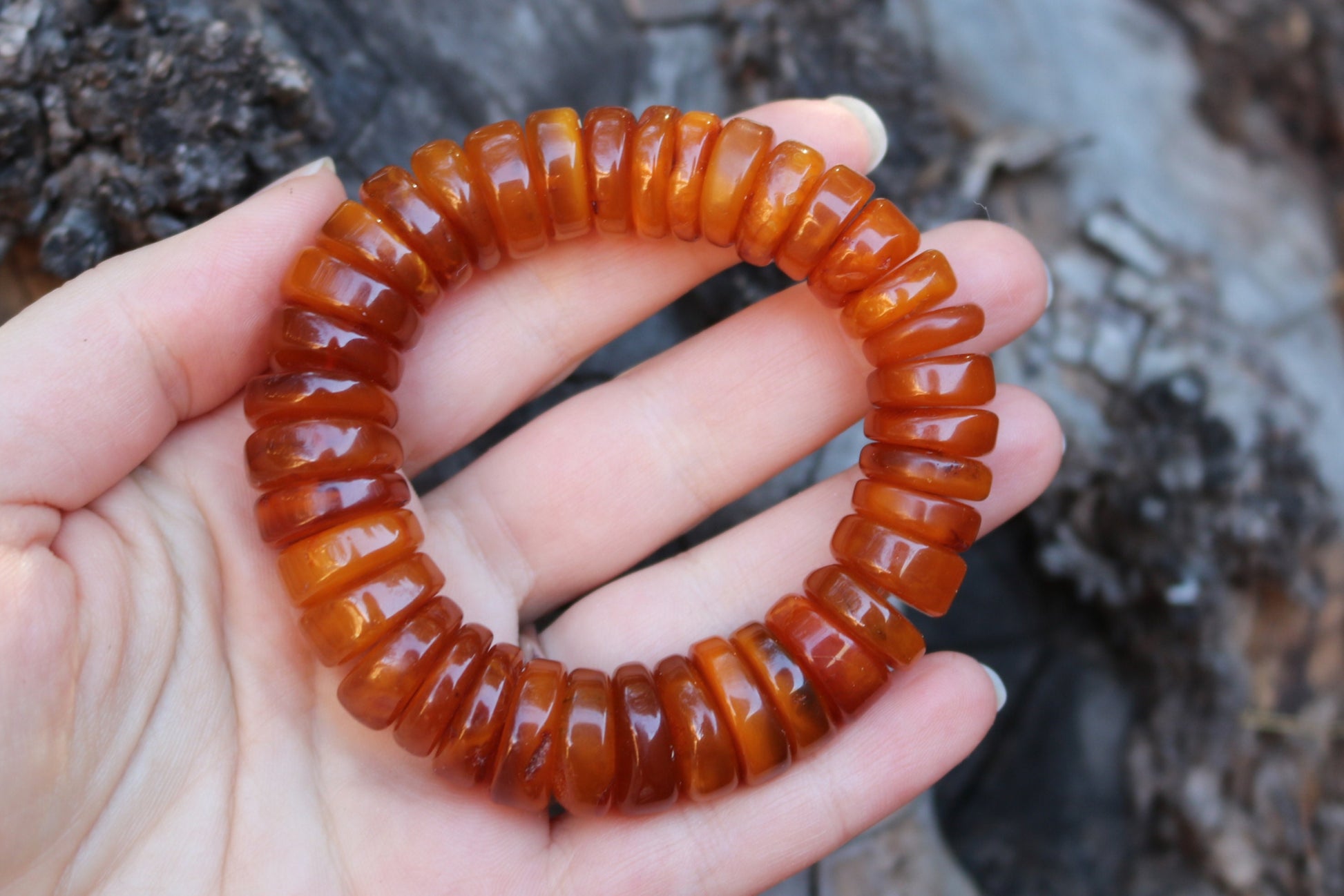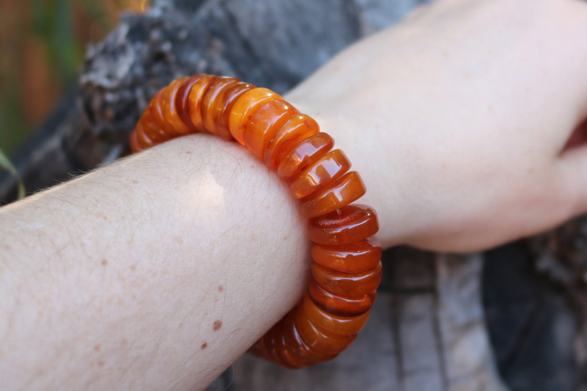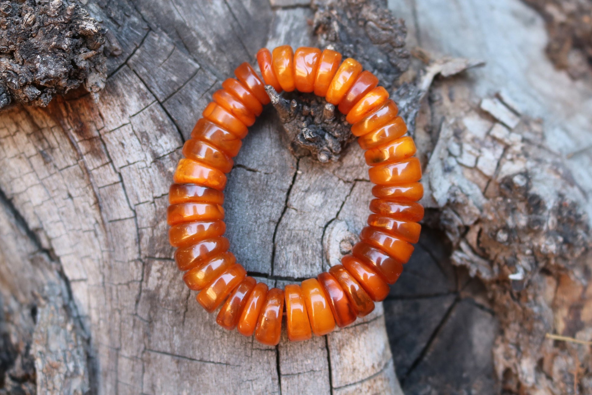 Baltic Amber Bracelet Antique Disc Beads Caramel Natural Unisex Jewelry 34.3 gram