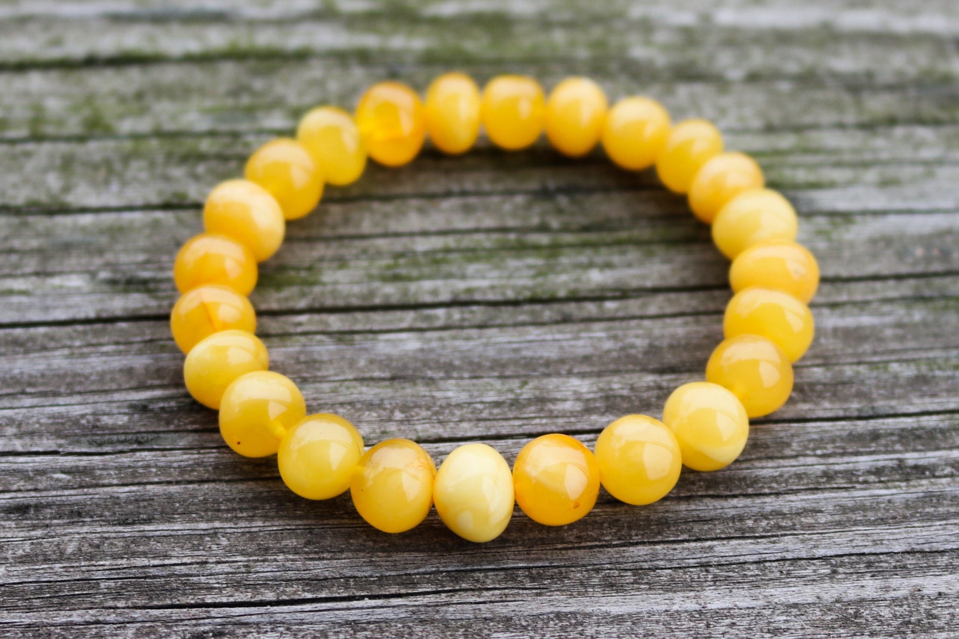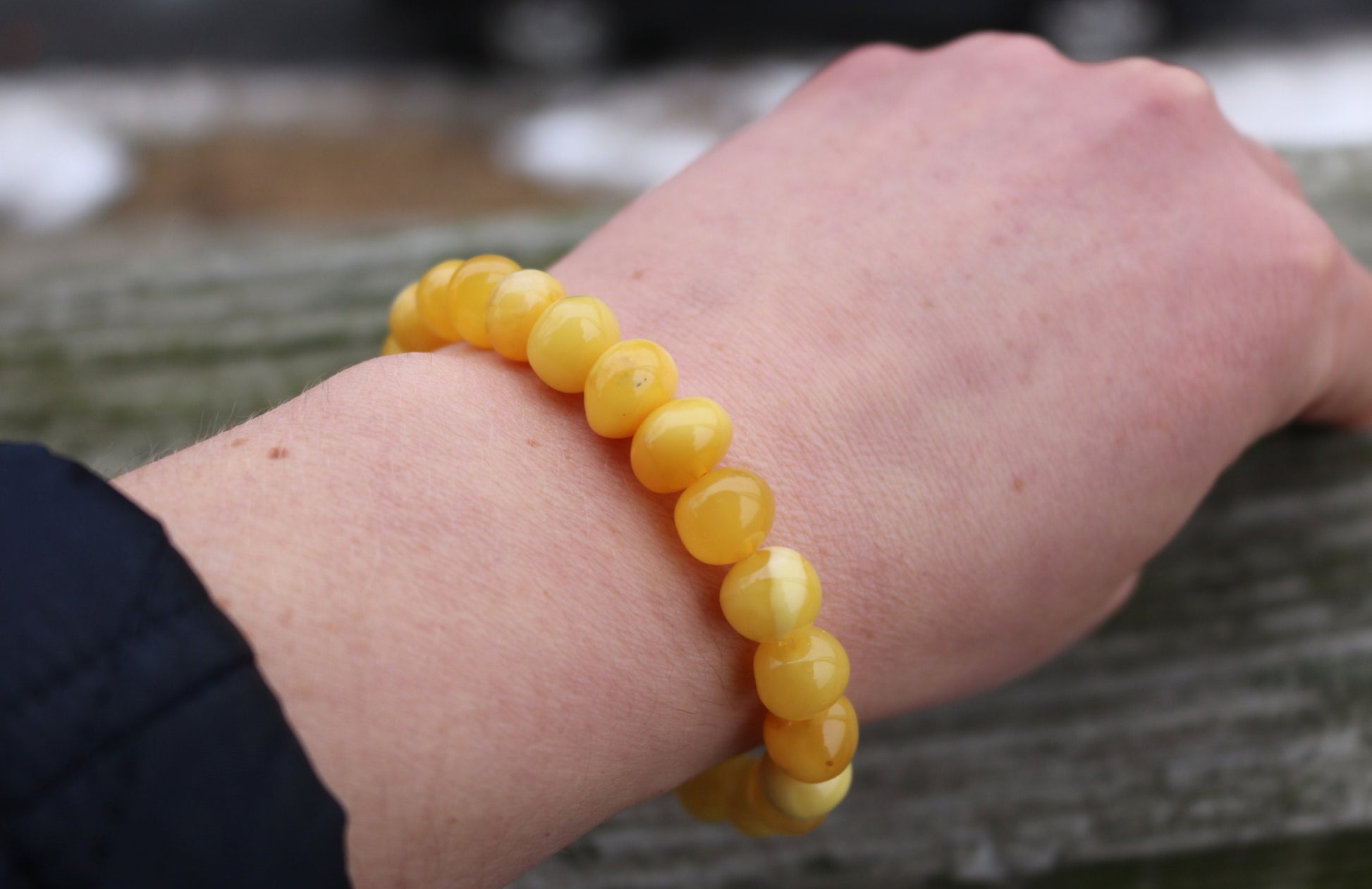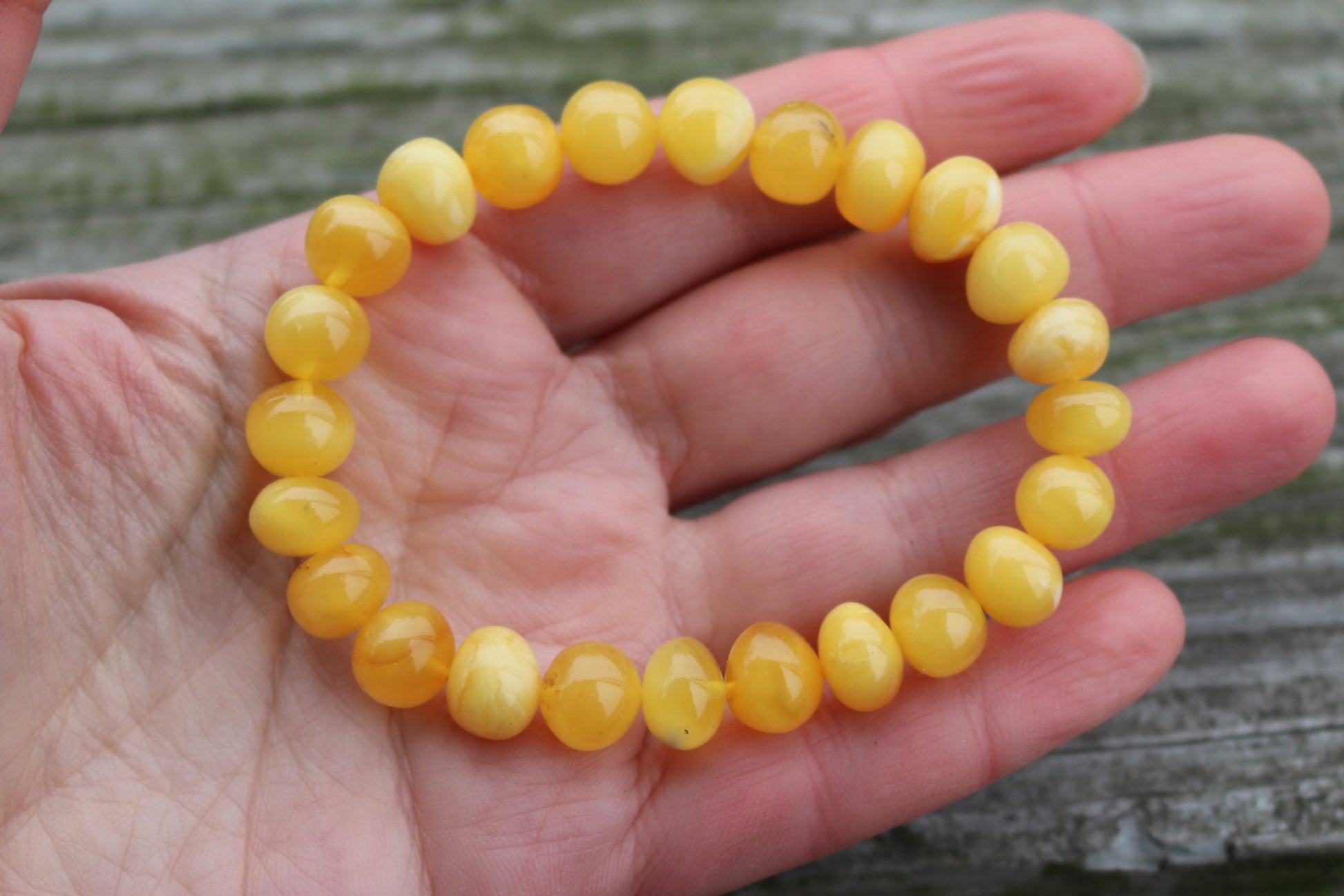 Baltic Amber stretch bracelet made out of natural untreated color polished beads. Natural solid amber.