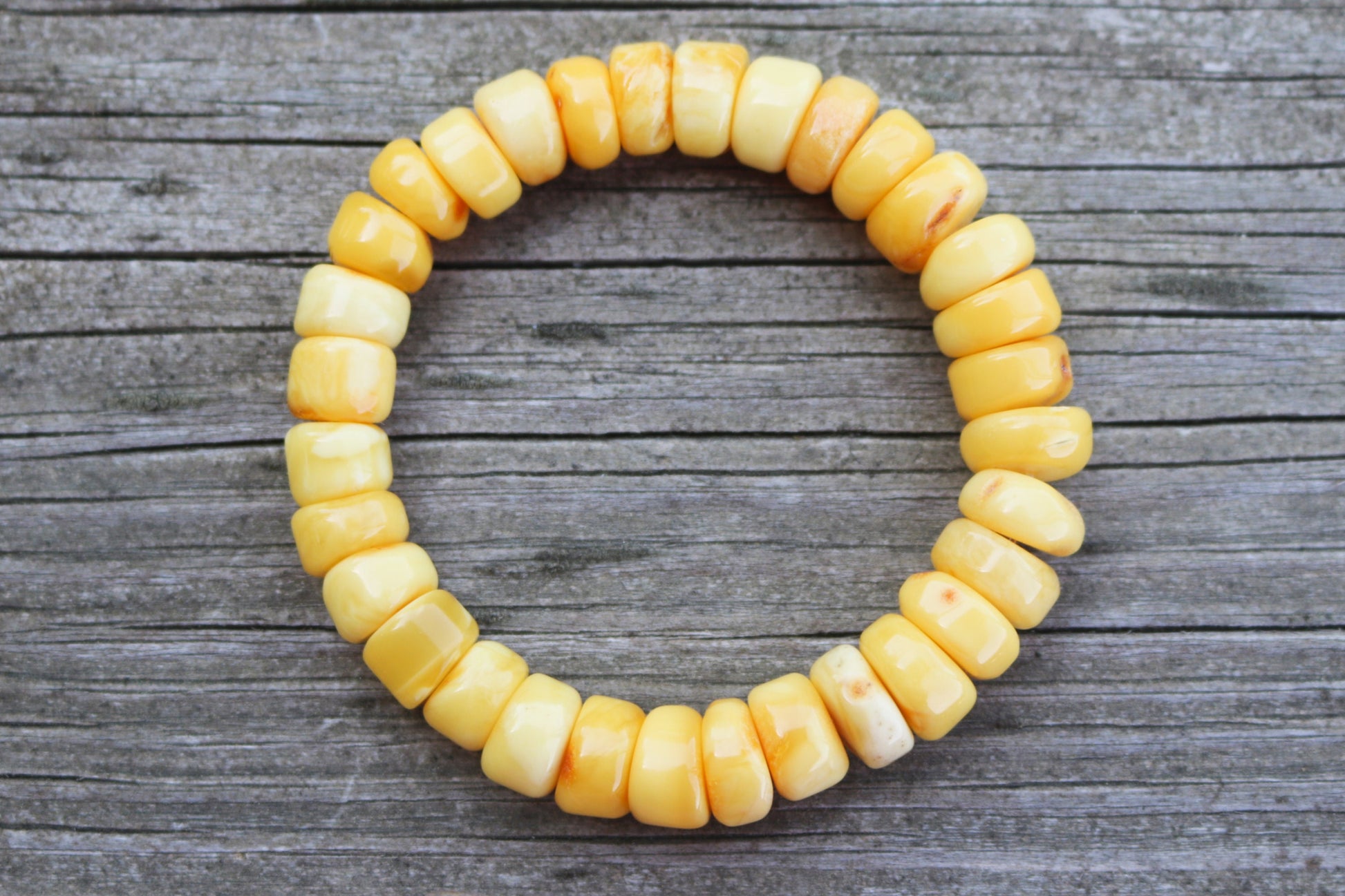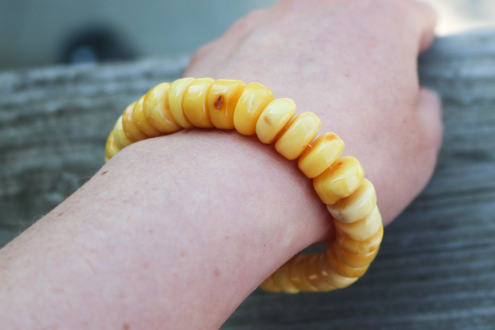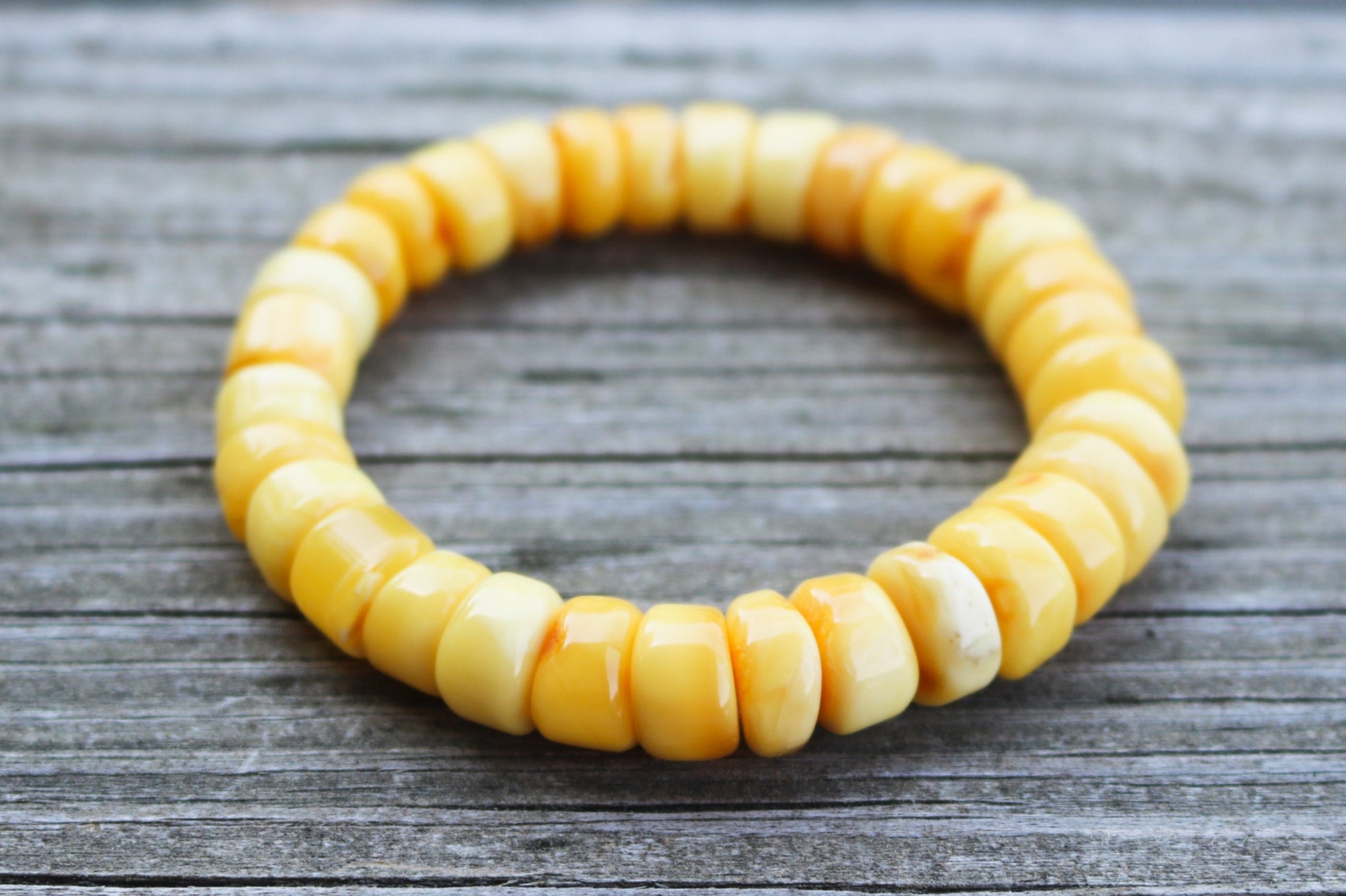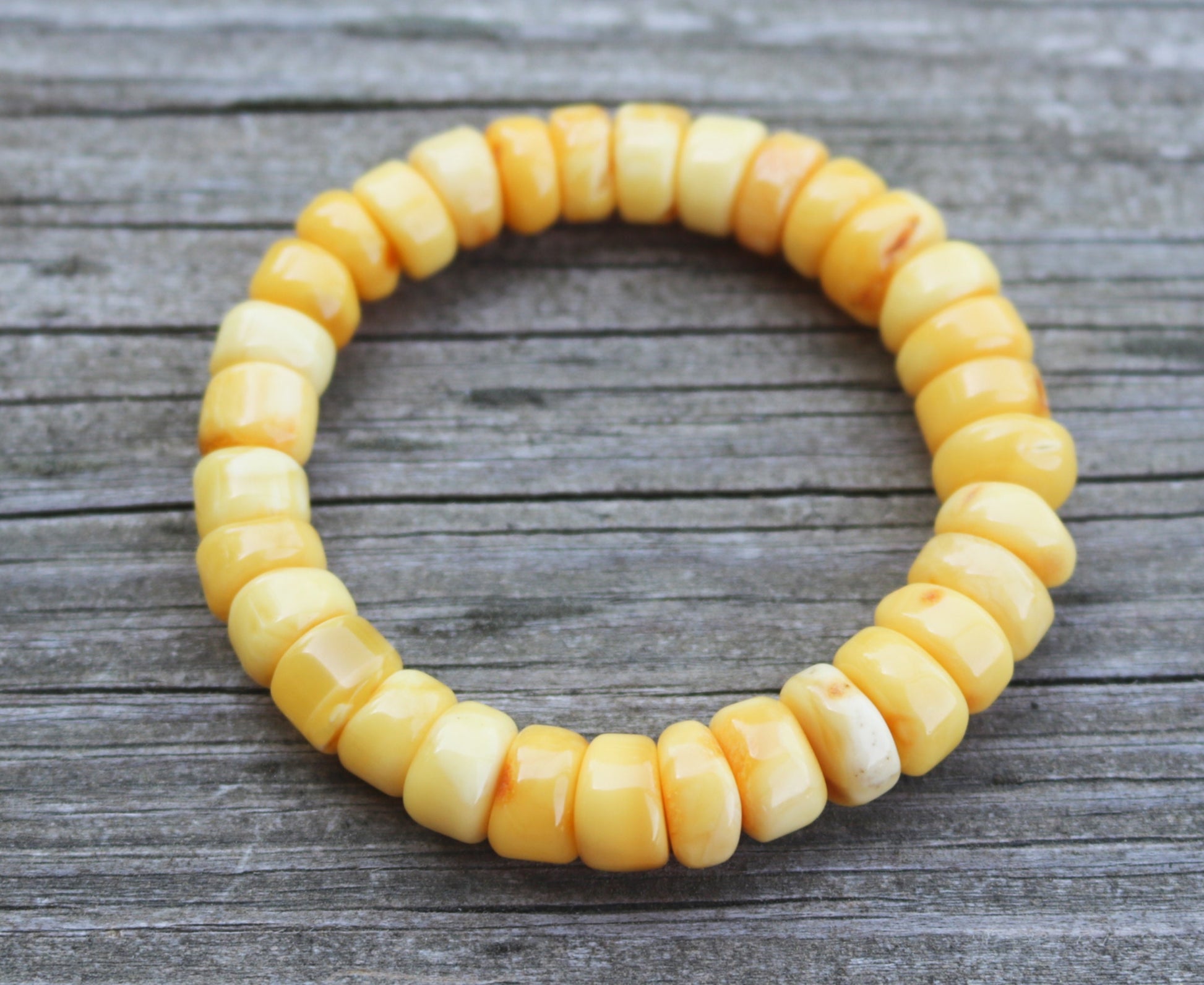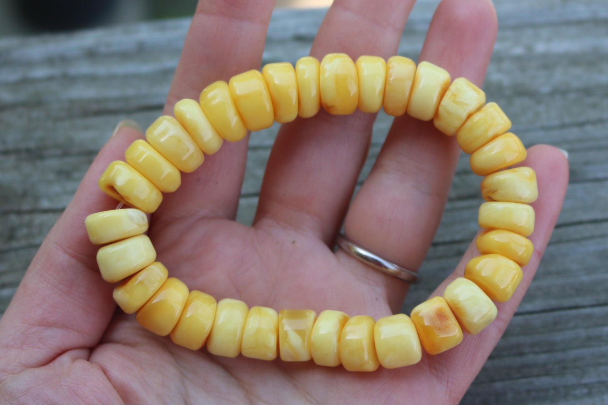 Baltic Amber Bracelet Butterscotch Disc Beads Milky Natural Untreated Unisex Jewelry 8" 21.6 gram