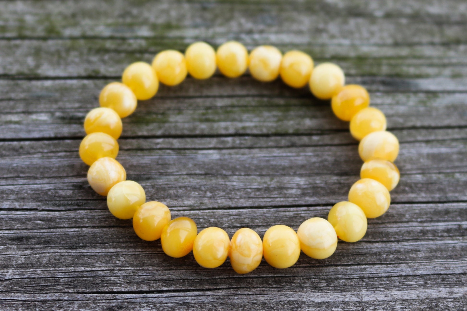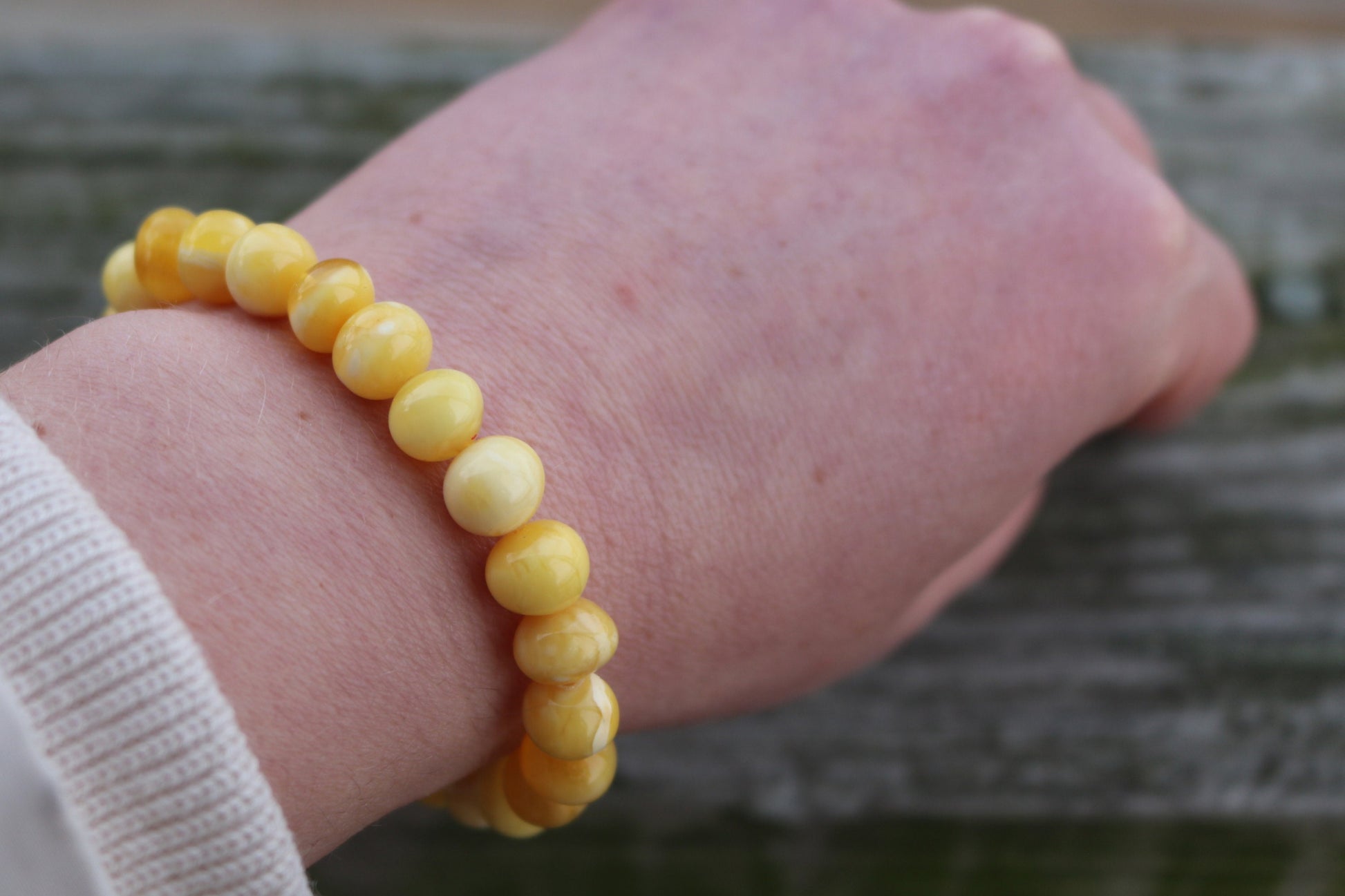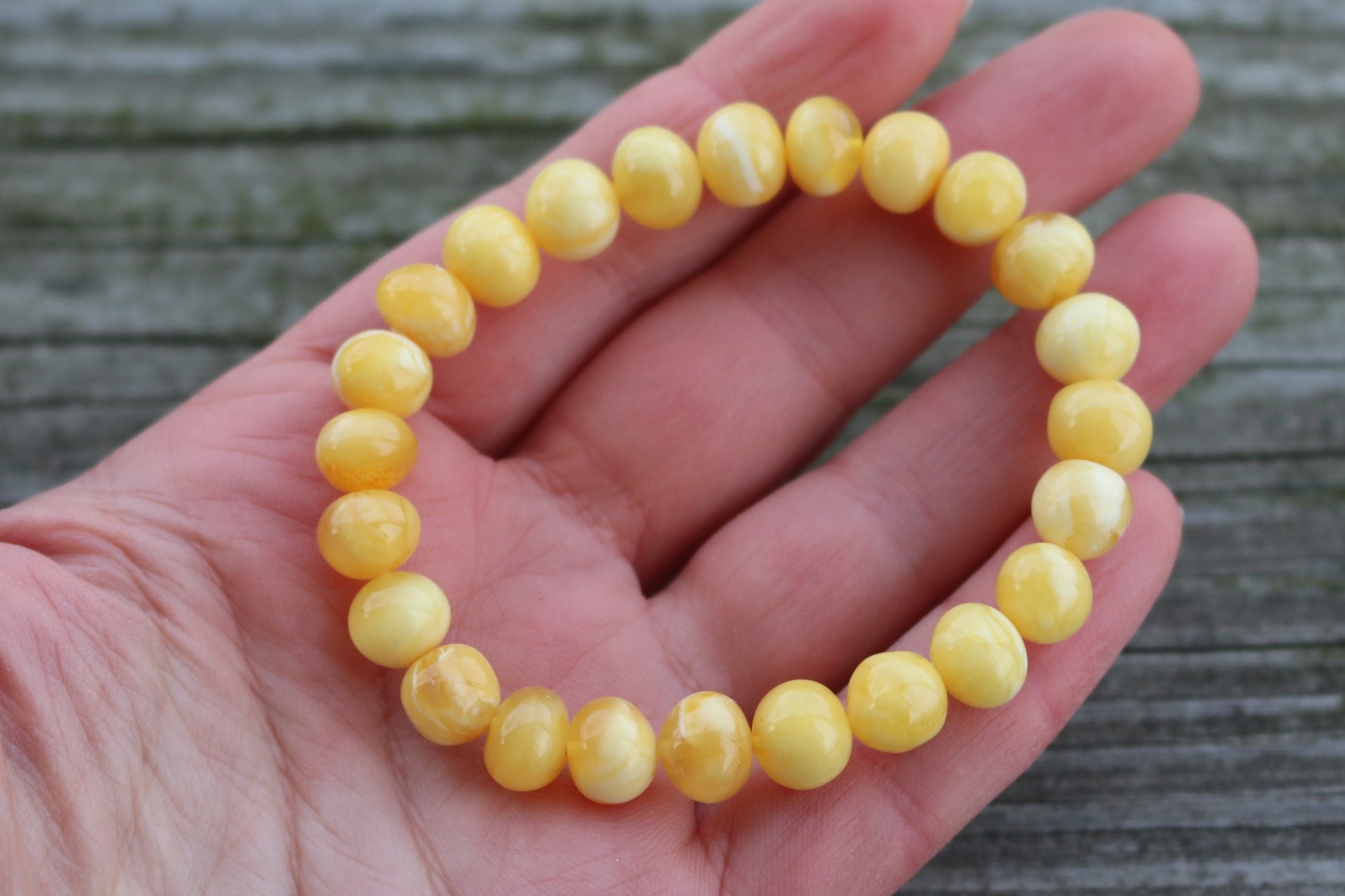 Baltic Amber Bracelet Butterscotch Milky Baroque Beads Natural Untreated 9 mm 8.4 gram