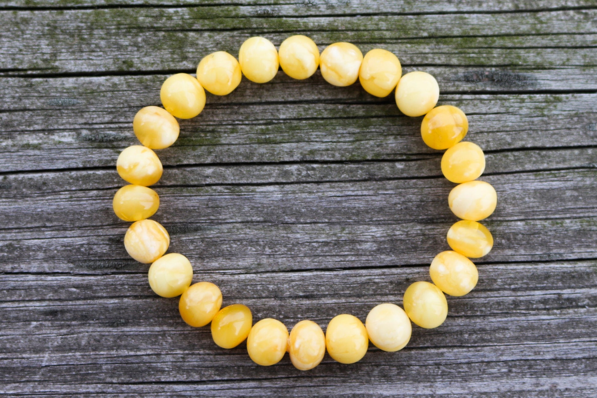 Baltic Amber bracelet made out of hand carved natural untreated milky butterscotch color. These amber stones were not treated in any way, only polished.