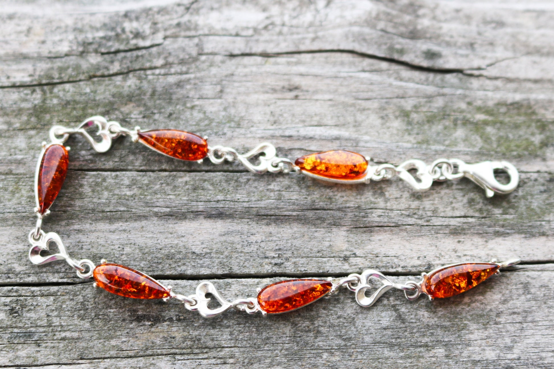Baltic Amber Bracelet Chain Cognac Delicate Jewelry 7.5" 925 Silver 6.7 gram