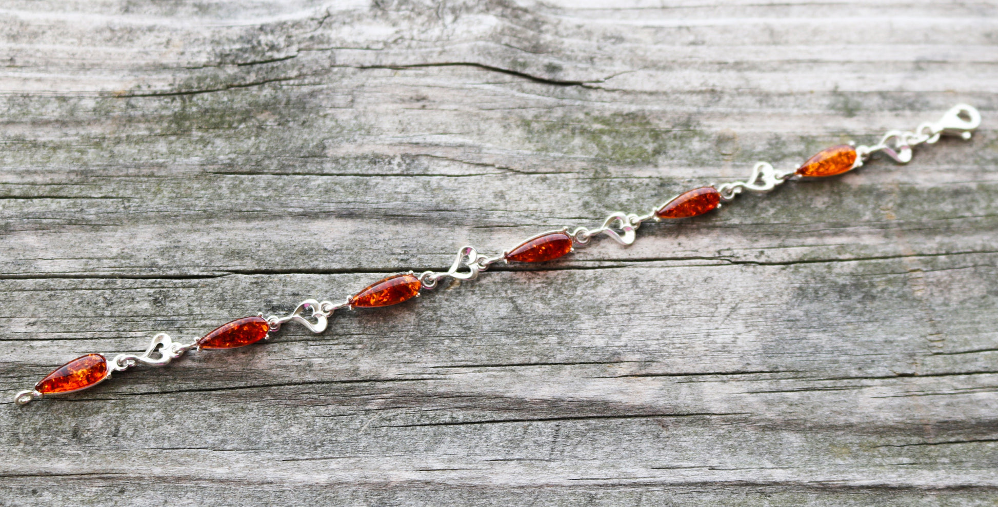 Baltic Amber bracelet made out of cognac color beads and set in 925 sterling silver.
