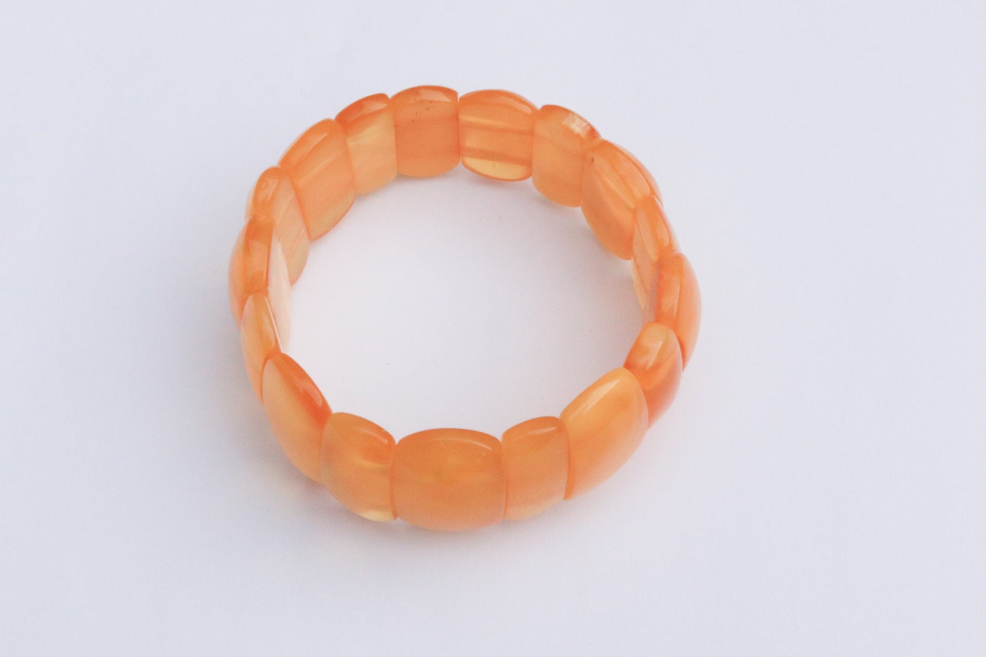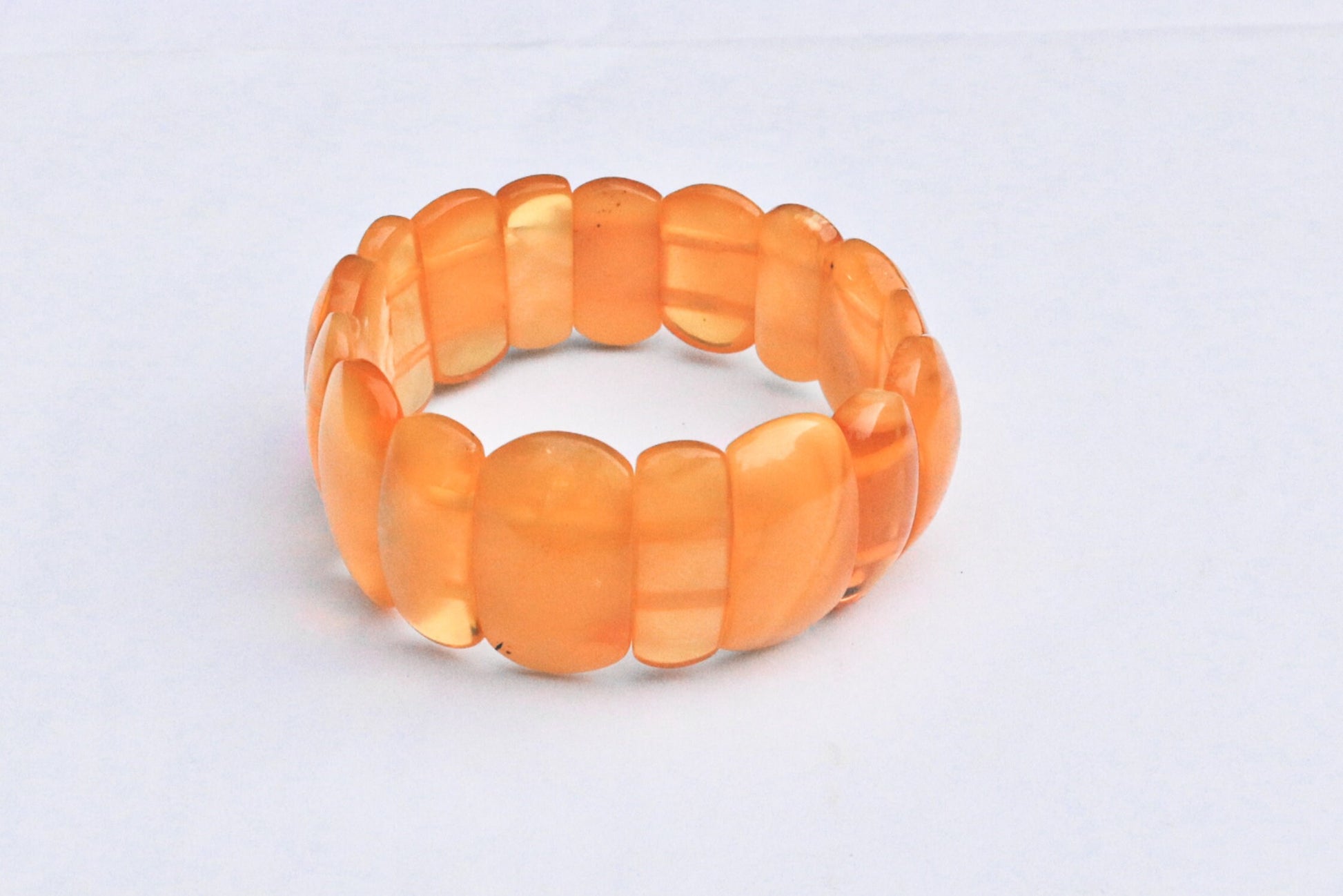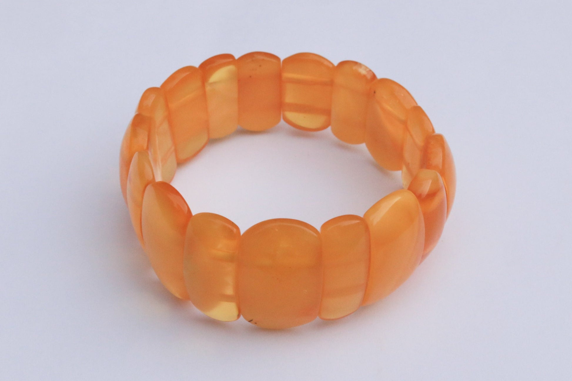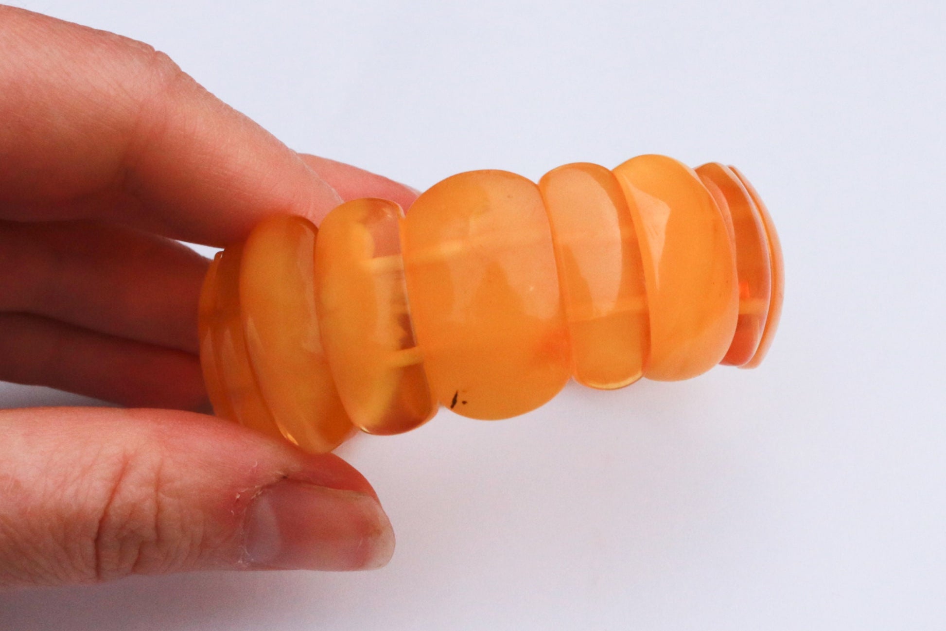 Baltic Amber bracelet made out of hand carved polished rectangular beads in cloudy butterscotch color. Each bead is hand carved out of one solid piece of natural untreated amber.