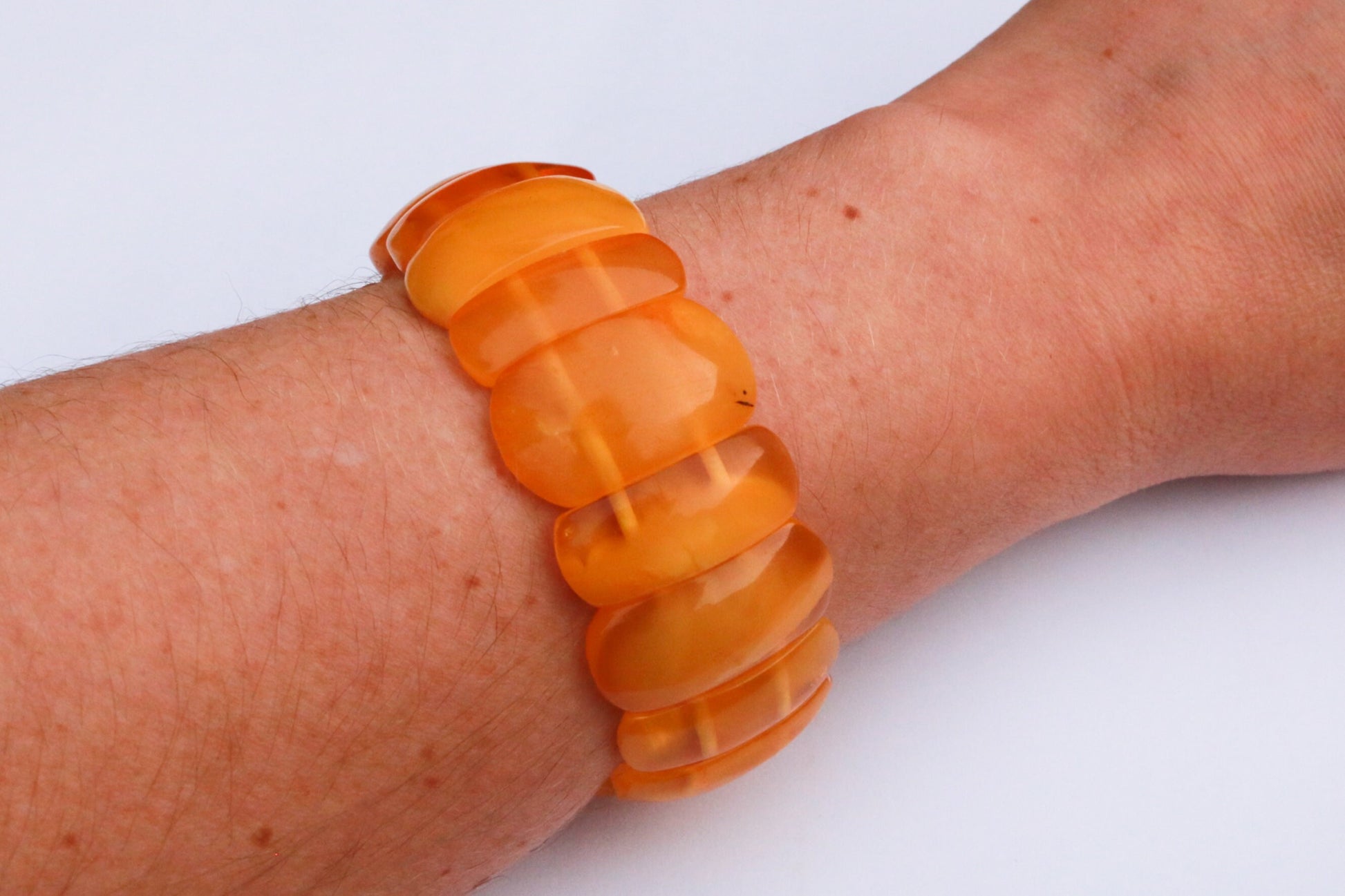 Baltic Amber Bracelet Cloudy Yellow Butterscotch Beaded Natural Untreated 8" 25.6 gram