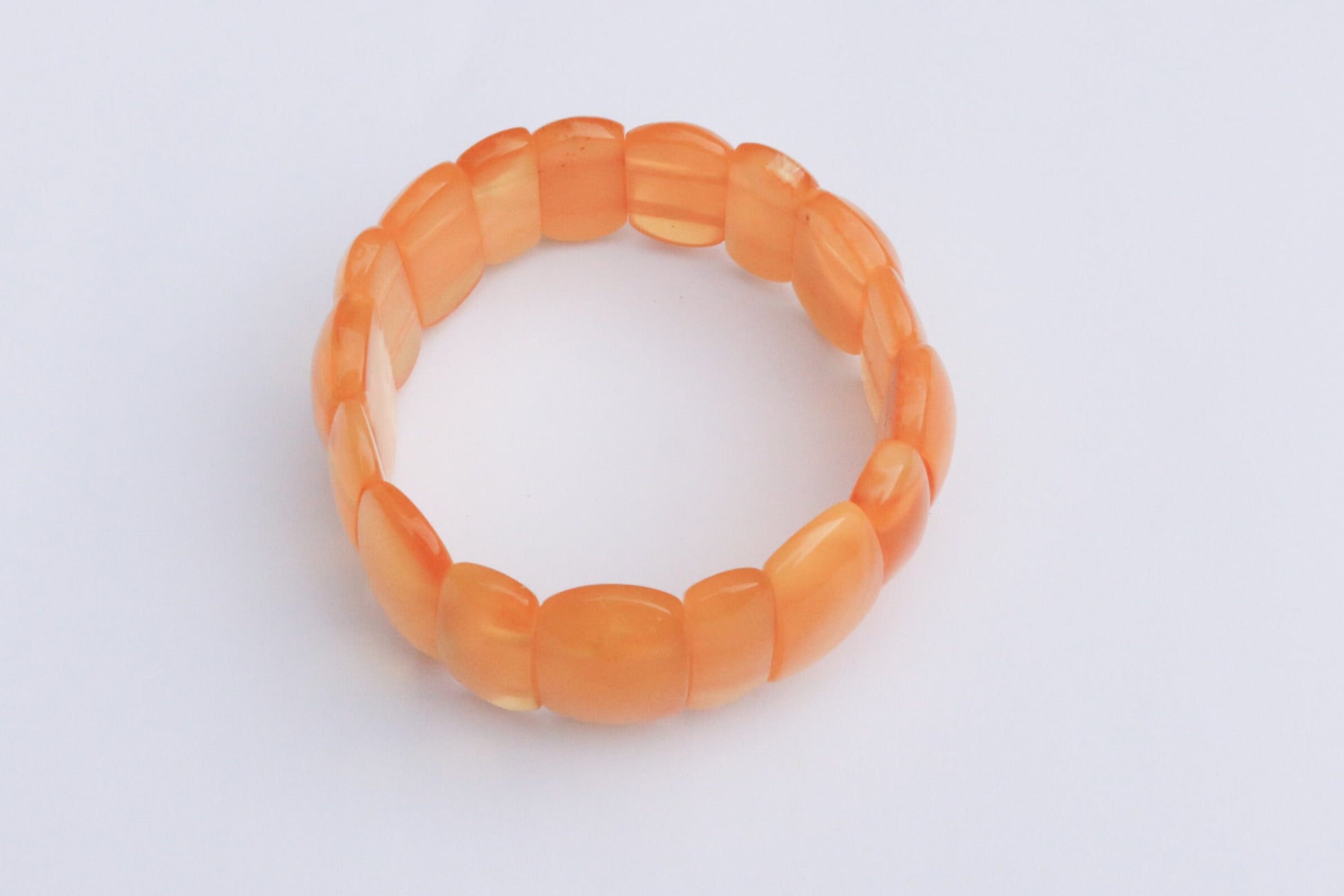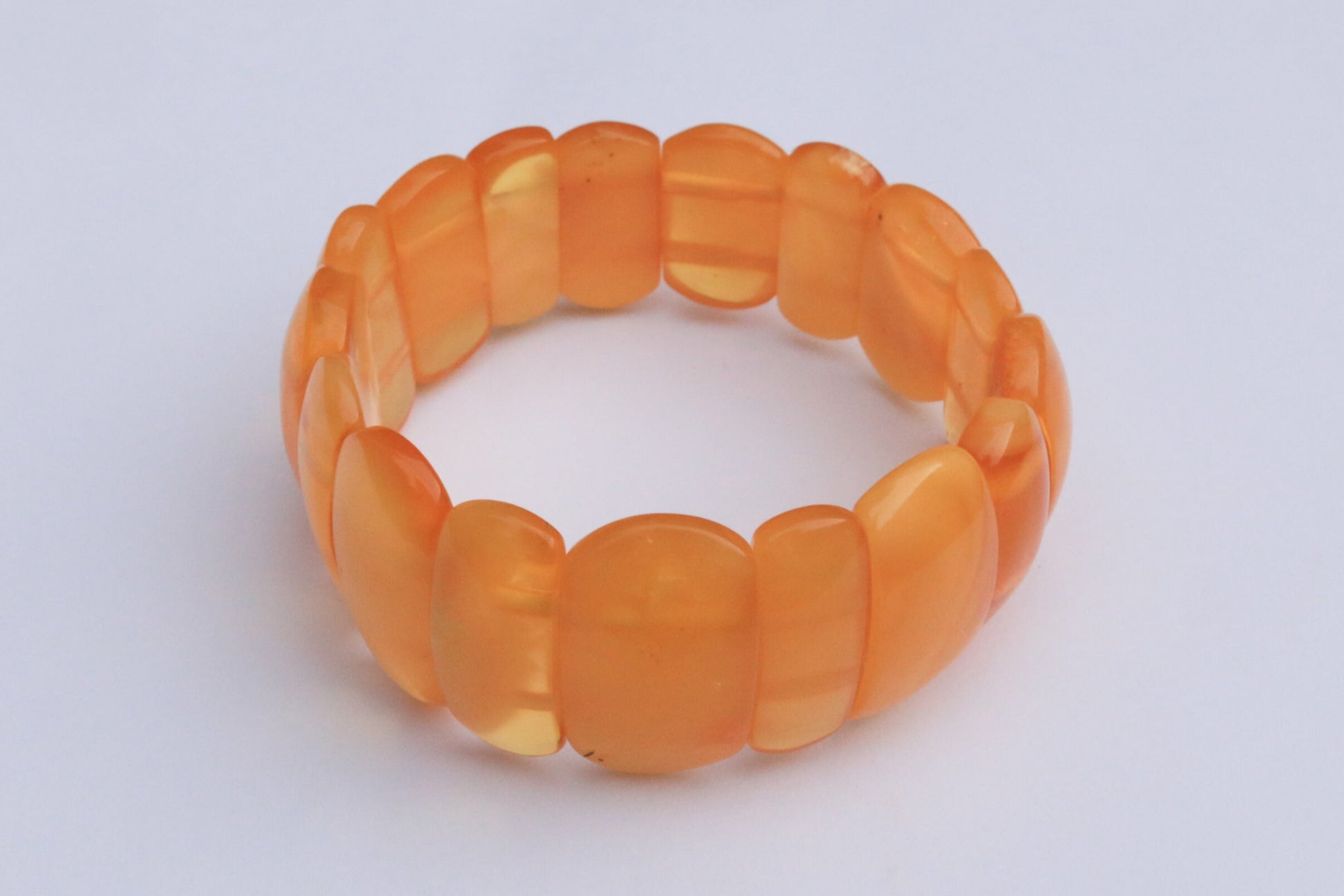 Baltic Amber bracelet made out of hand carved polished rectangular pieces in cloudy butterscotch color. Each piece is hand carved out of one solid piece of natural untreated amber.