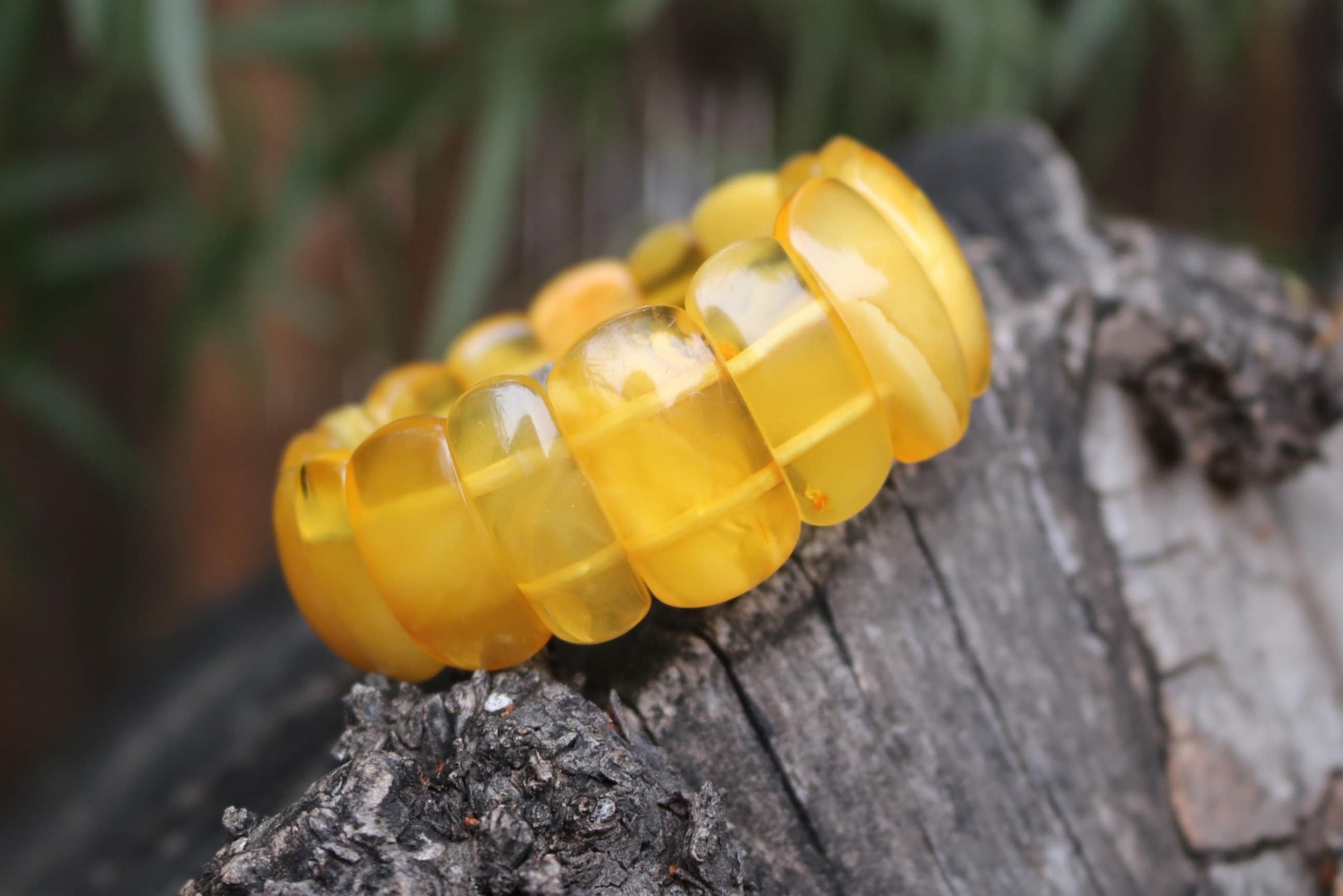 Baltic Amber Bracelet Cloudy Yellow Butterscotch Natural Untreated 8" 25.6 gram
