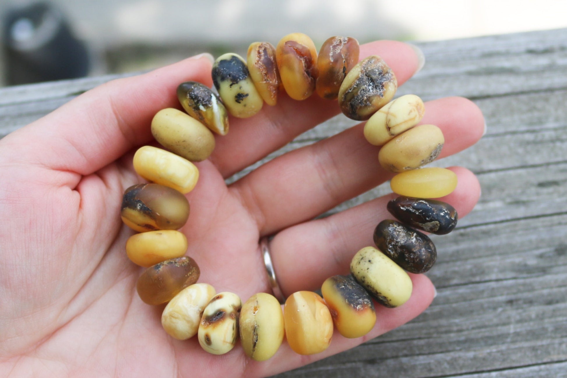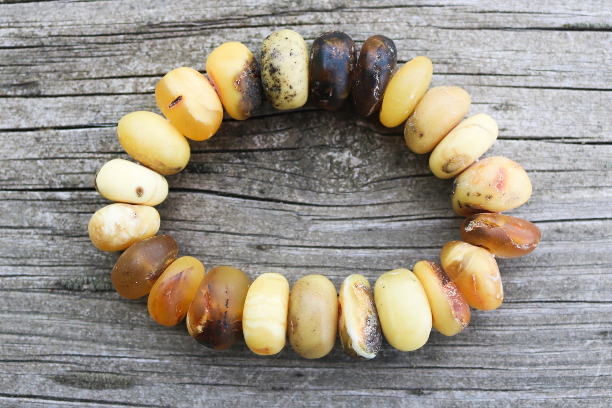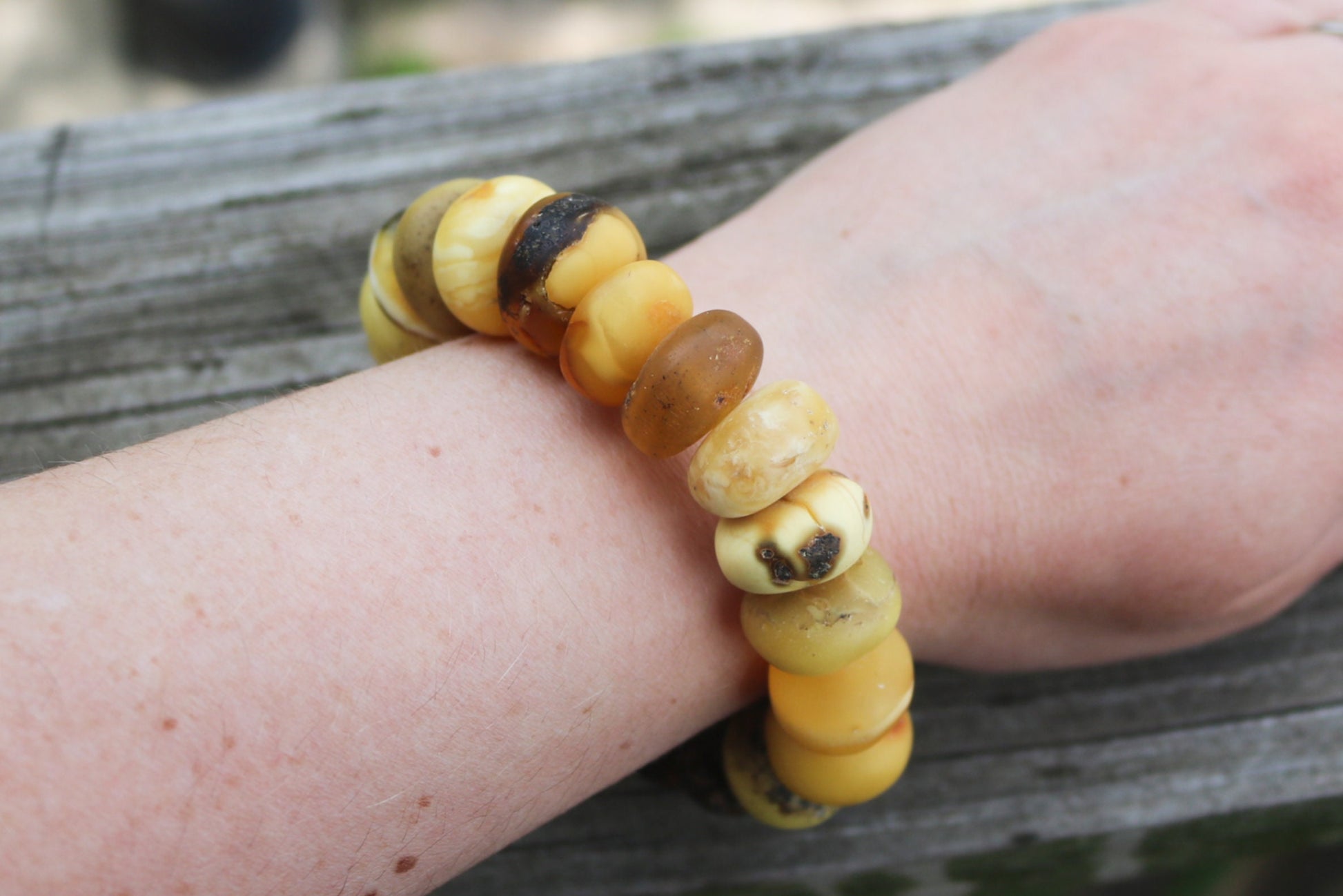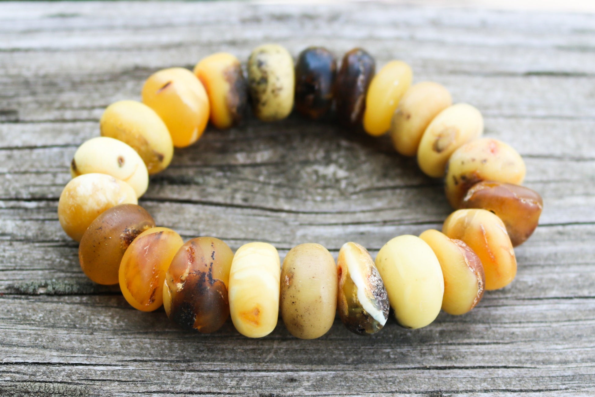 Baltic Amber Bracelet Raw Butterscotch Gray Rondelle Unpolished Beads Natural Untreated Unisex 45 gram