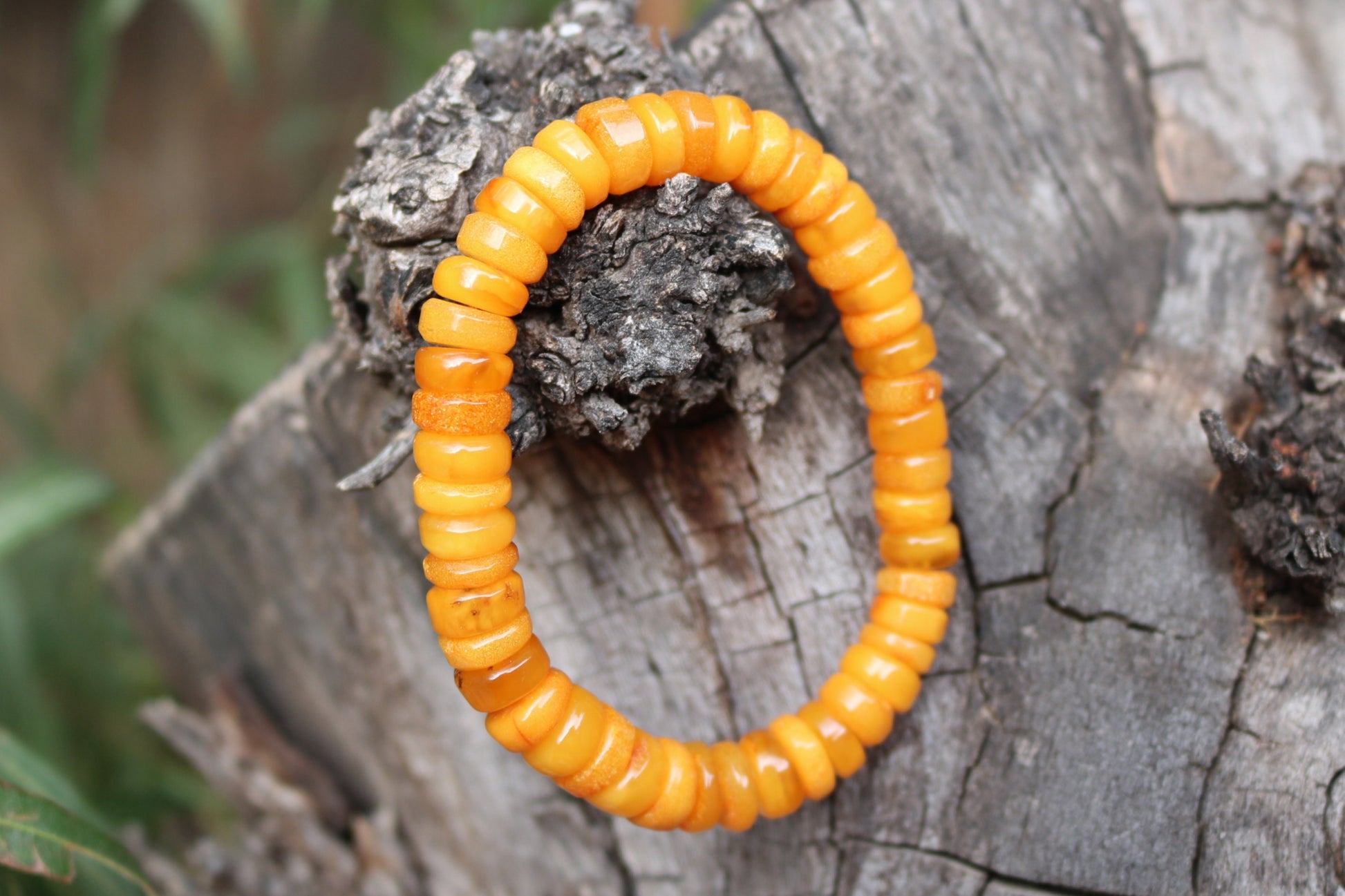 Baltic Amber Bracelet Yolk Butterscotch Antique Disc Beads Natural Unisex Jewelry 7.5" 12.7 gram