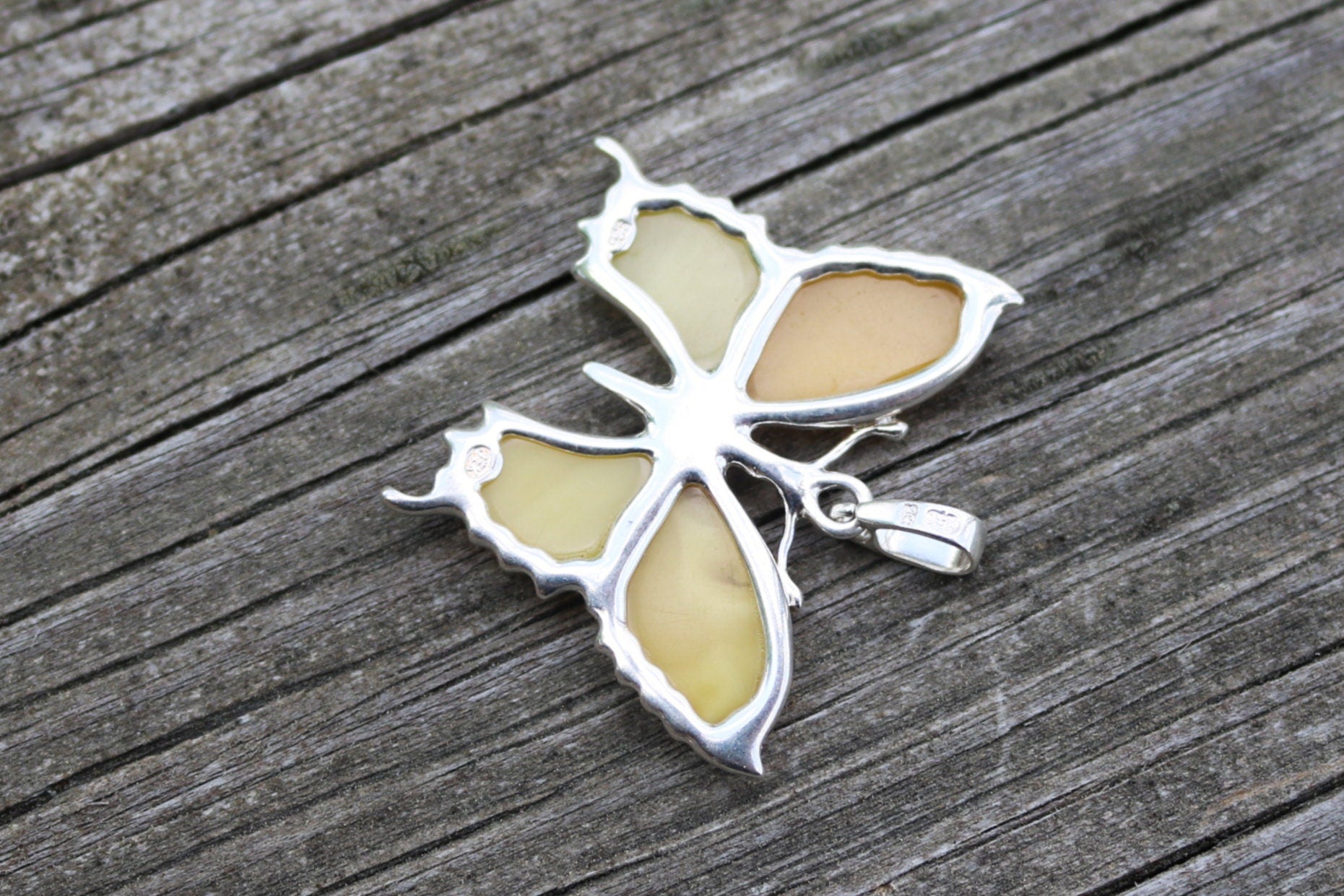 Baltic Amber Butterfly Butterscotch Pendant Natural Jewelry 925 silver