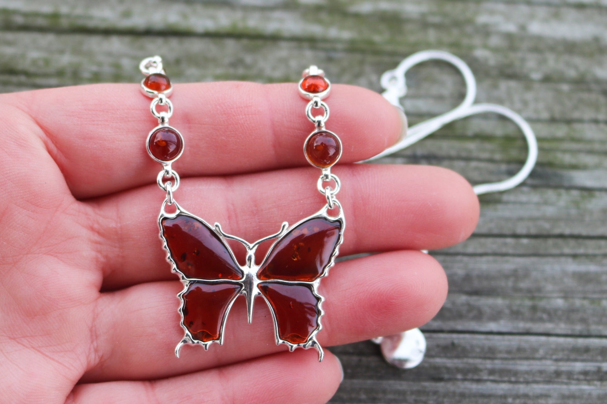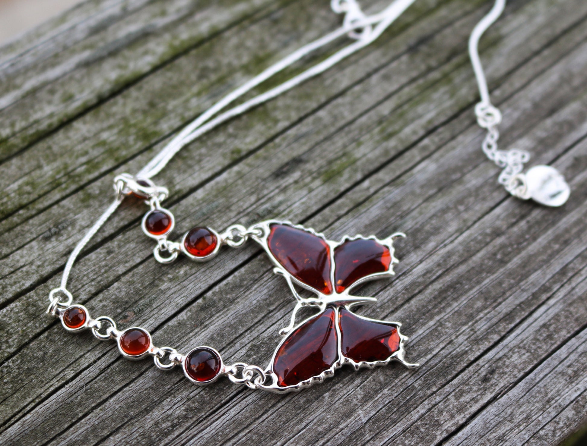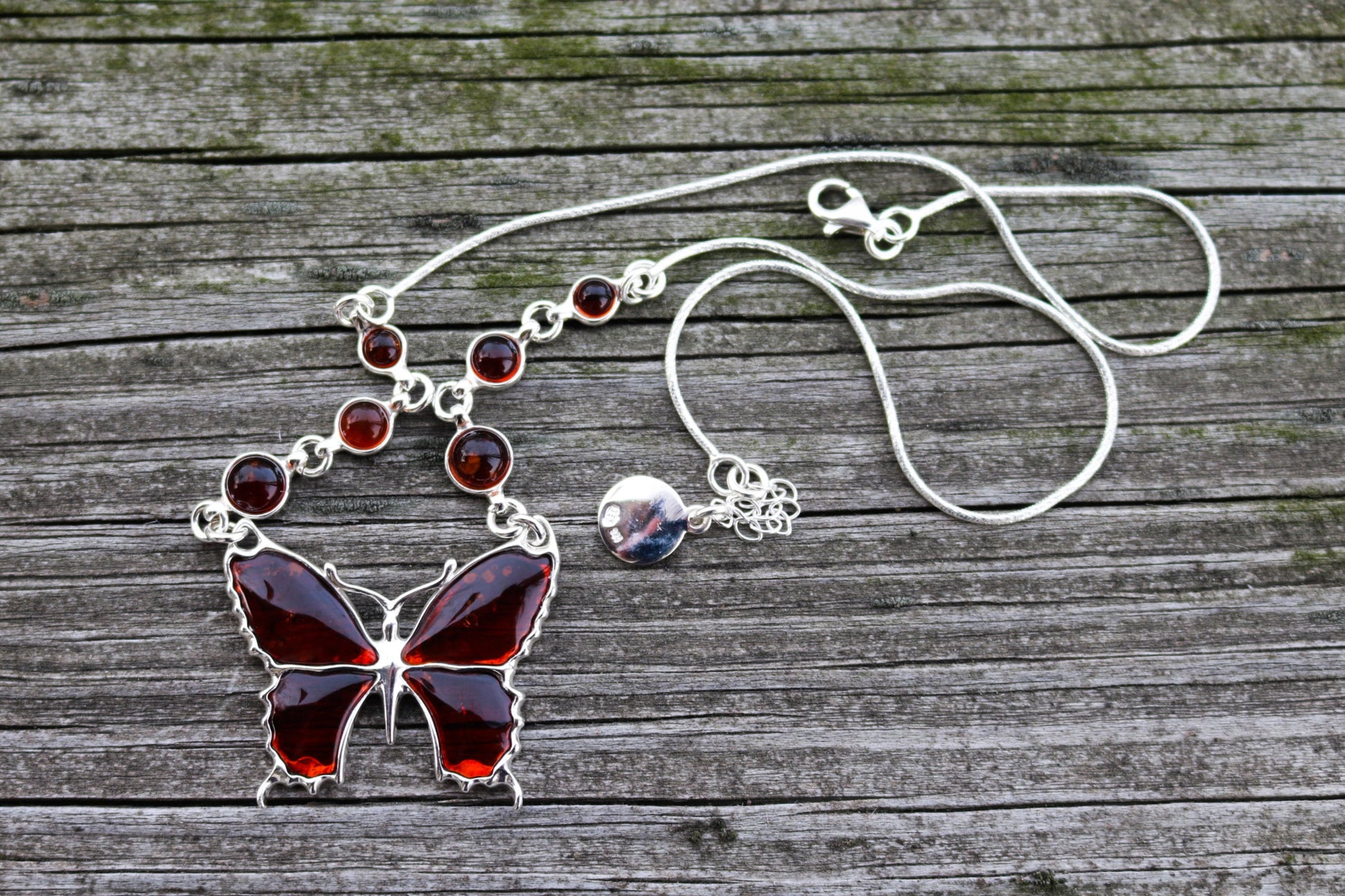 Baltic Amber Butterfly Necklace Chain Cherry Adjustable Natural Jewelry 16.5 - 18" 925 Silver