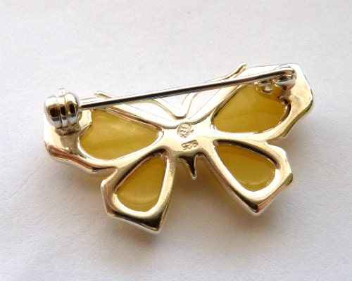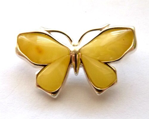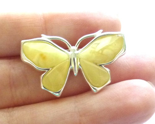 Baltic Amber Butterfly Pin Brooch Butterscotch 925 Silver