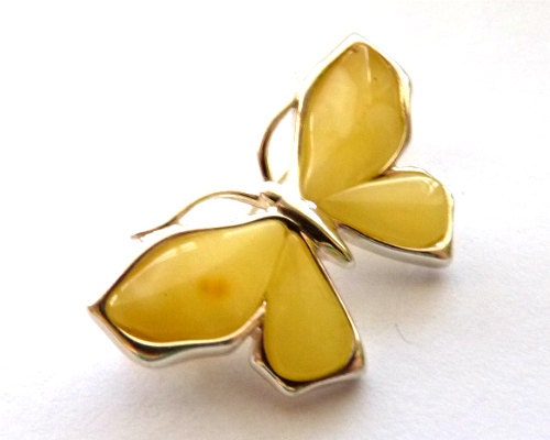 Baltic Amber butterscotch butterfly pin/brooch in 925 sterling silver.