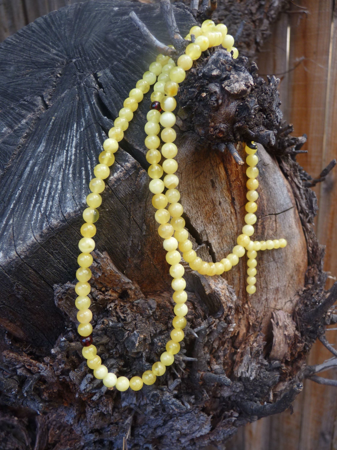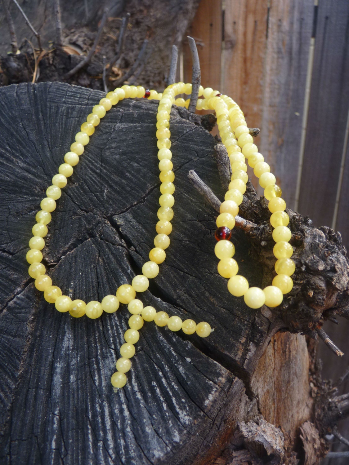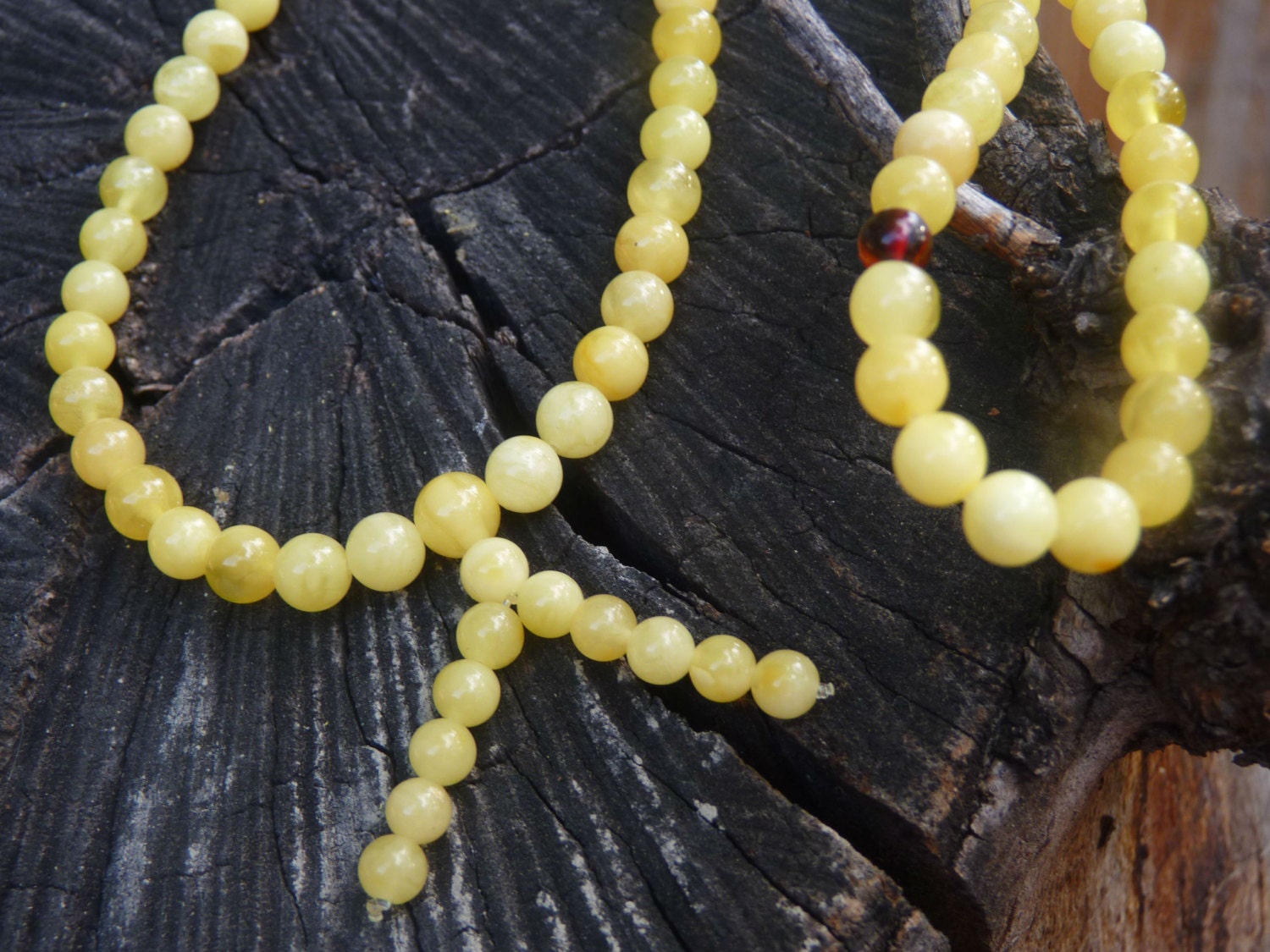 This is 100% genuine amber, not reconstructed or pressed. Each bead is carved out of one solid chunk of amber.