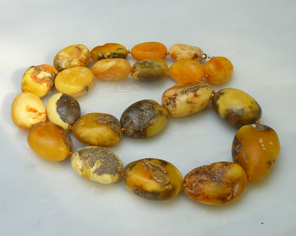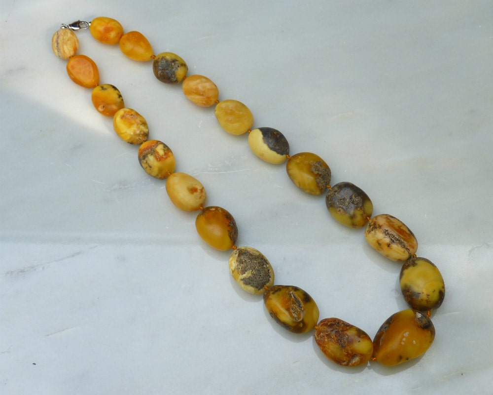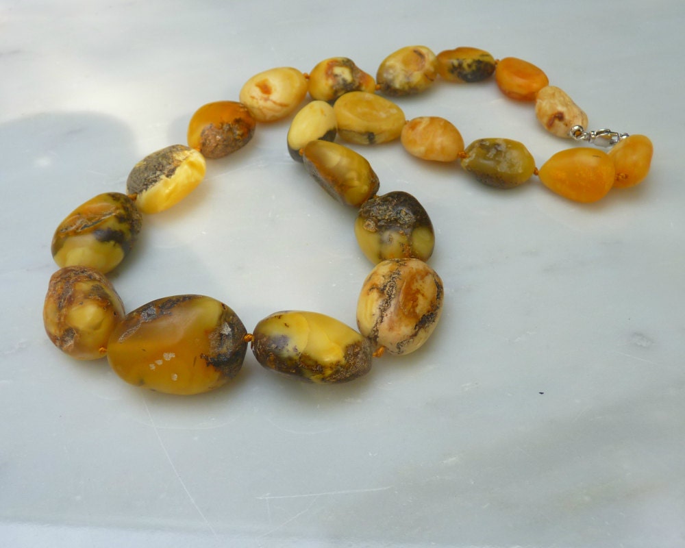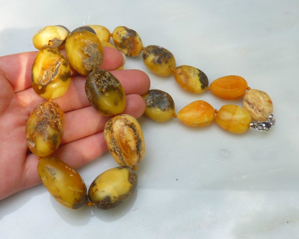 Baltic Amber Butterscotch Necklace Raw Olive Beads Untreated Jewelry 22.5" 74.3 gram