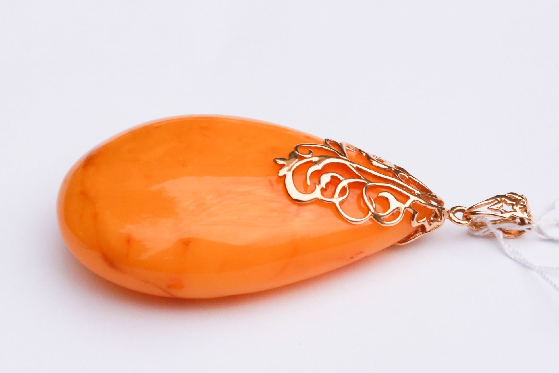 Baltic Amber Butterscotch Pendant Antique Egg Yolk Natural Jewelry Unisex 14K Gold 2.64″ 16.3 gram