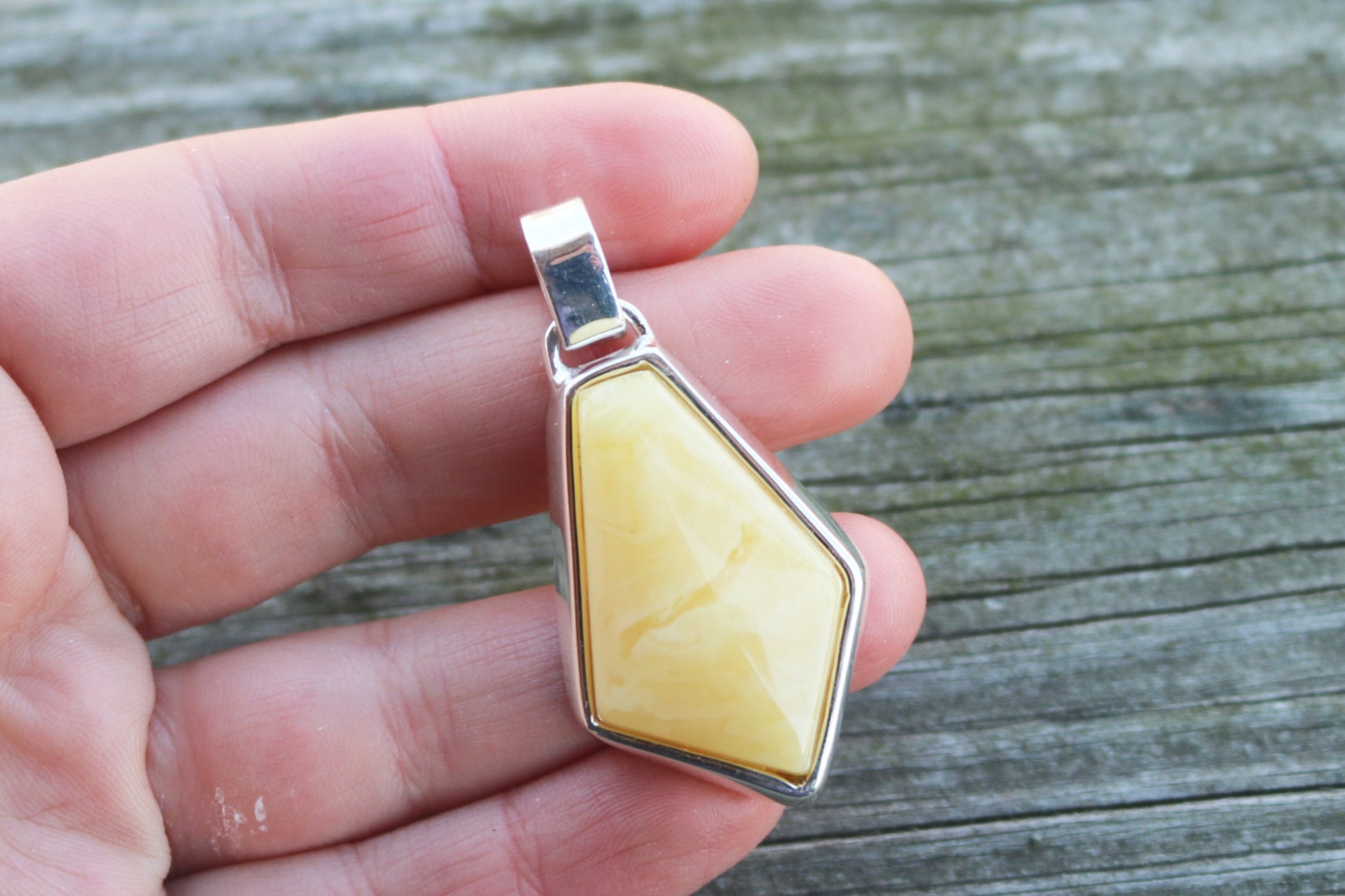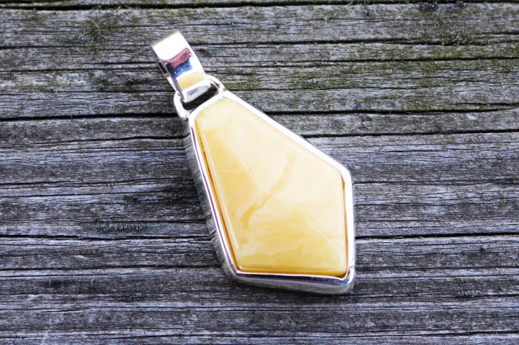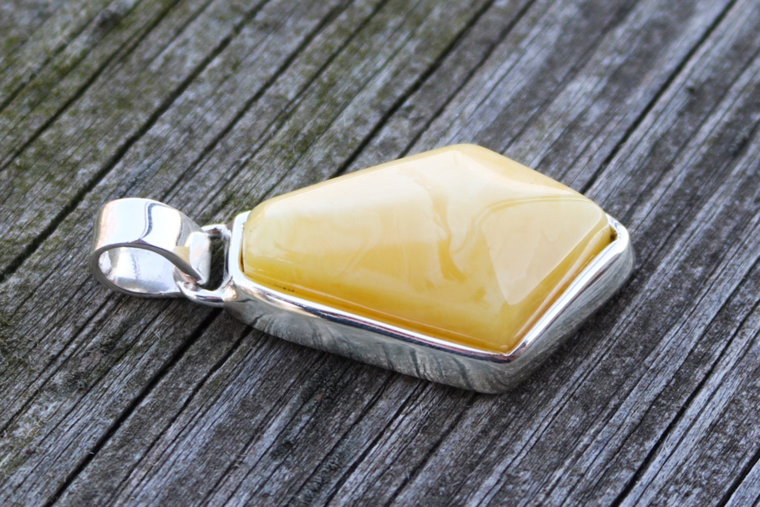 Baltic amber pendant in swirly butterscotch color. Hand carved and set in 925 sterling silver. Natural untreated stone.