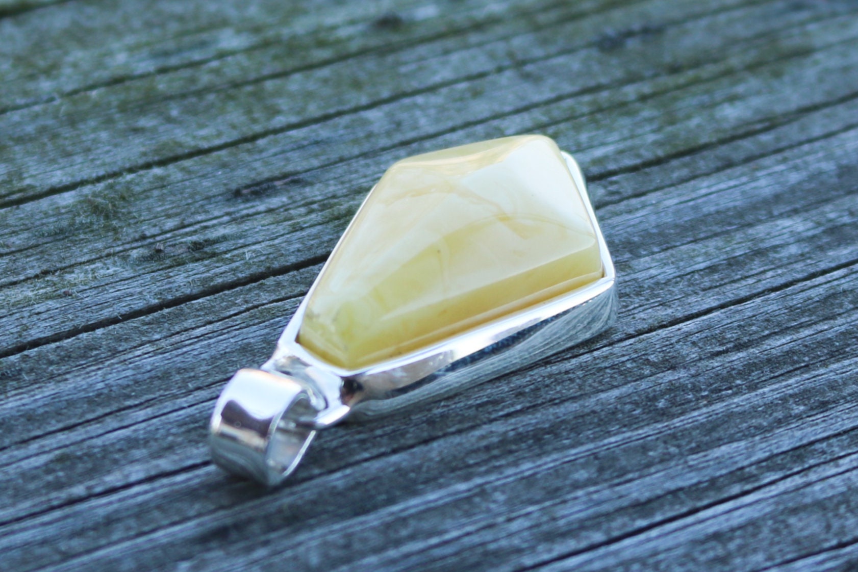 Baltic Amber Butterscotch Pendant Briolette Natural Untreated Unisex 2″ 13.7 gram 925 Silver