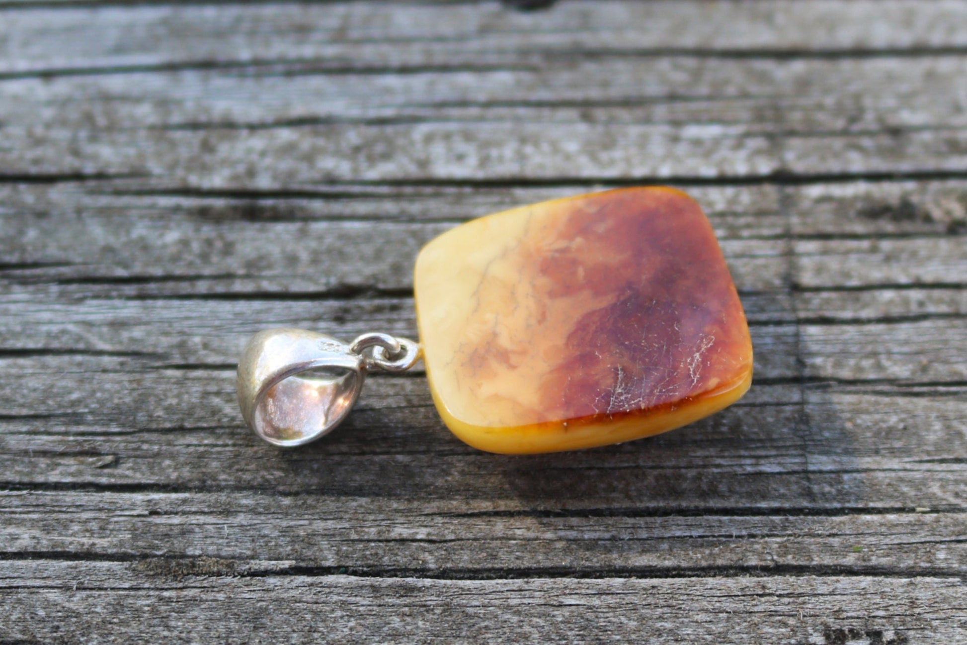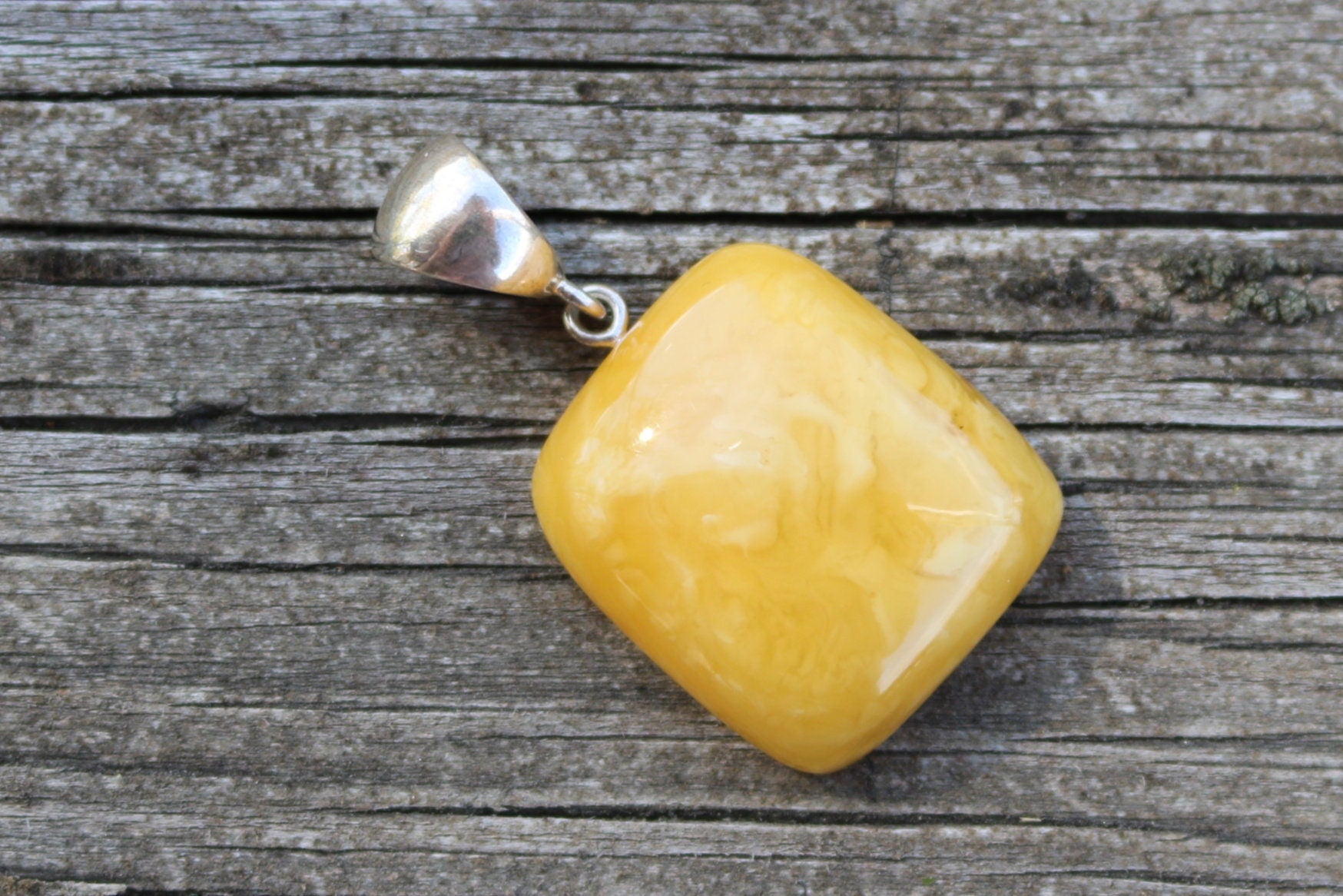 Baltic Amber Butterscotch Pendant Cushion Natural Untreated Unisex Jewelry 1.6" 5.3 gram 925 Silver