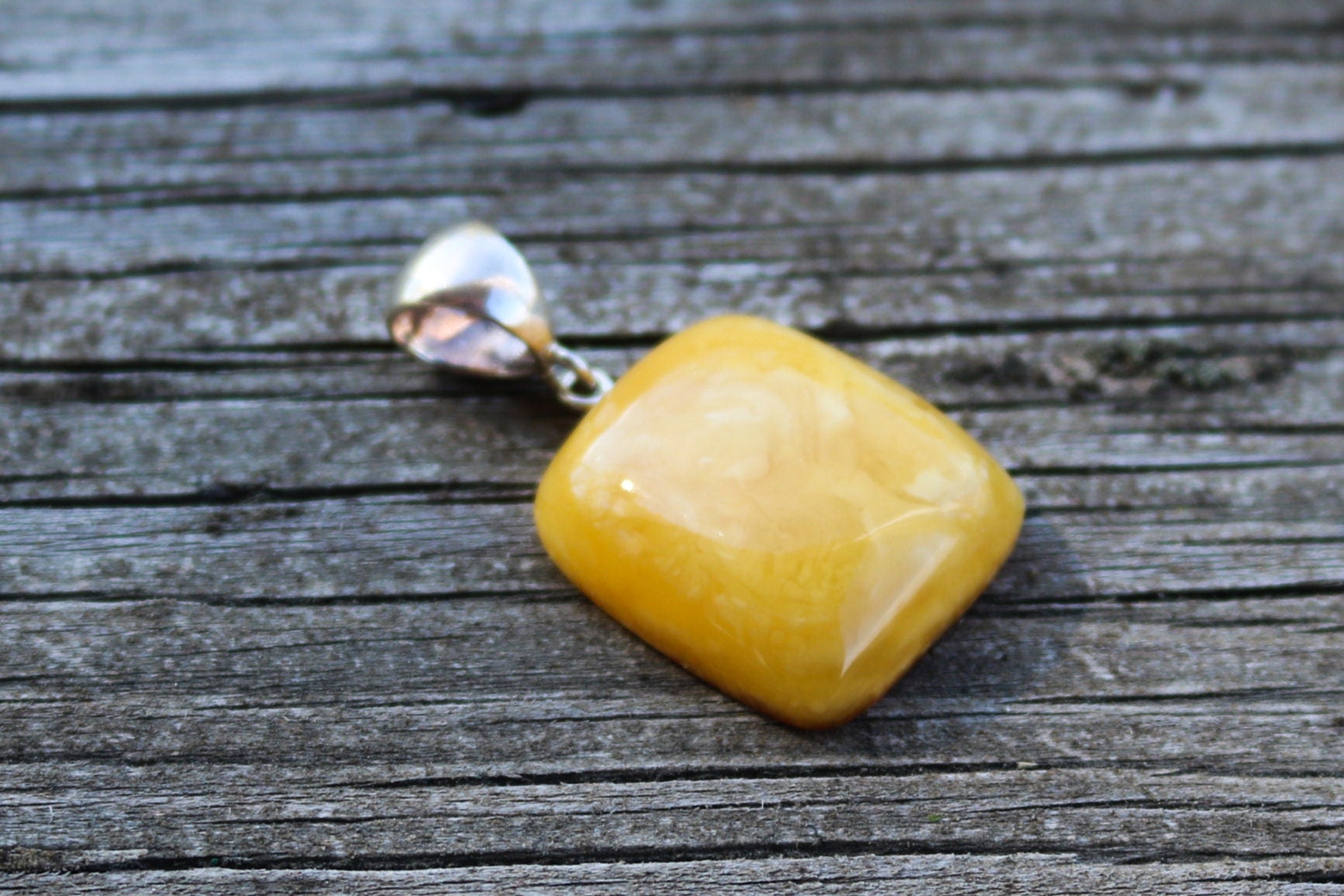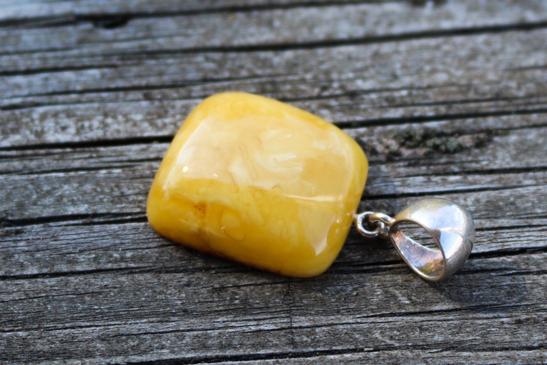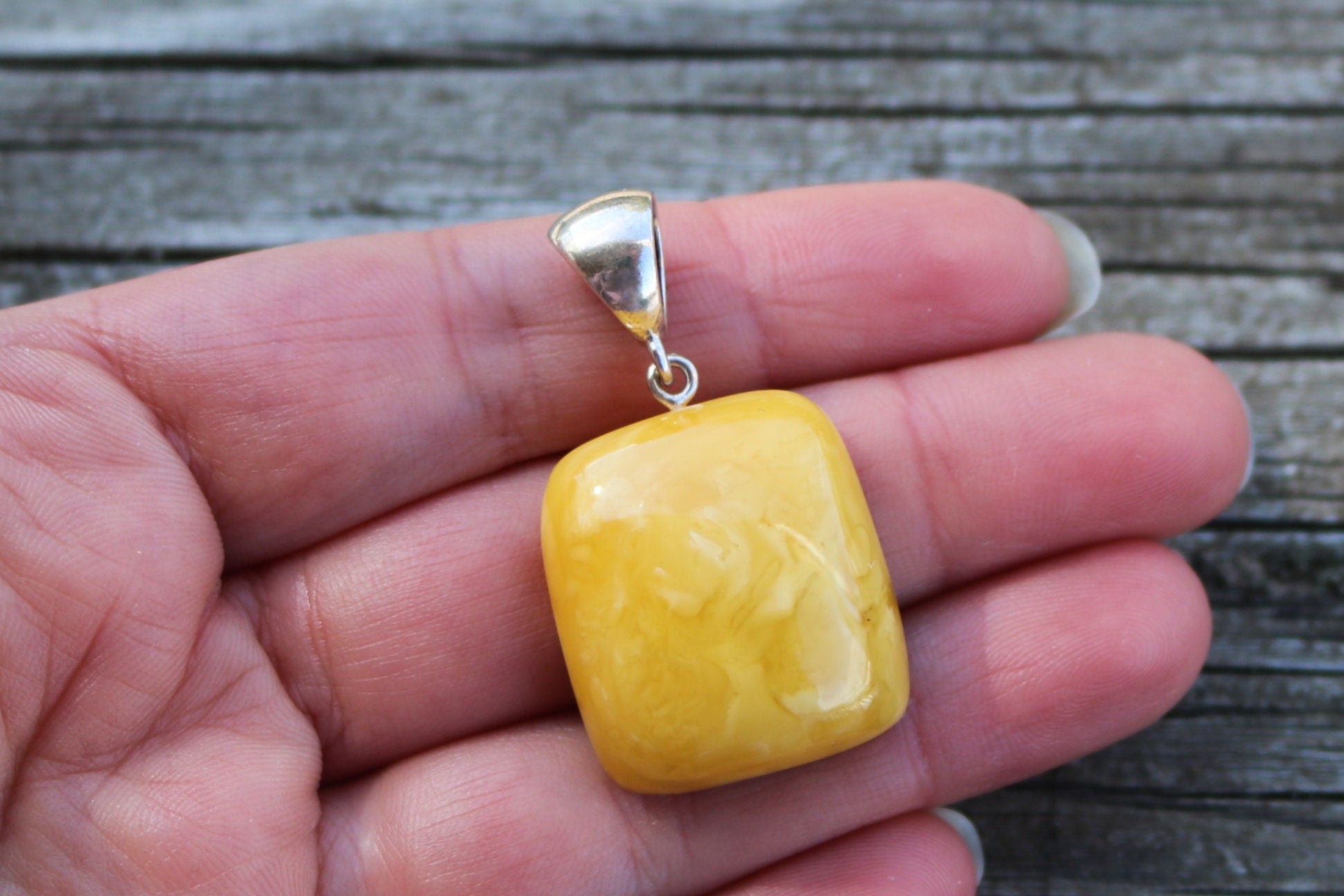 Baltic Amber hand carved cushion shapes pendant in natural untreated butterscotch color with swirls. The pendant is very bright, polished, without any imperfections.