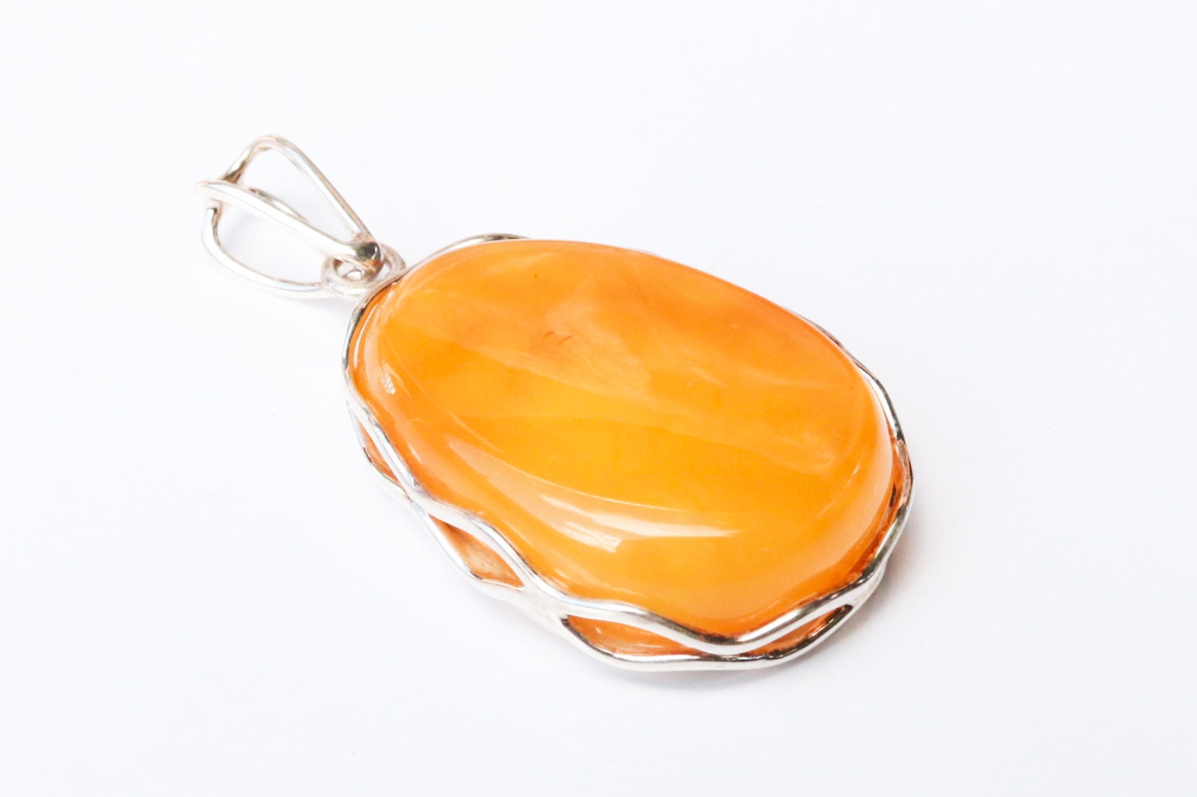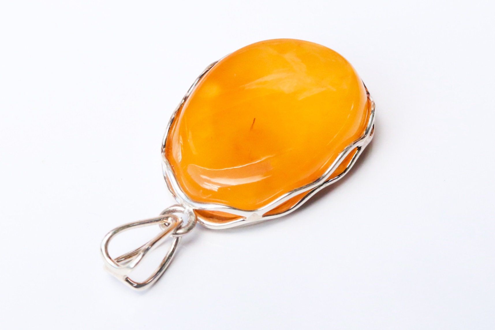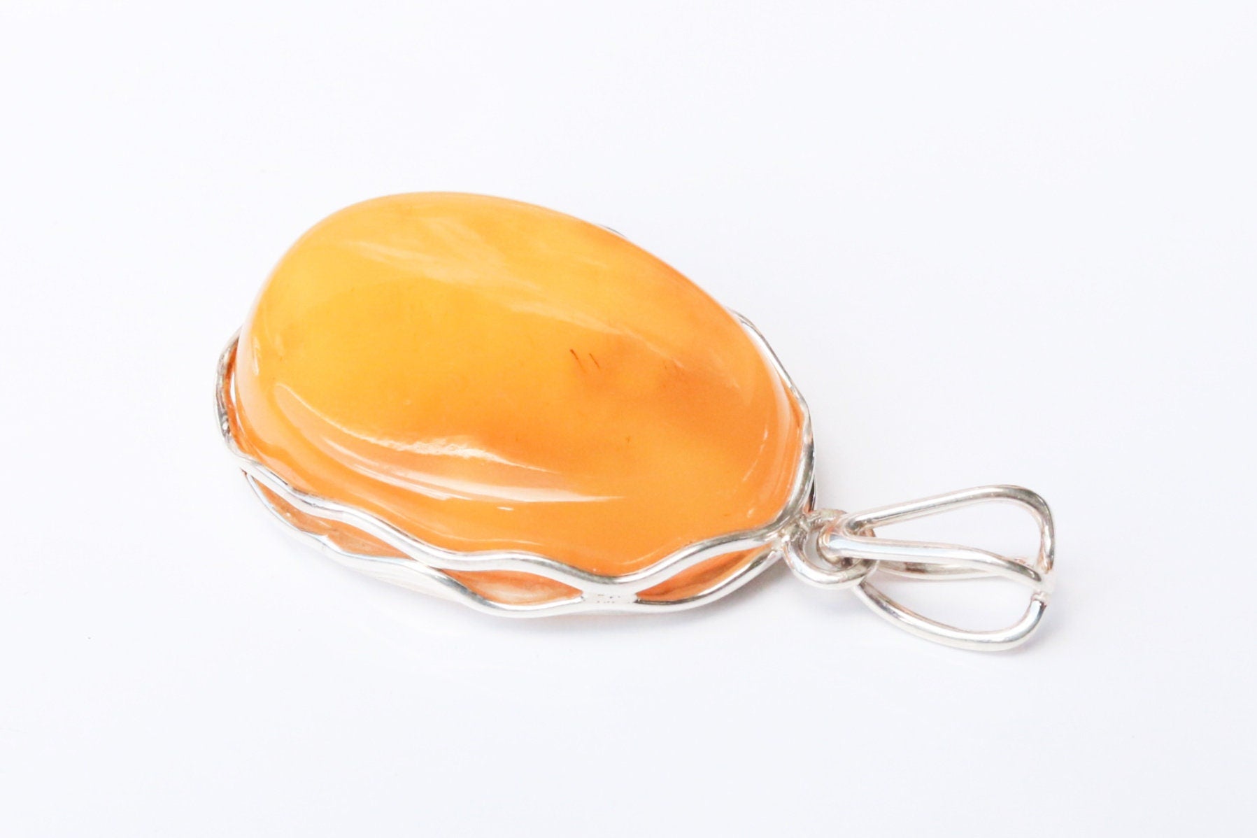 Baltic Amber pendant in semi-cloudy butterscotch color. Natural untreated stone, polished.