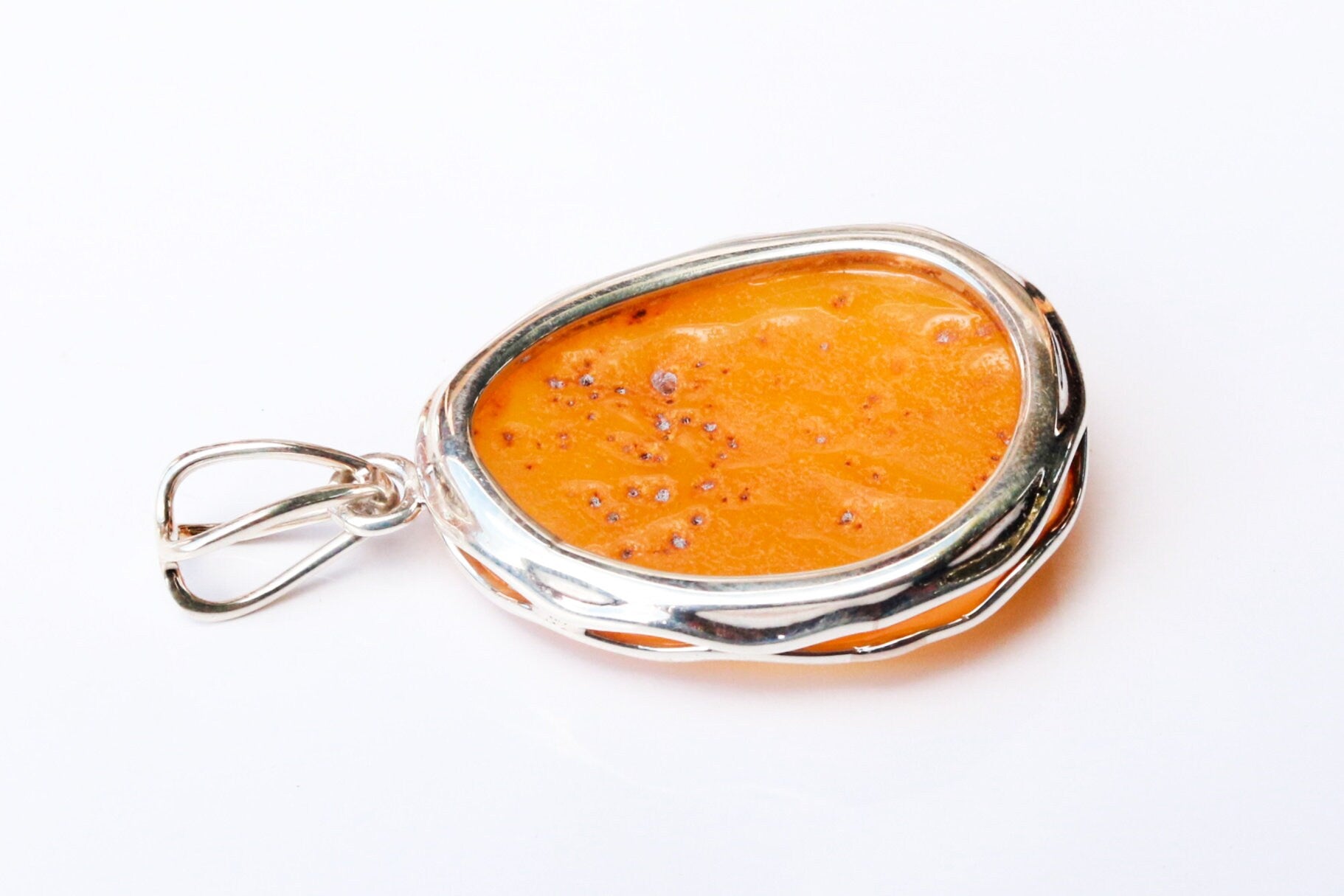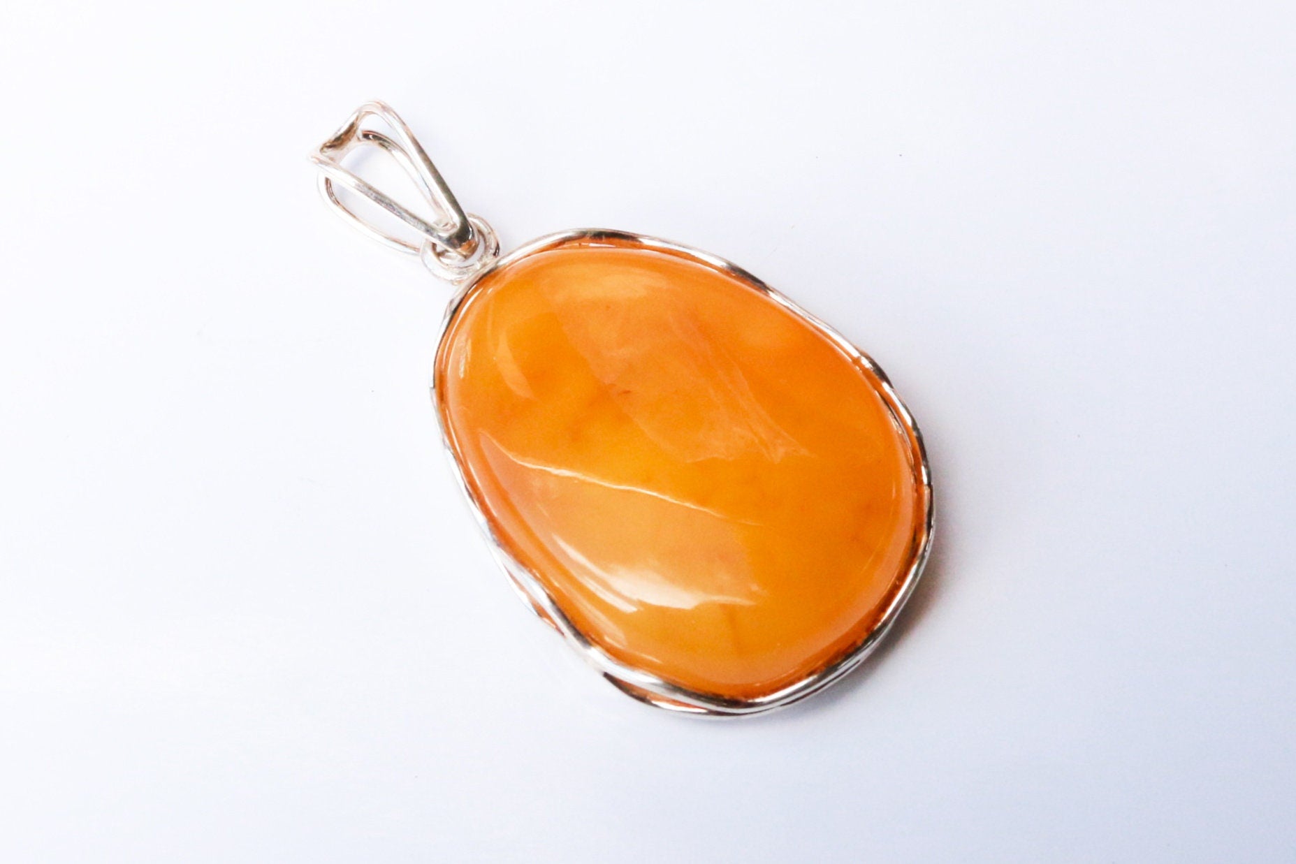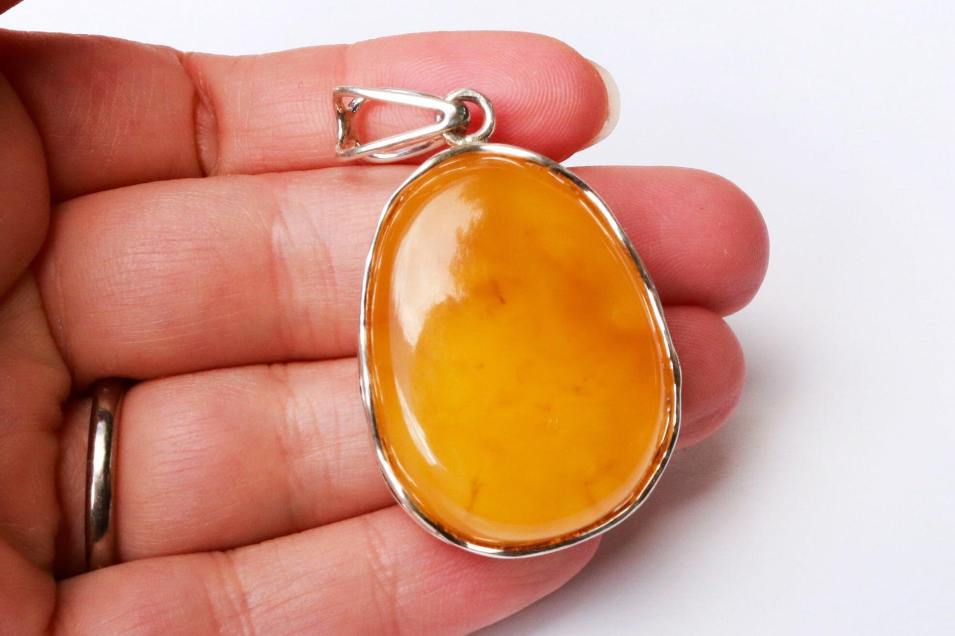Baltic Amber pendant in semi-cloudy butterscotch color. Natural untreated stone, polished.