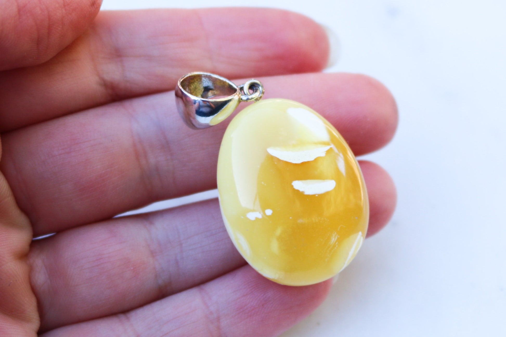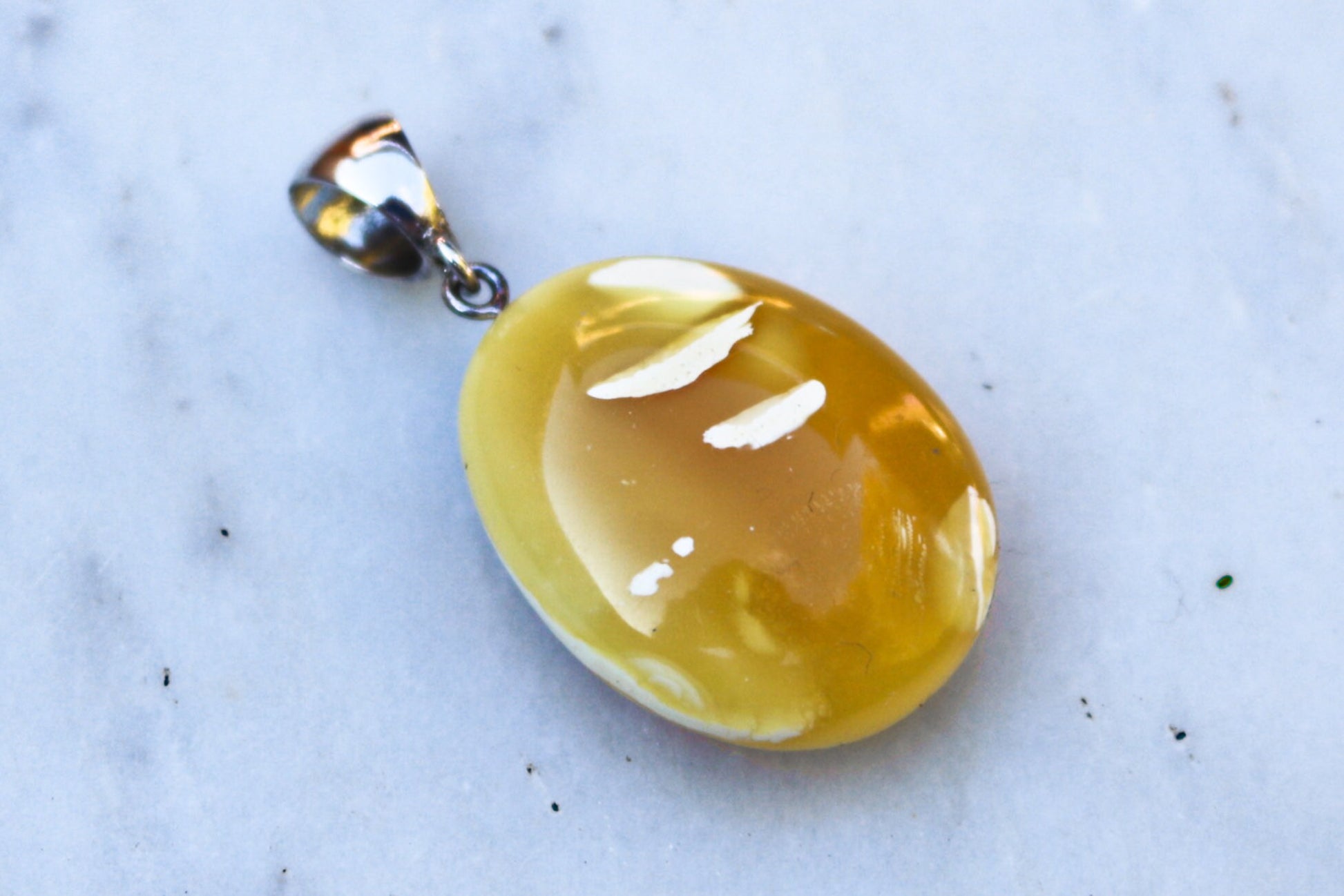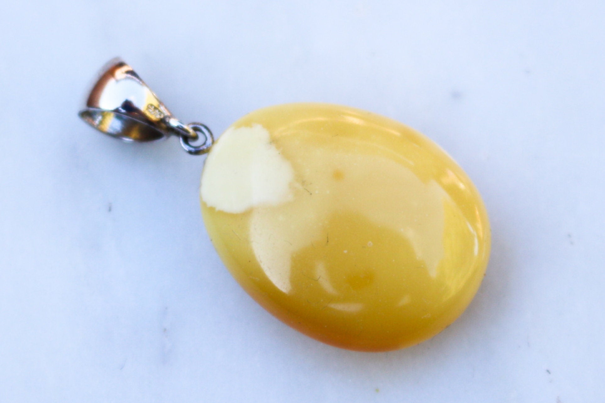 Baltic Amber pendant in natural untreated butterscotch color with milky inclusions.