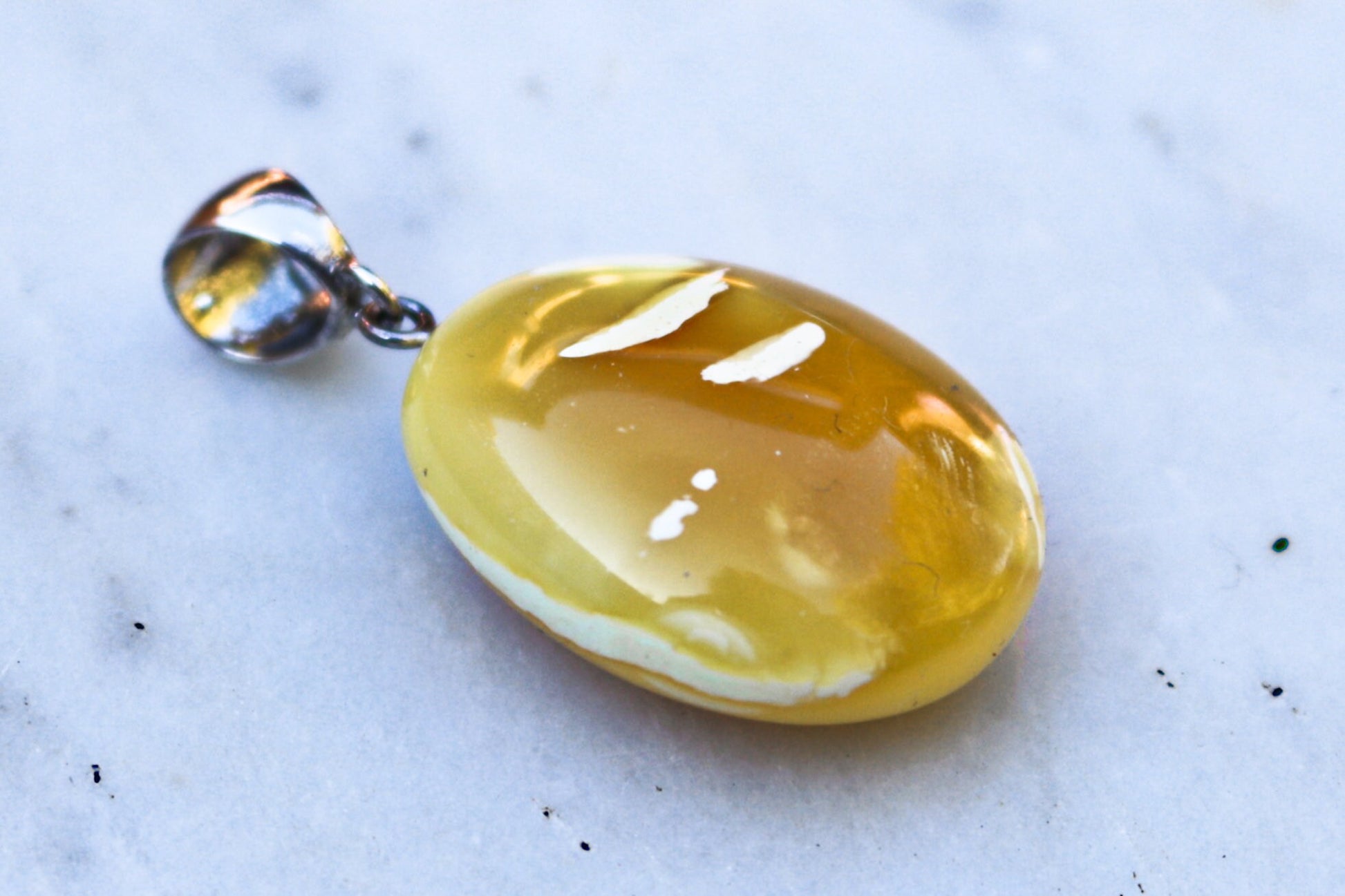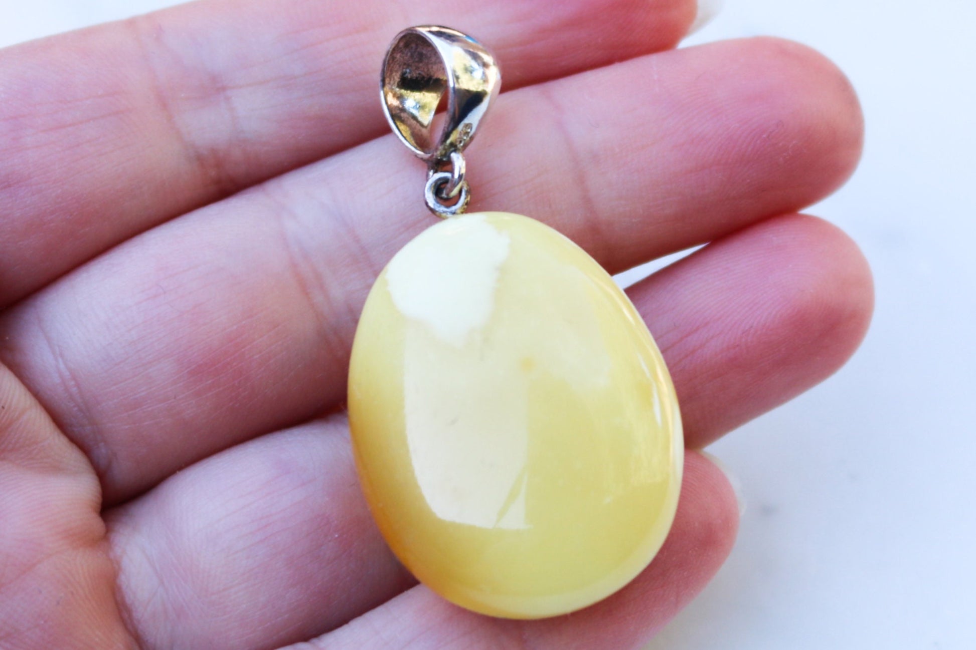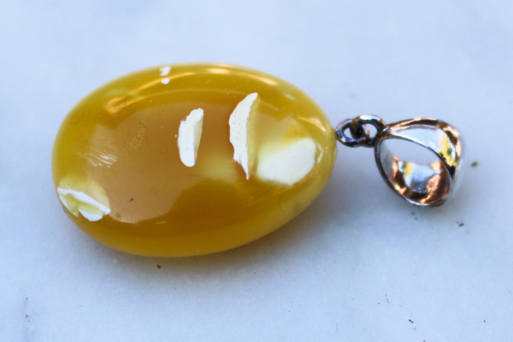 Baltic Amber pendant in natural untreated butterscotch color with milky inclusions.