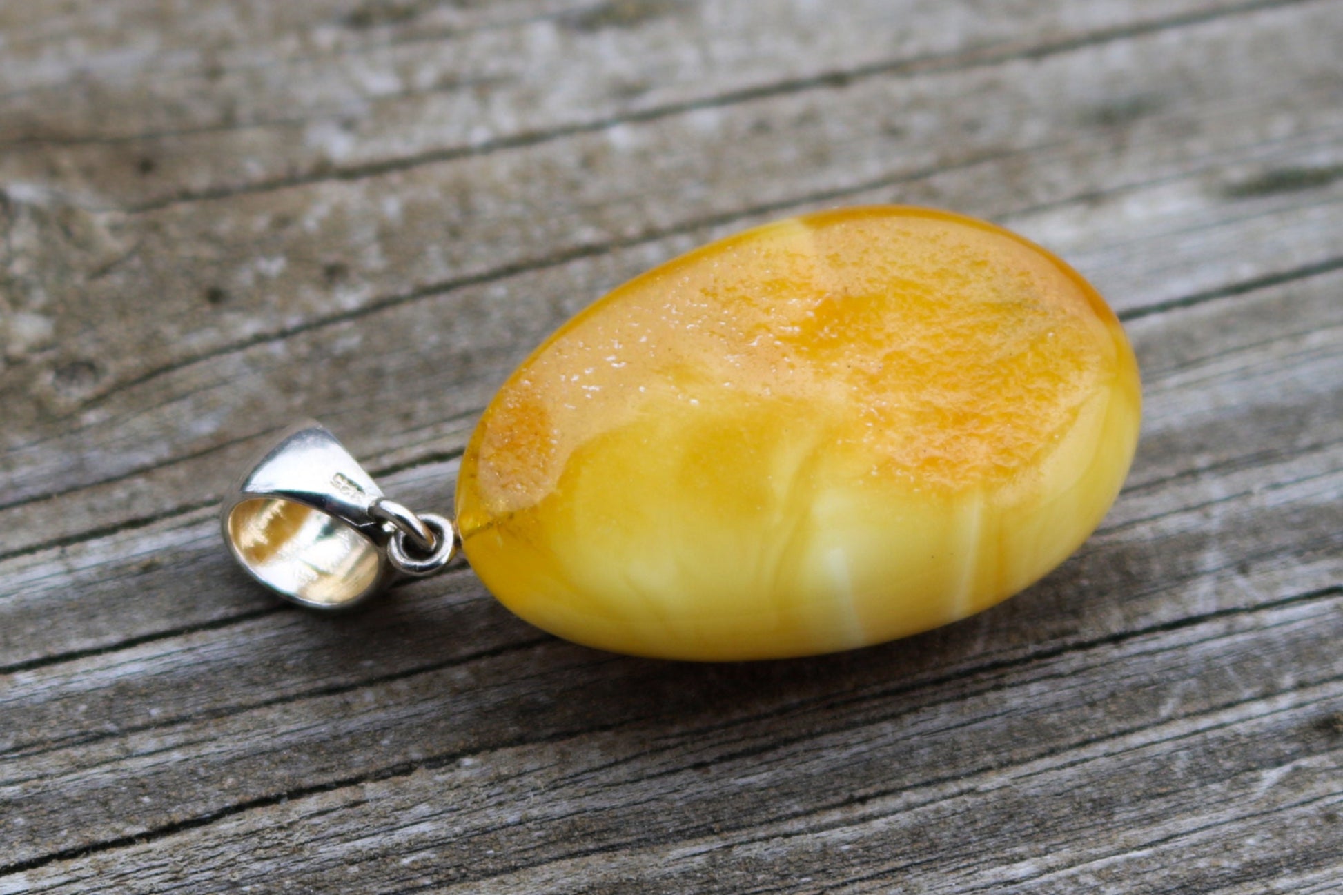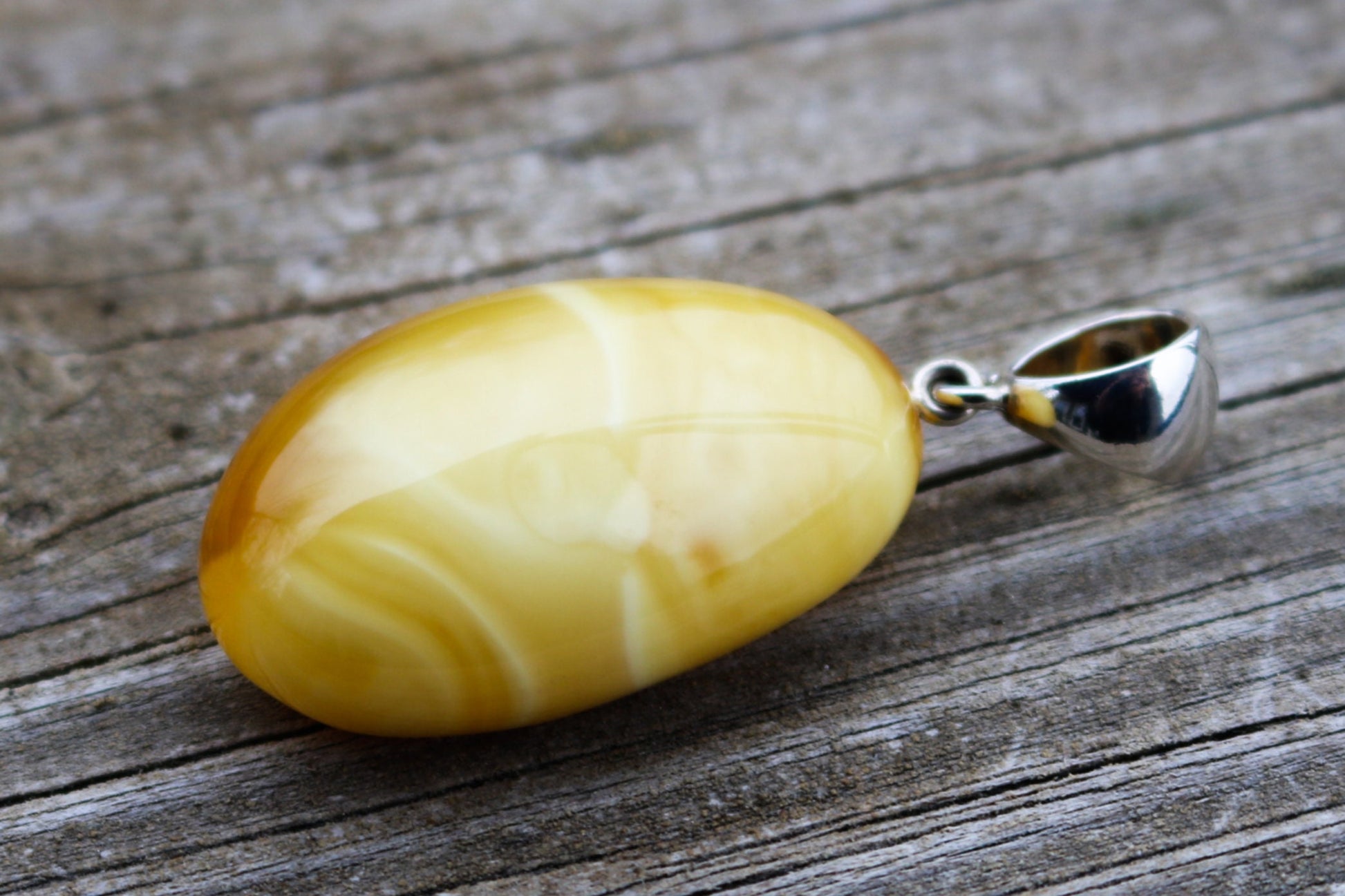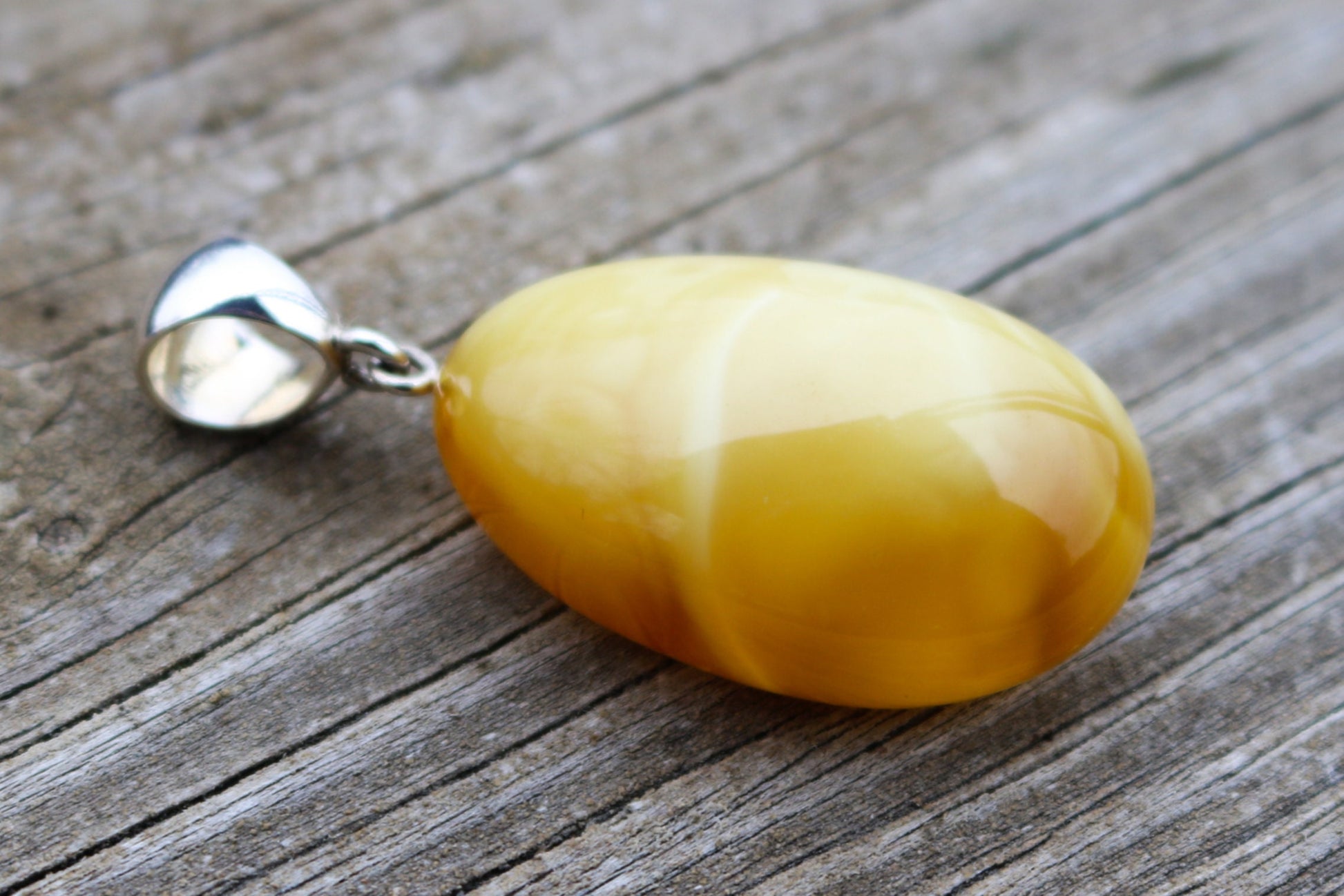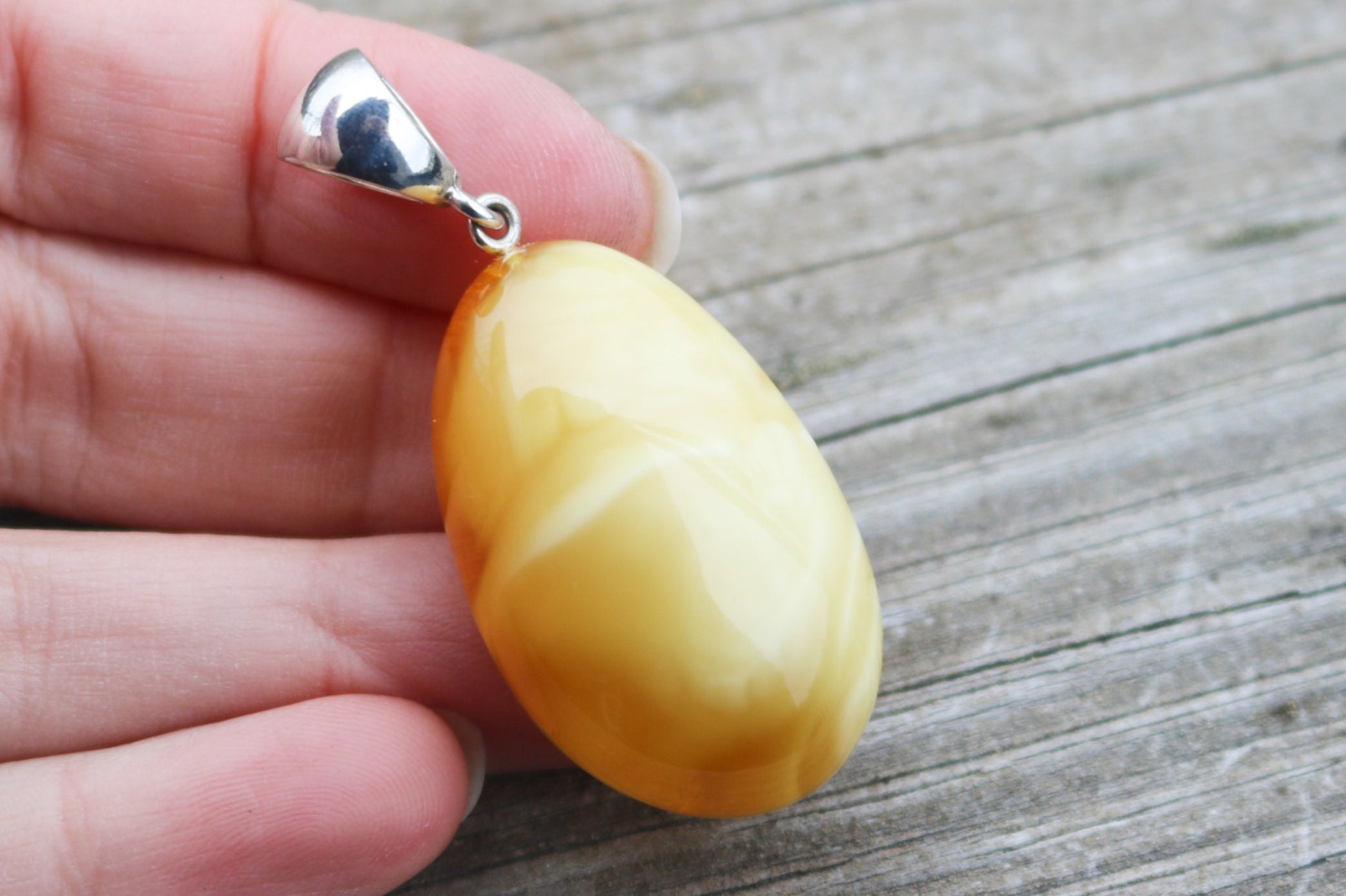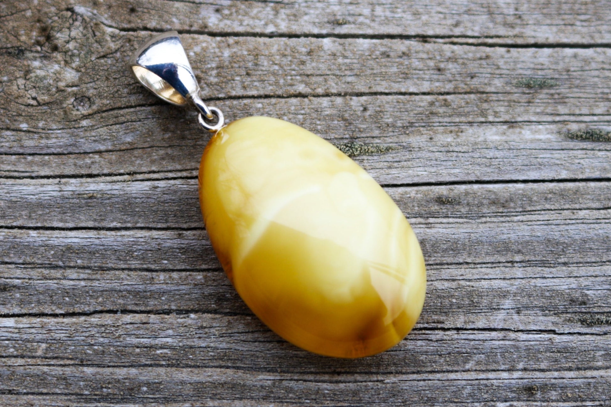 Baltic Amber pendant in natural untreated butterscotch color with milky swirls. Set in 925 sterling silver.