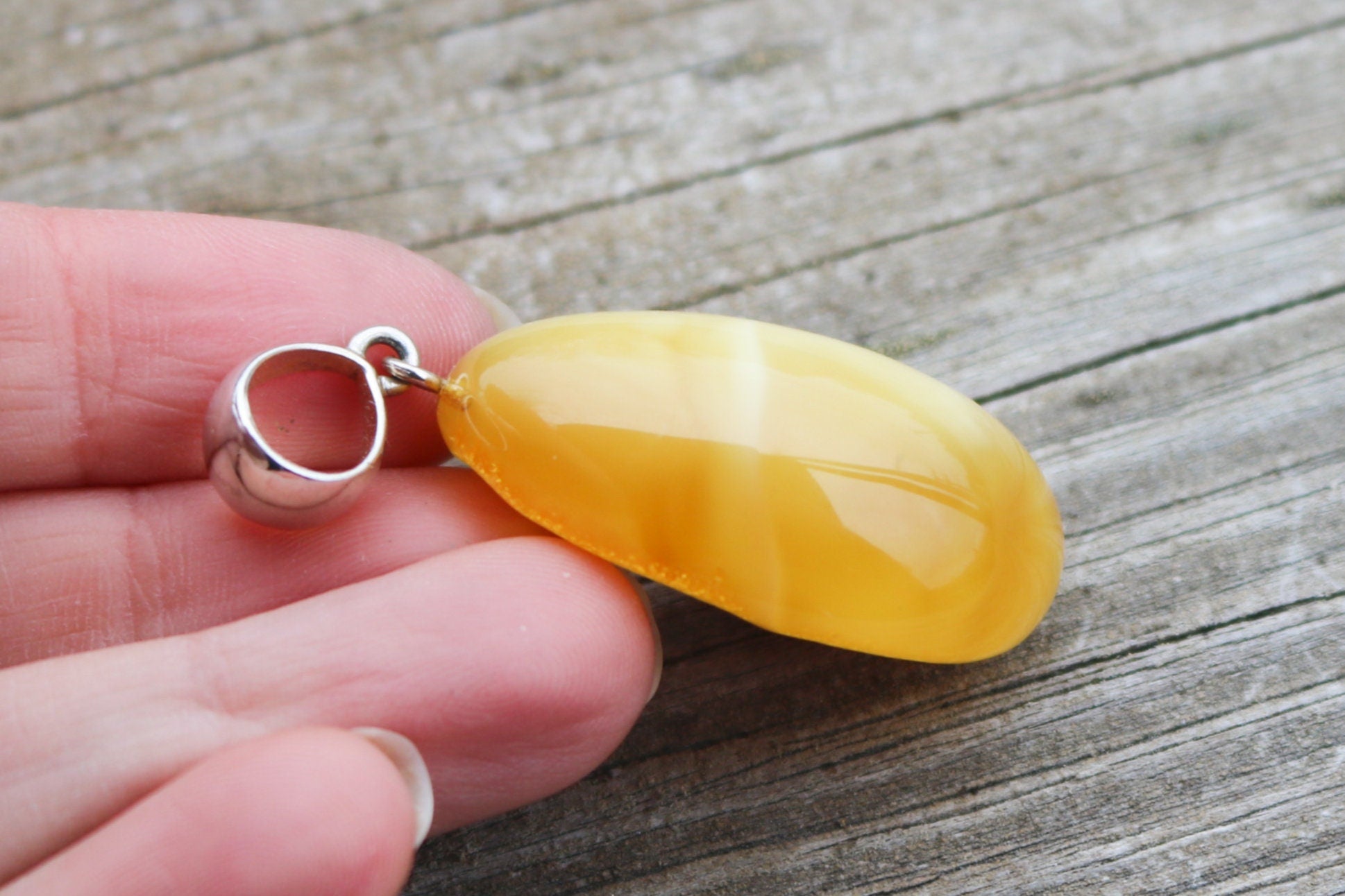 Baltic Amber Butterscotch Pendant Milky Natural Untreated Unisex 2" 8.5 gram 925 Silver