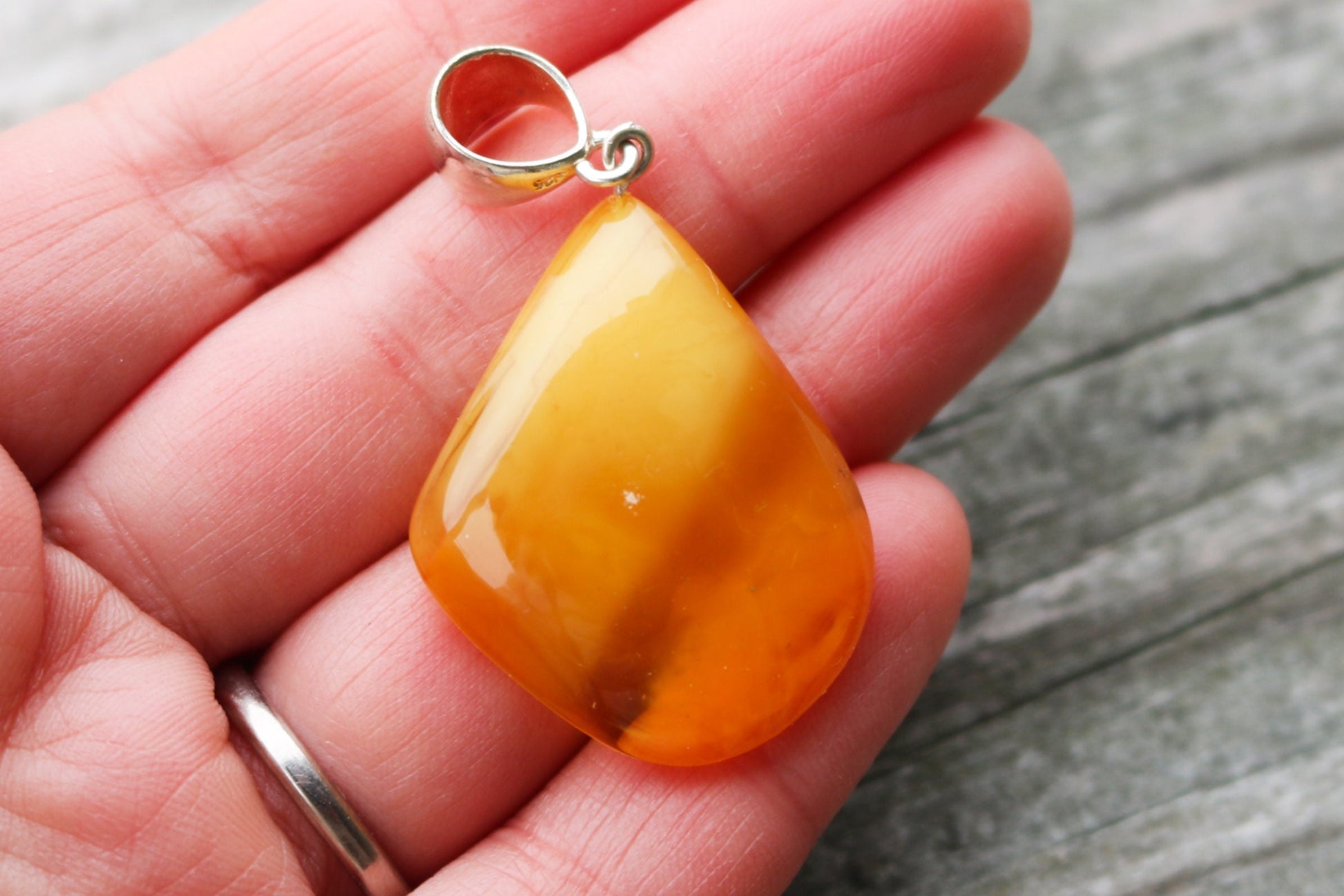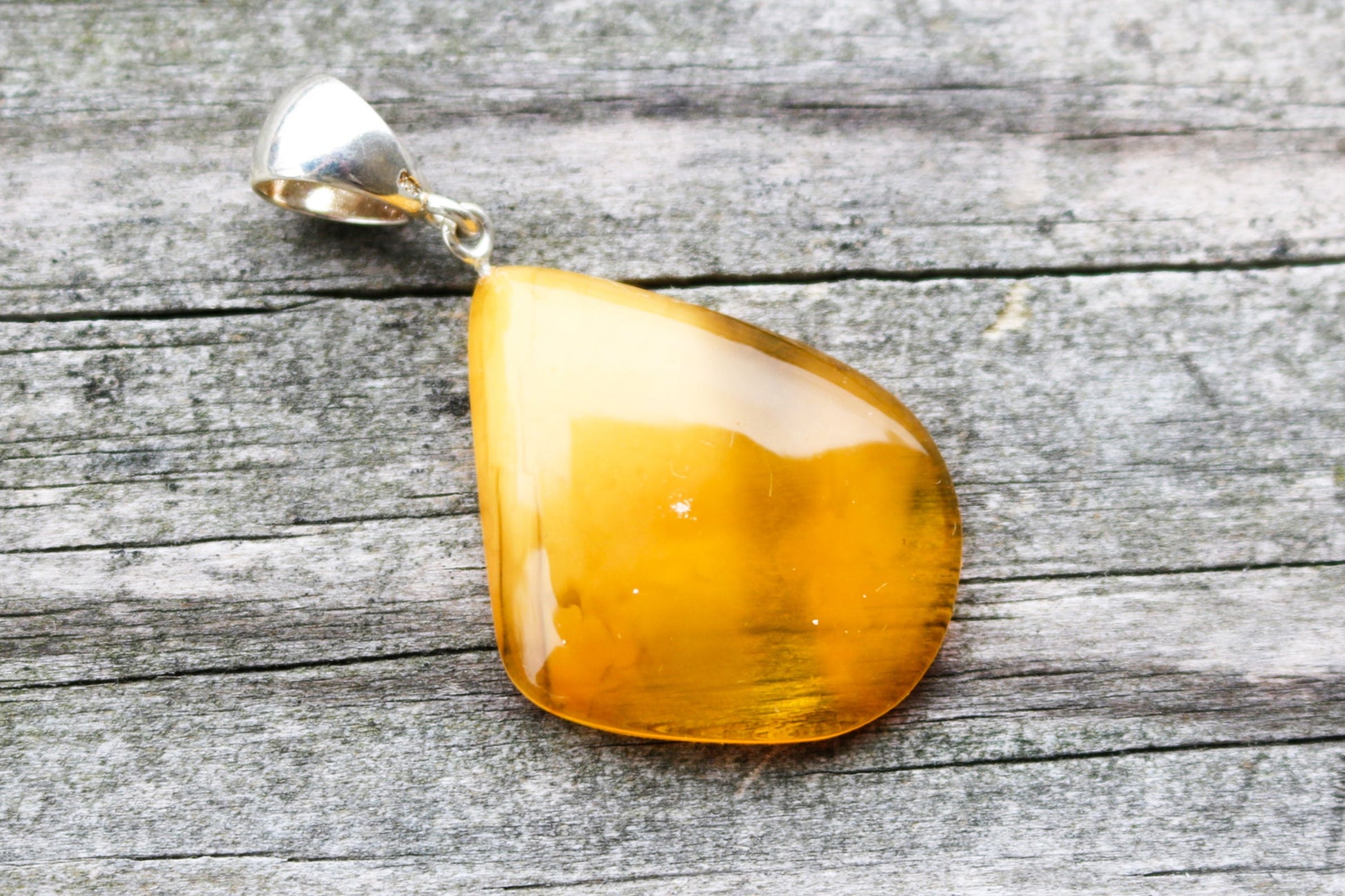 Baltic amber pendant in untreated cloudy butterscotch color.