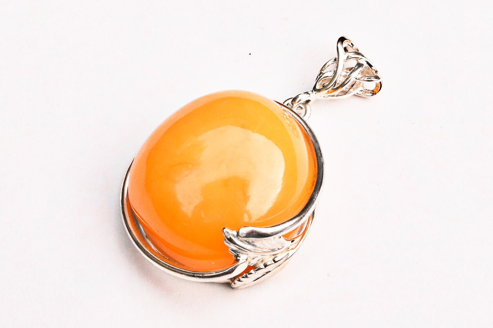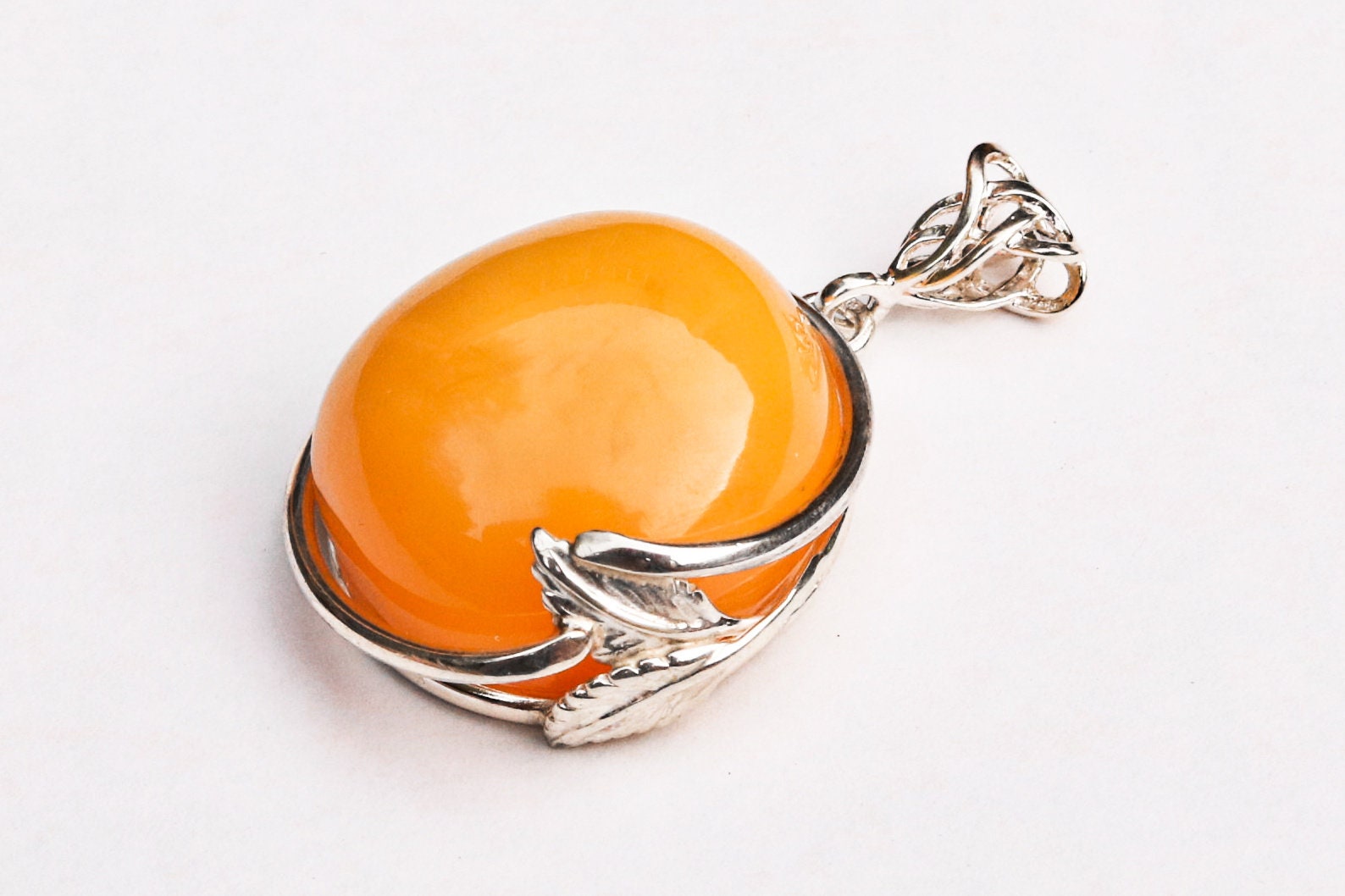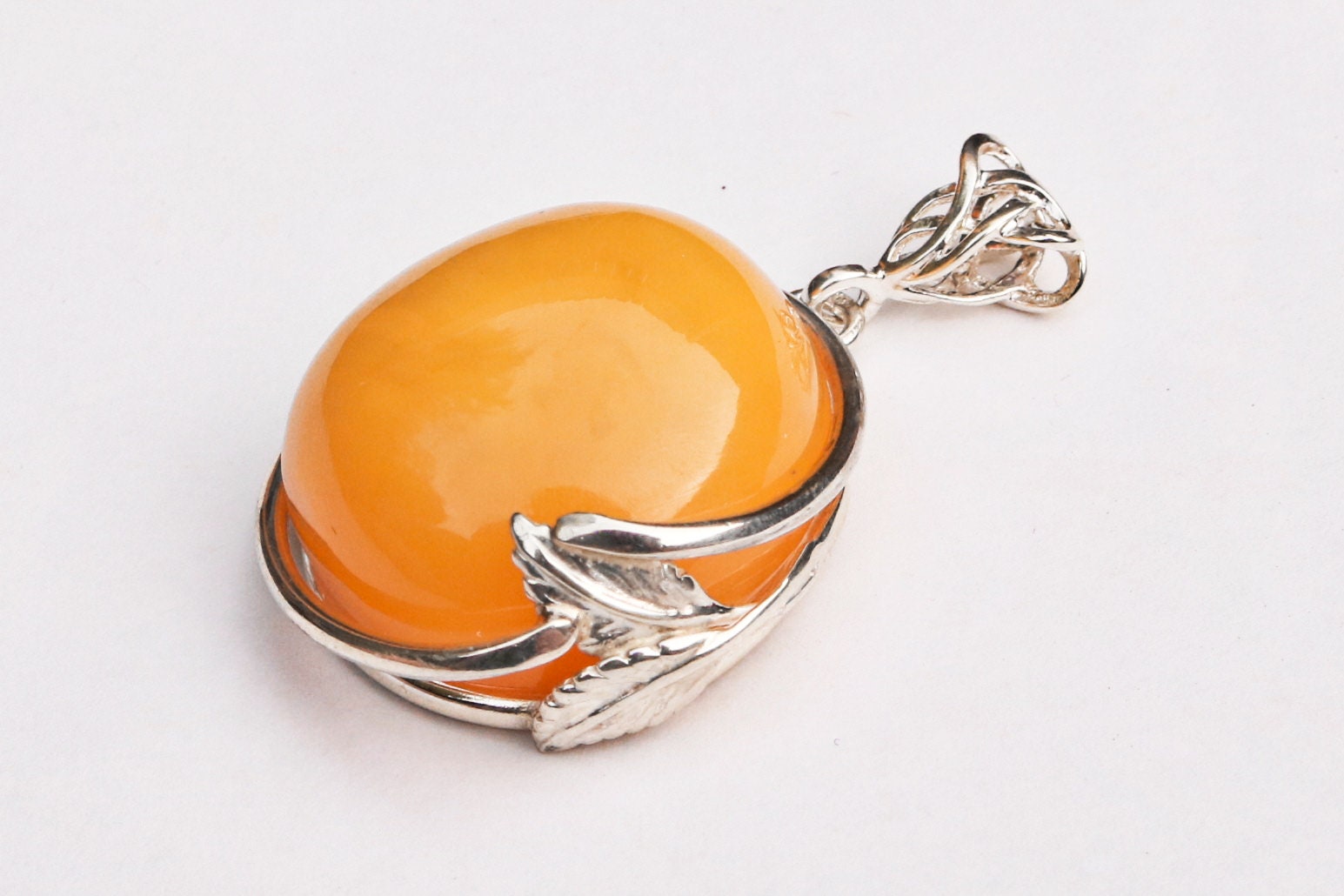 Baltic amber pendant in natural untreated butterscotch color. Set in 925 sterling silver.