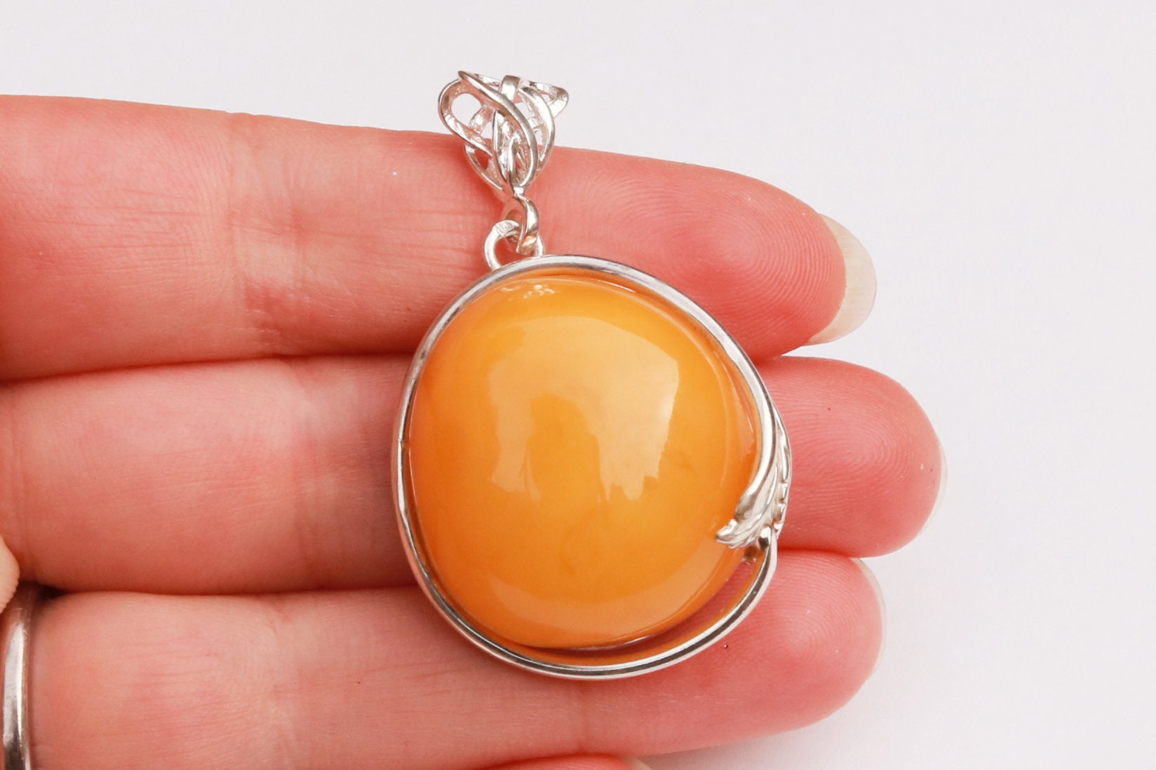 Baltic Amber Butterscotch Pendant Natural Unisex Jewelry 1.8" 10.7 gram 925 Silver