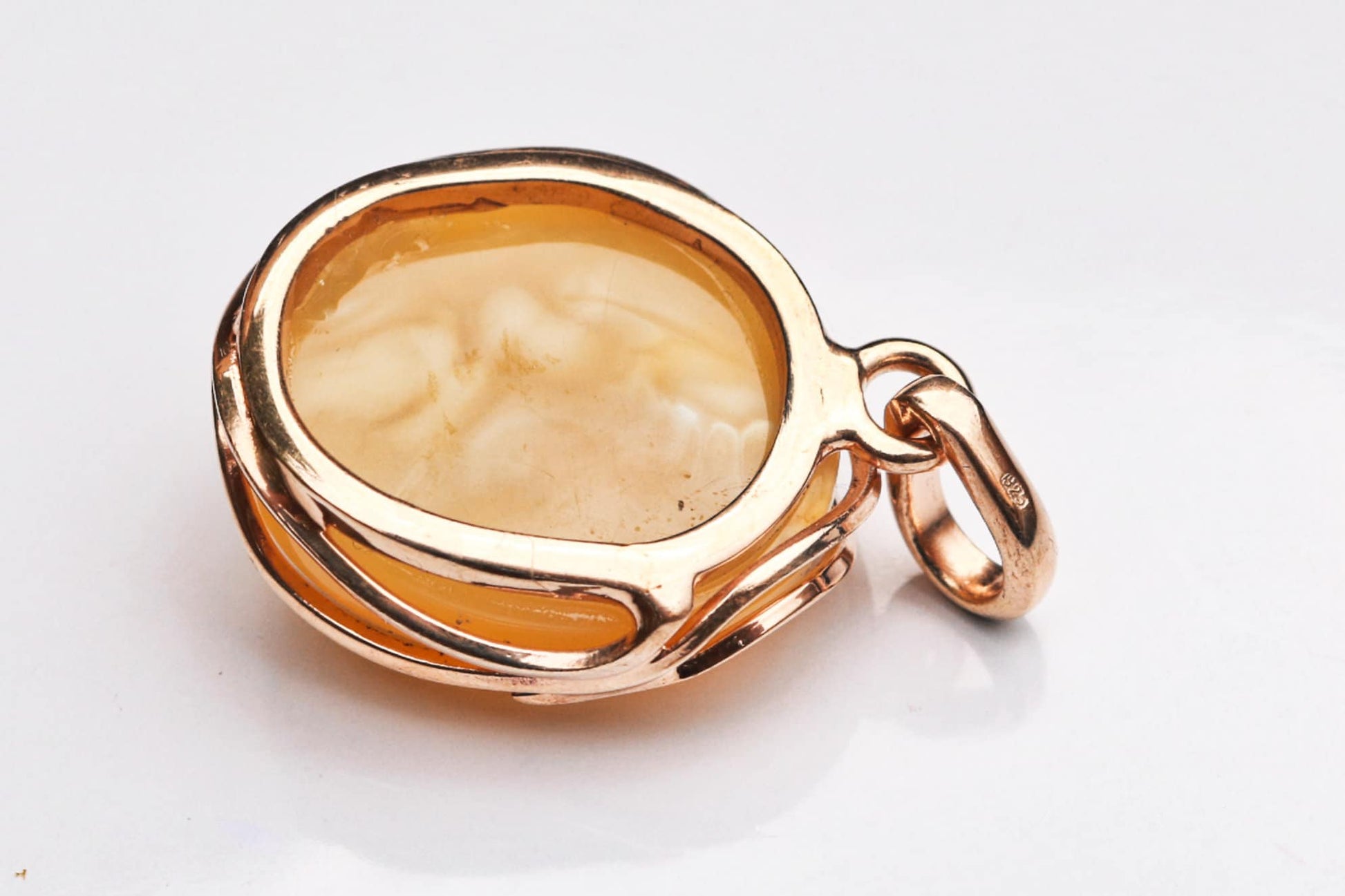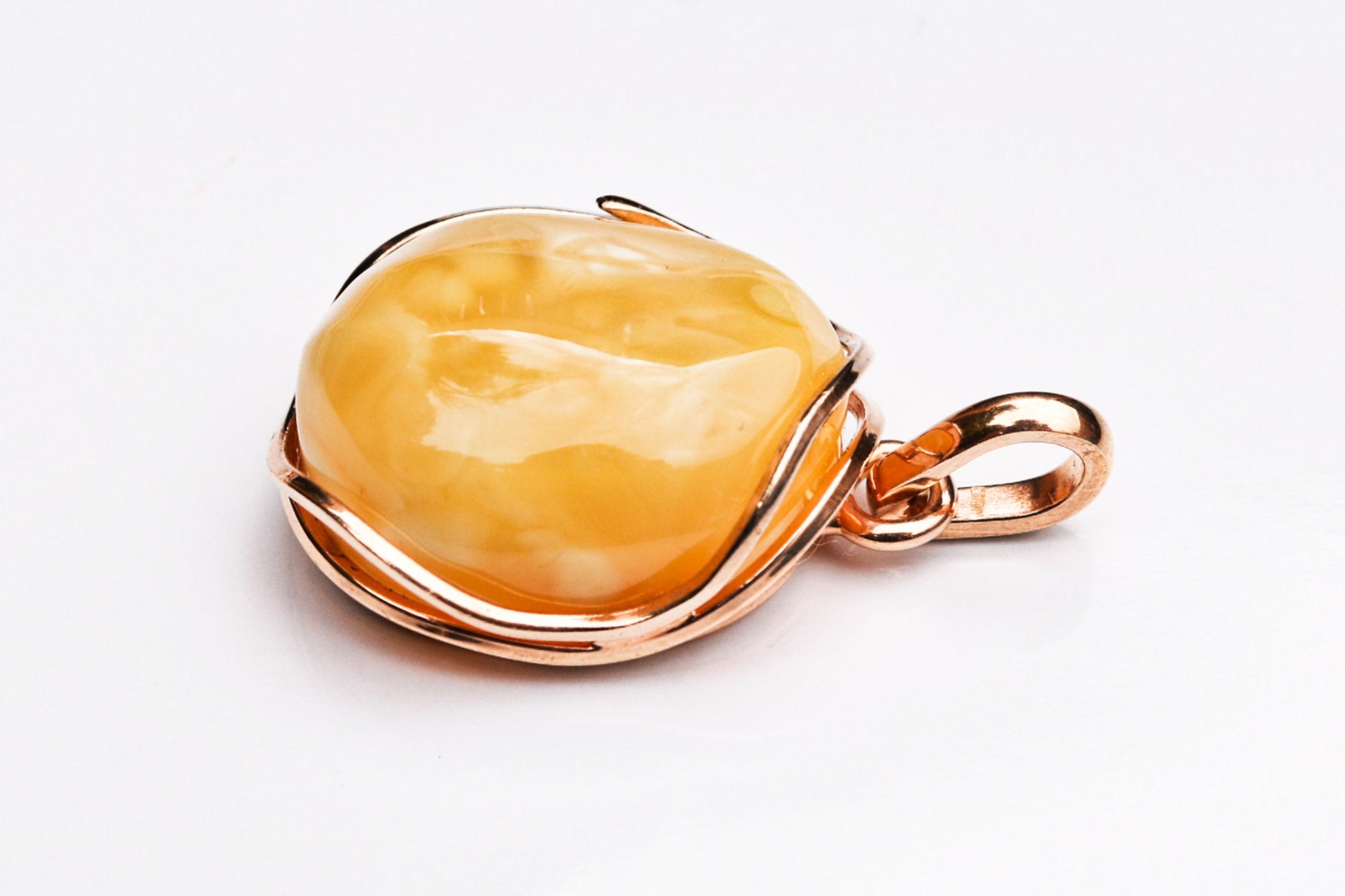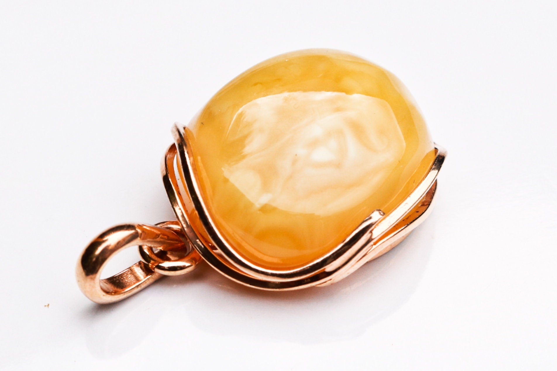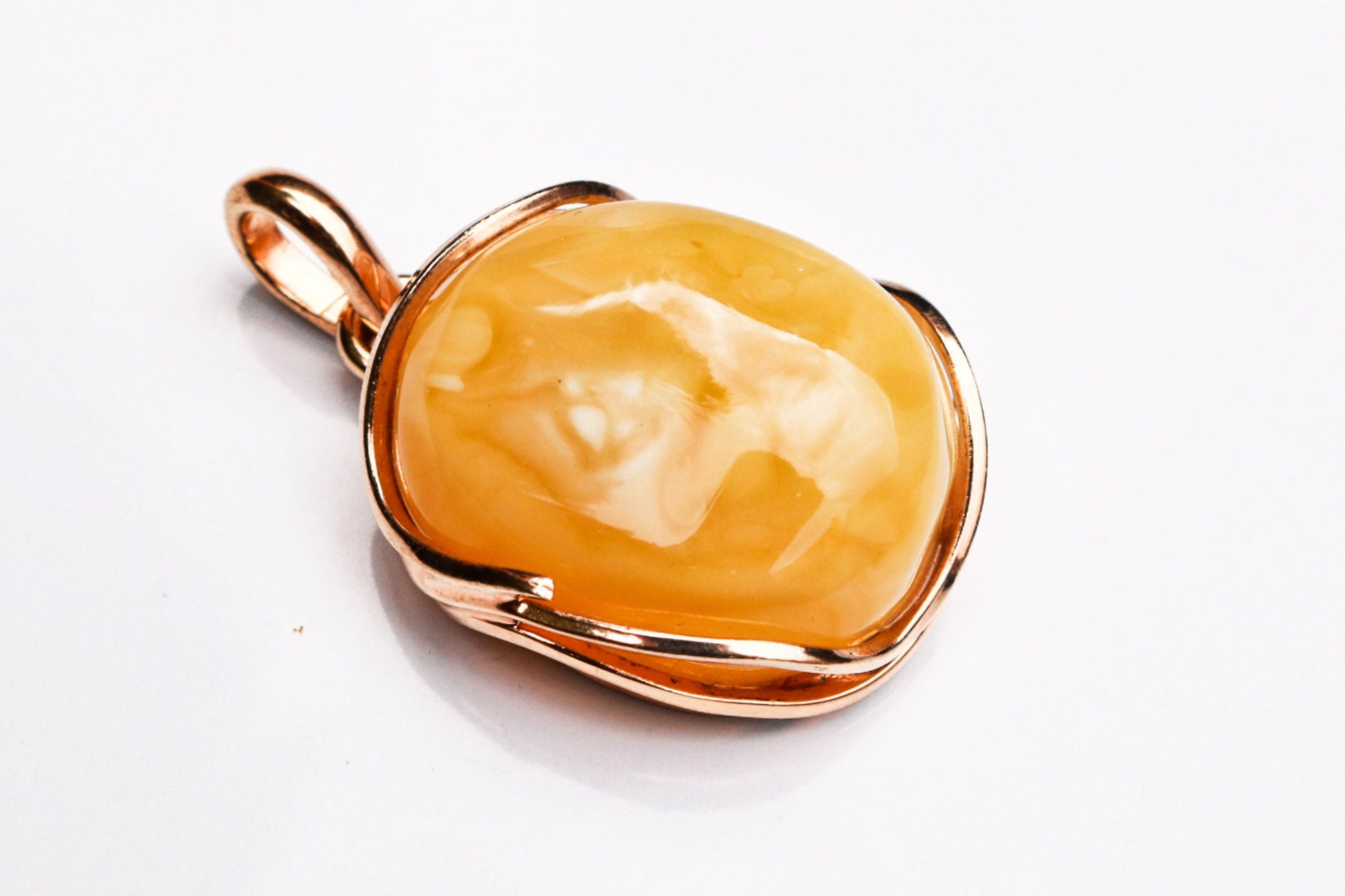 Rare Baltic Amber pendant in natural untreated butterscotch color with gorgeous milky swirls. Set in 925 gold plated sterling silver.