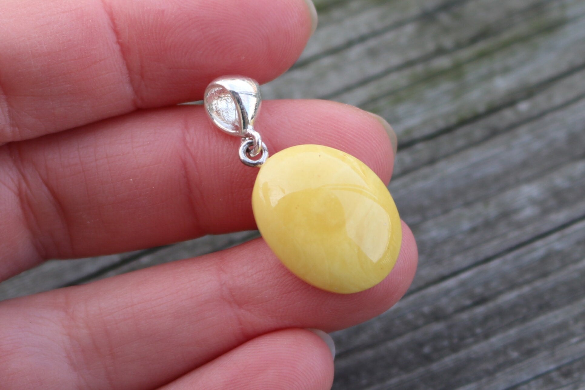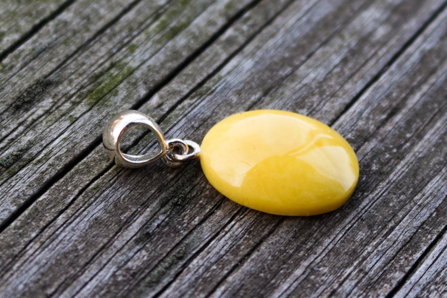 Baltic Amber Butterscotch Pendant Oval Natural Untreated Jewelry 1.28" 2 gram 925 Silver