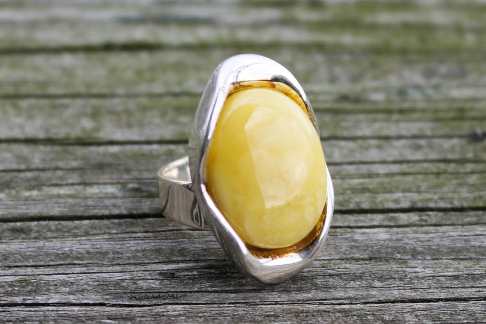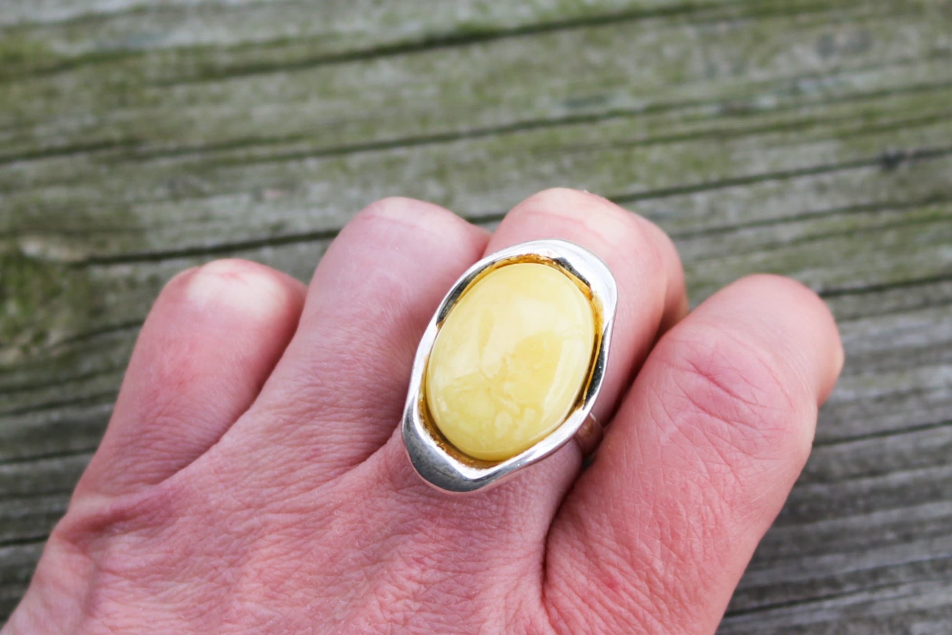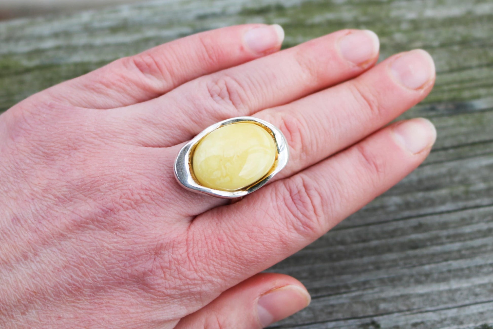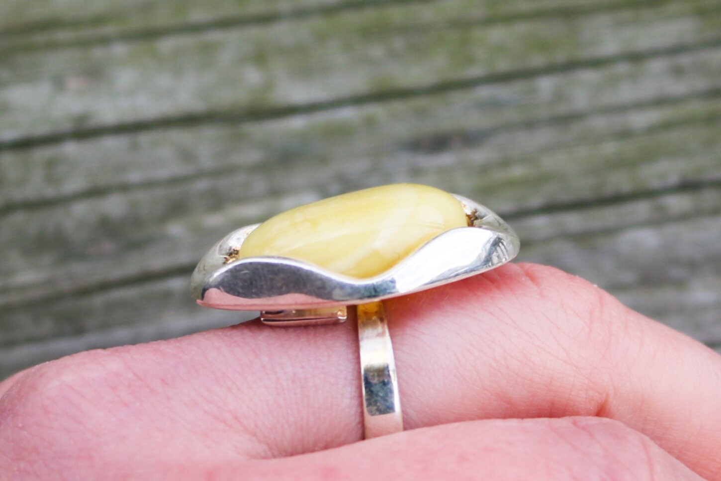 Baltic Amber Butterscotch Ring Adjustable Oval Natural Untreated 925 Silver 13.1 gram