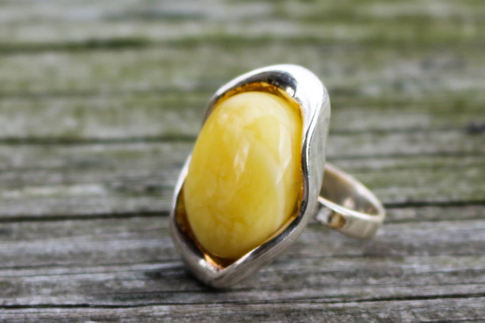 Baltic Amber ring in natural untreated butterscotch color with swirls. Set in 925 sterling silver. This ring is adjustable. Will fit any size.