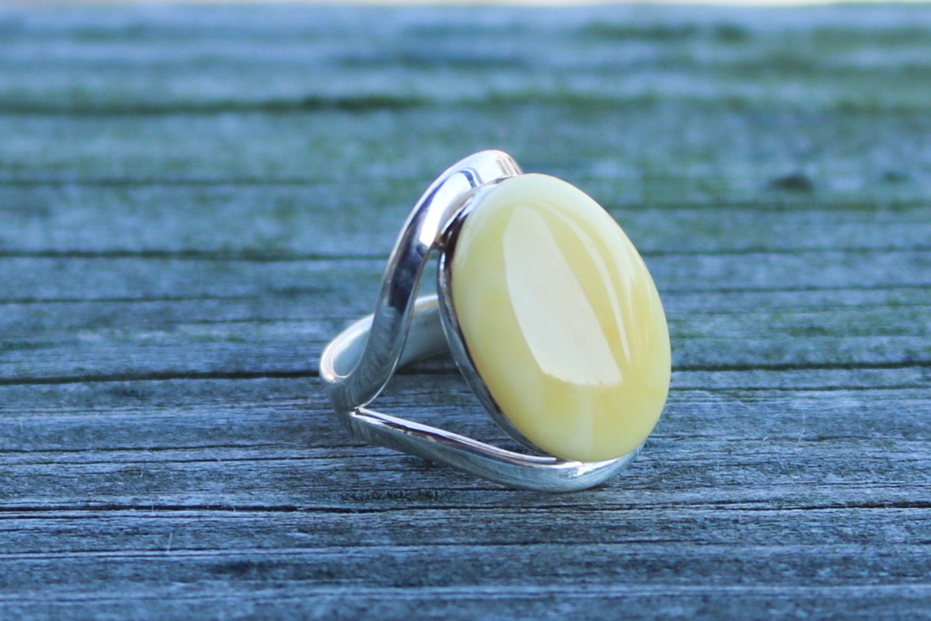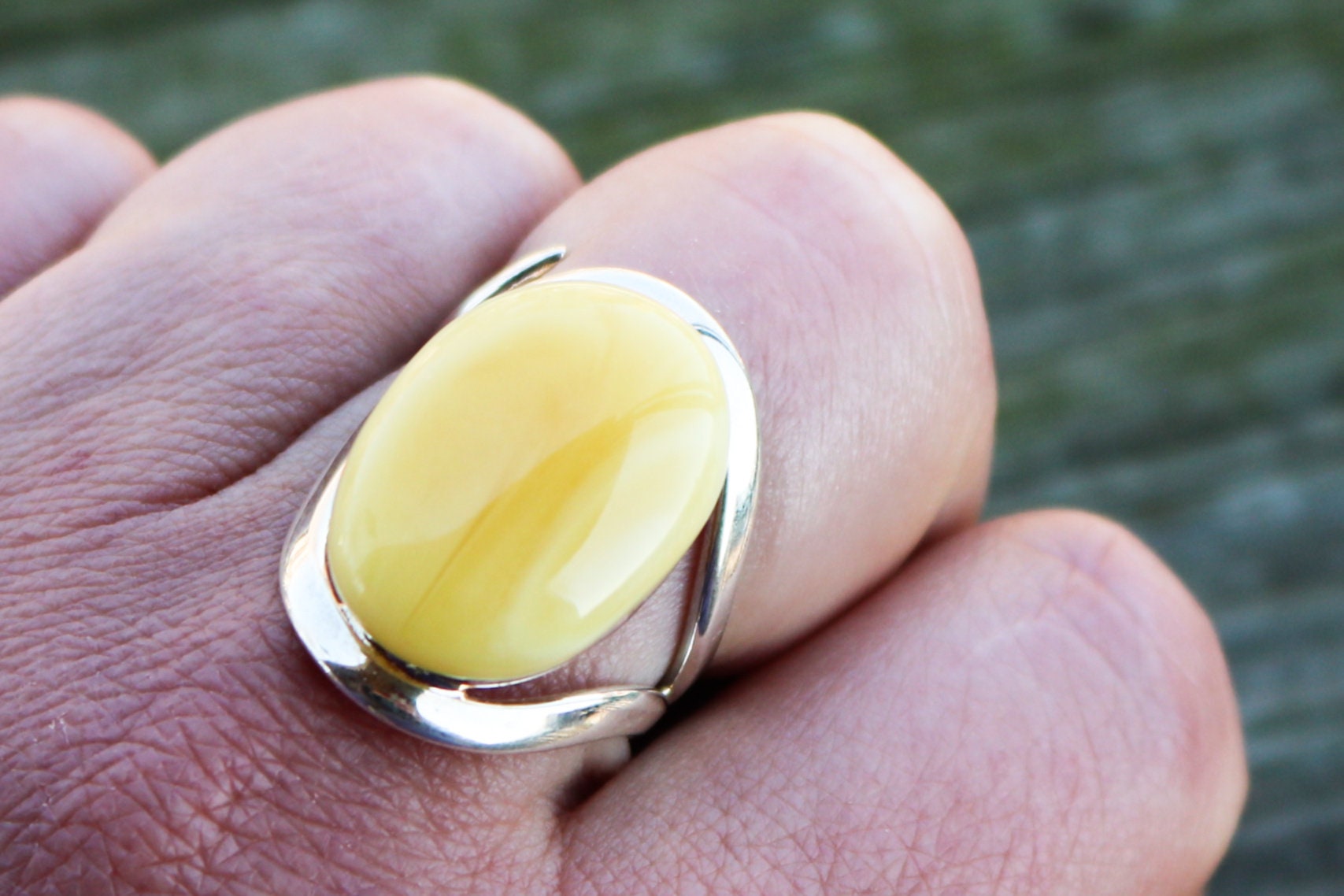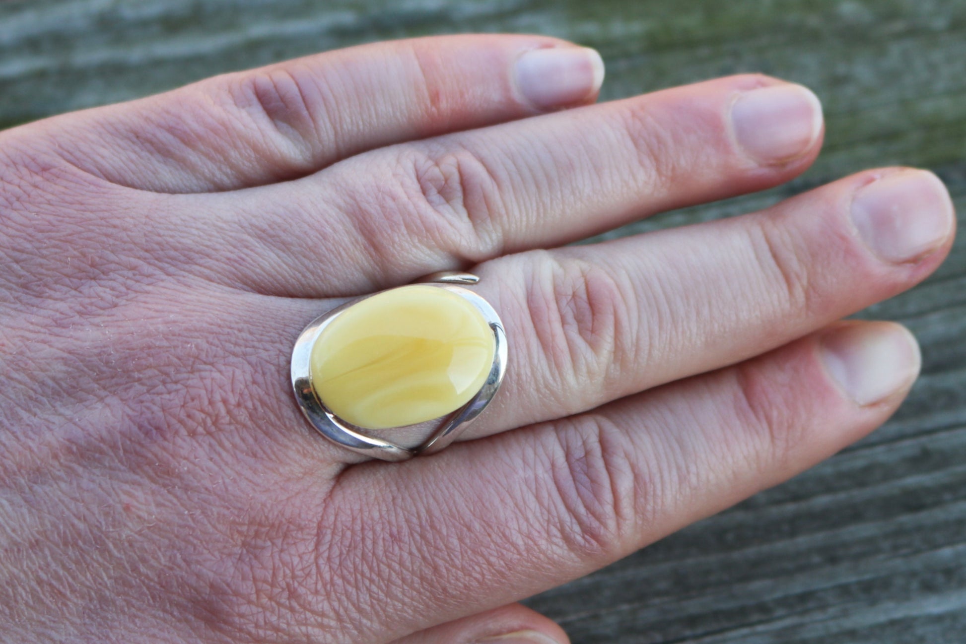 Baltic Amber Butterscotch Ring Milky Oval Adjustable Untreated Natural Jewelry 925 Silver 7.8 gram