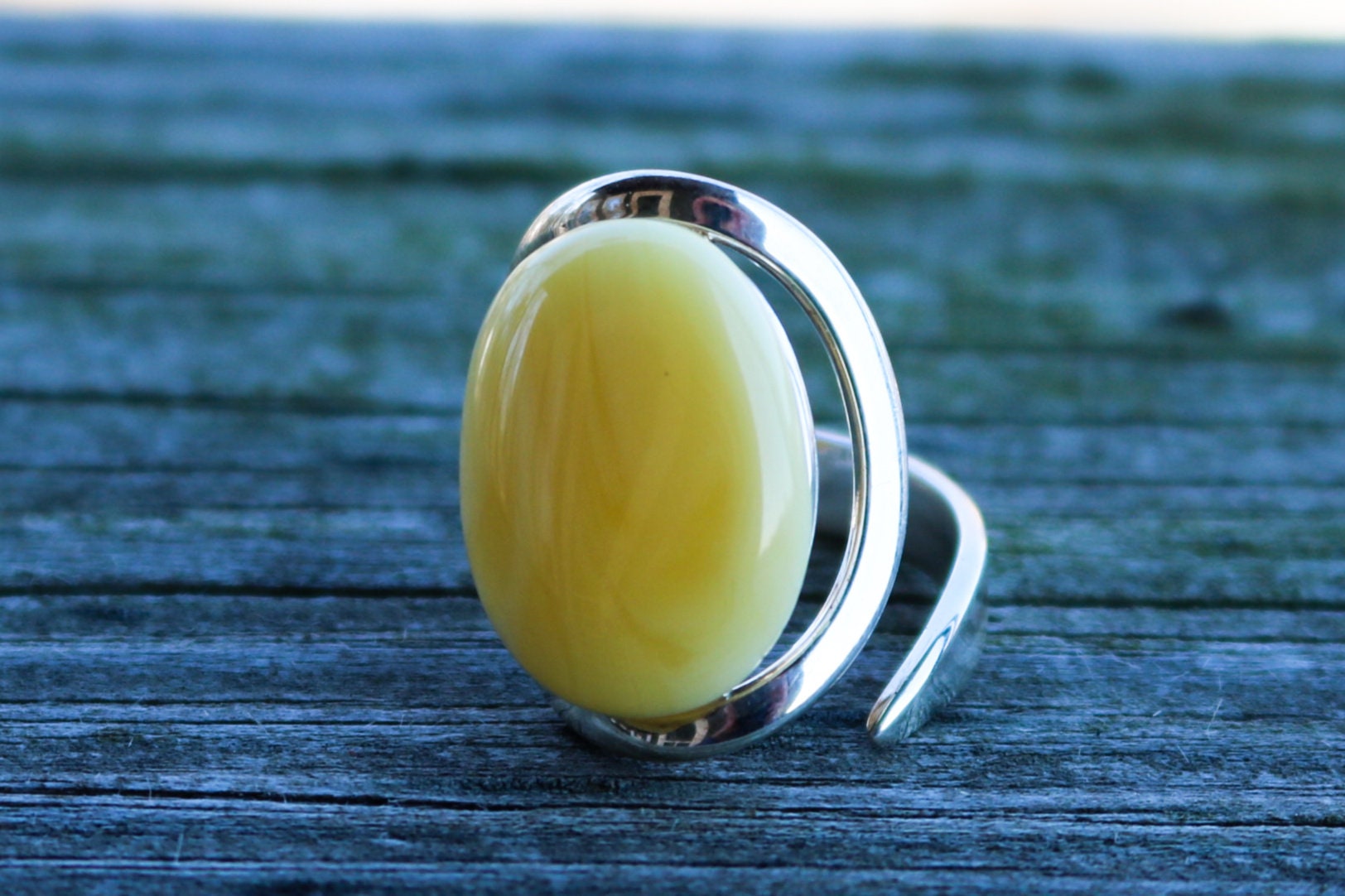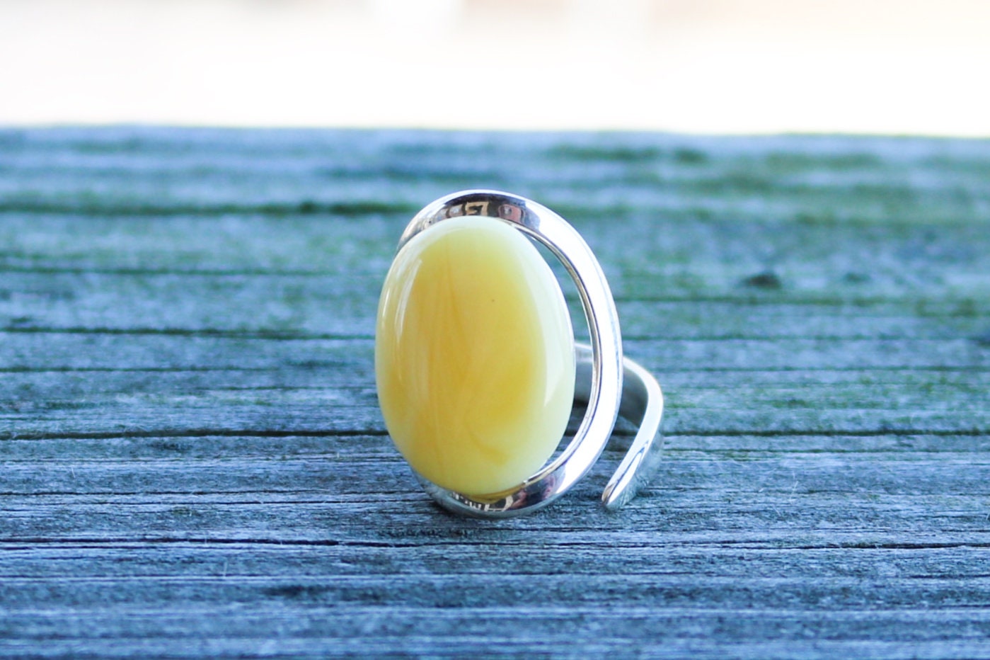 Baltic Amber oval ring in butterscotch color. Set in 925 sterling silver. Natural untreated stone. This ring is adjustable. Will fit any size.