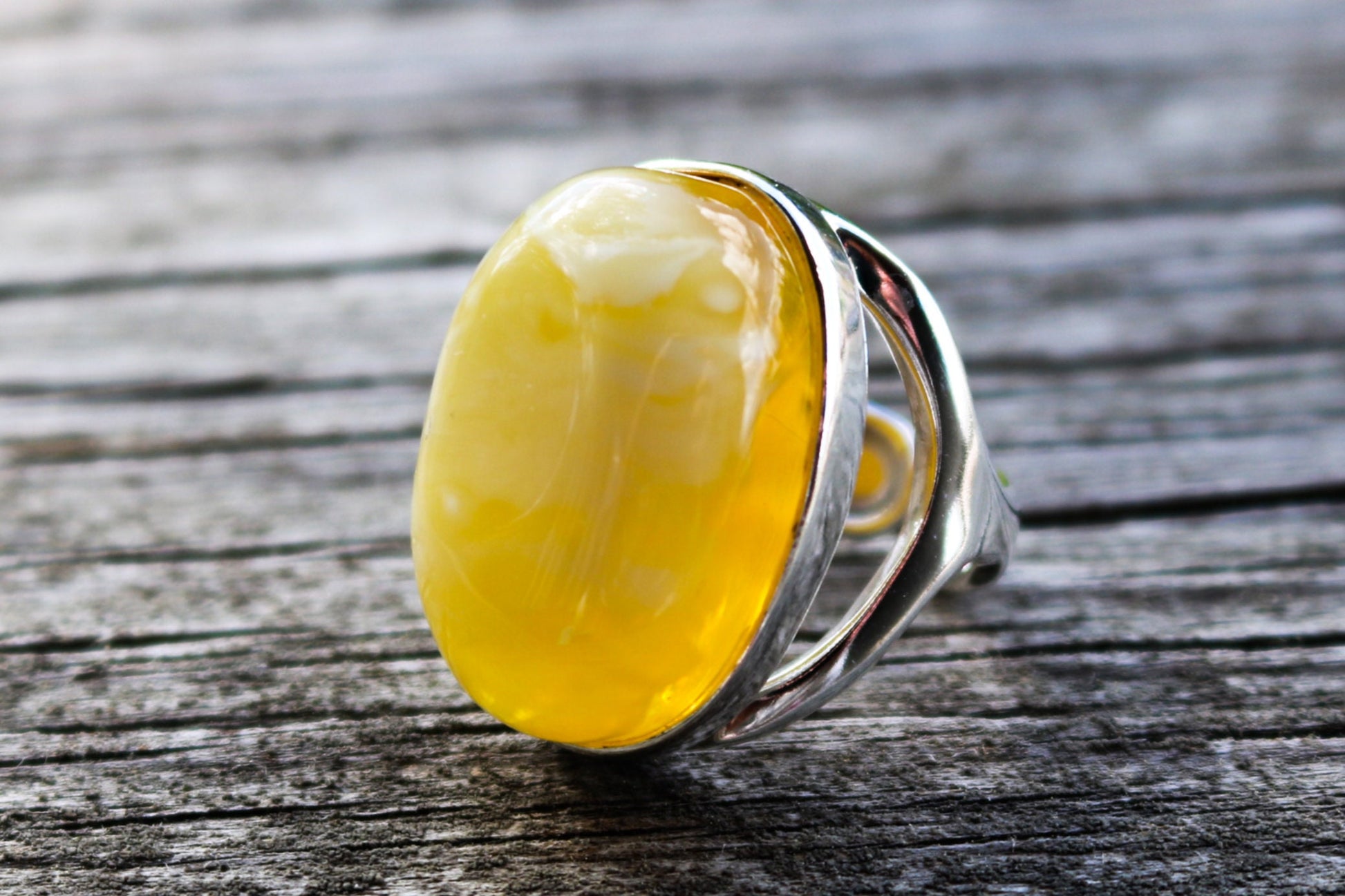 Baltic Amber Butterscotch Ring Oval Adjustable Untreated Natural Jewelry 925 Silver 13.3 gram