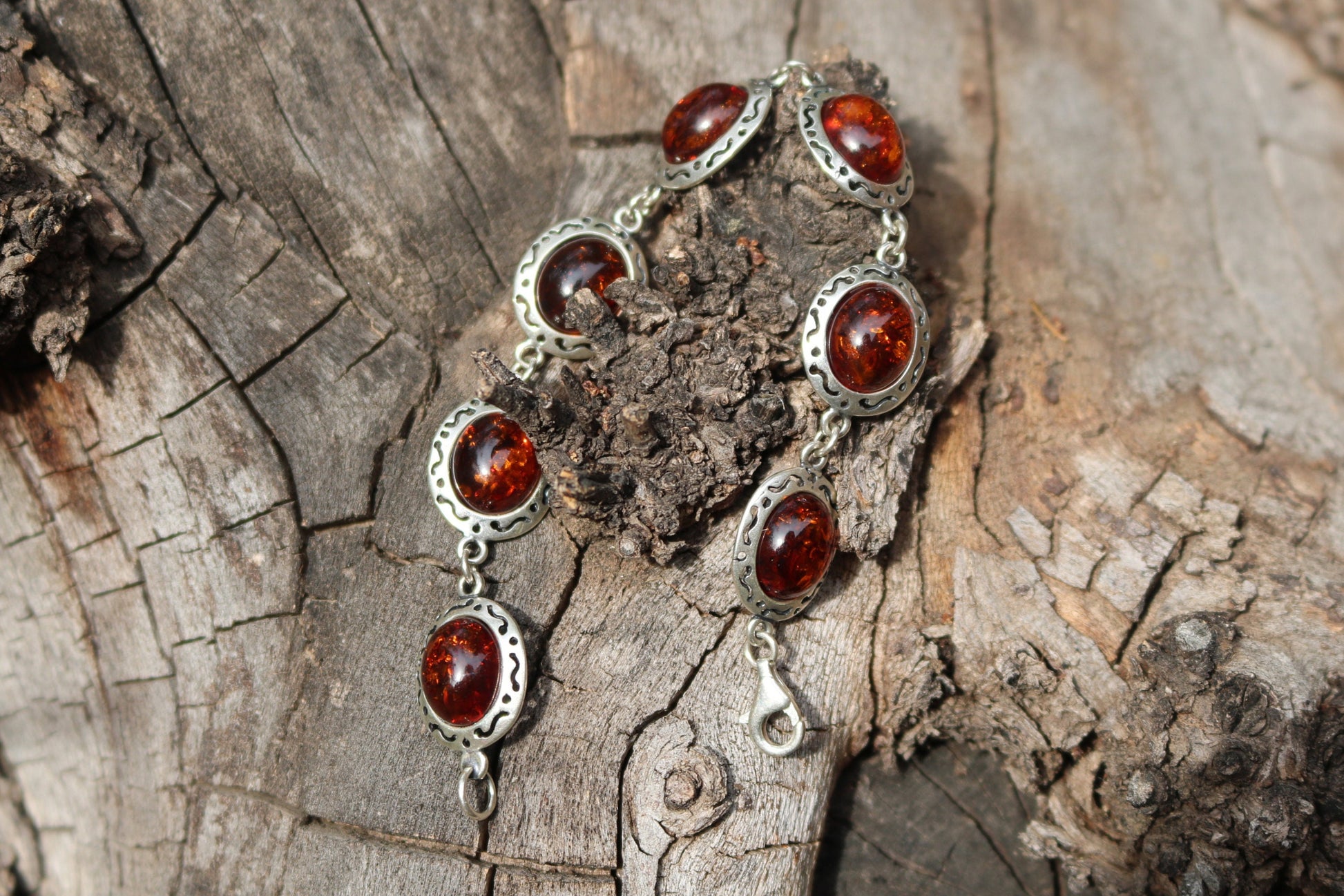 Baltic Amber Chain Bracelet Cherry Natural Jewelry Silver 7″ 925 Silver