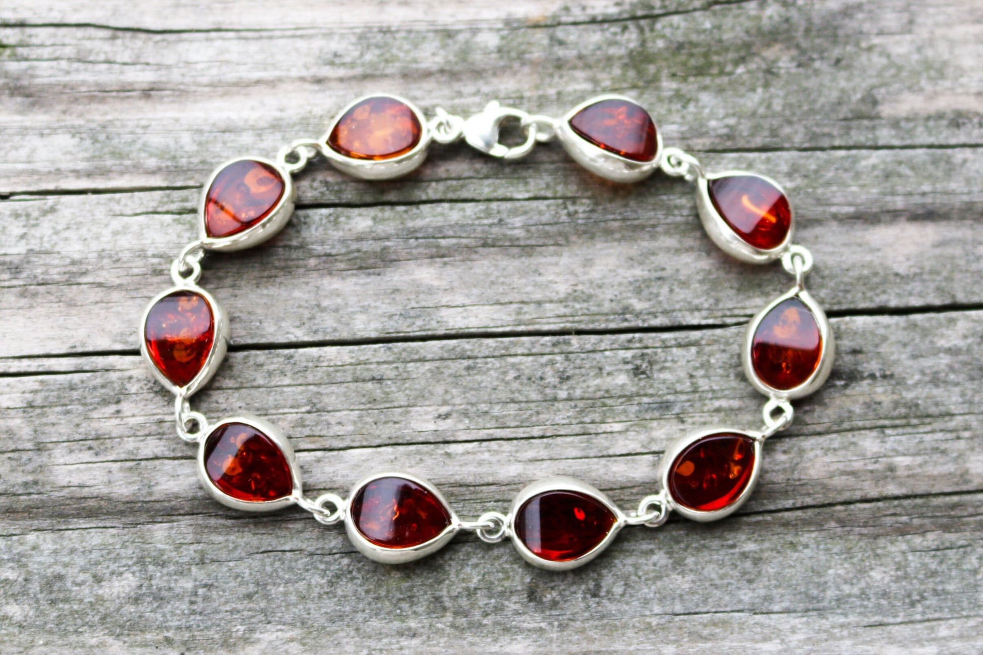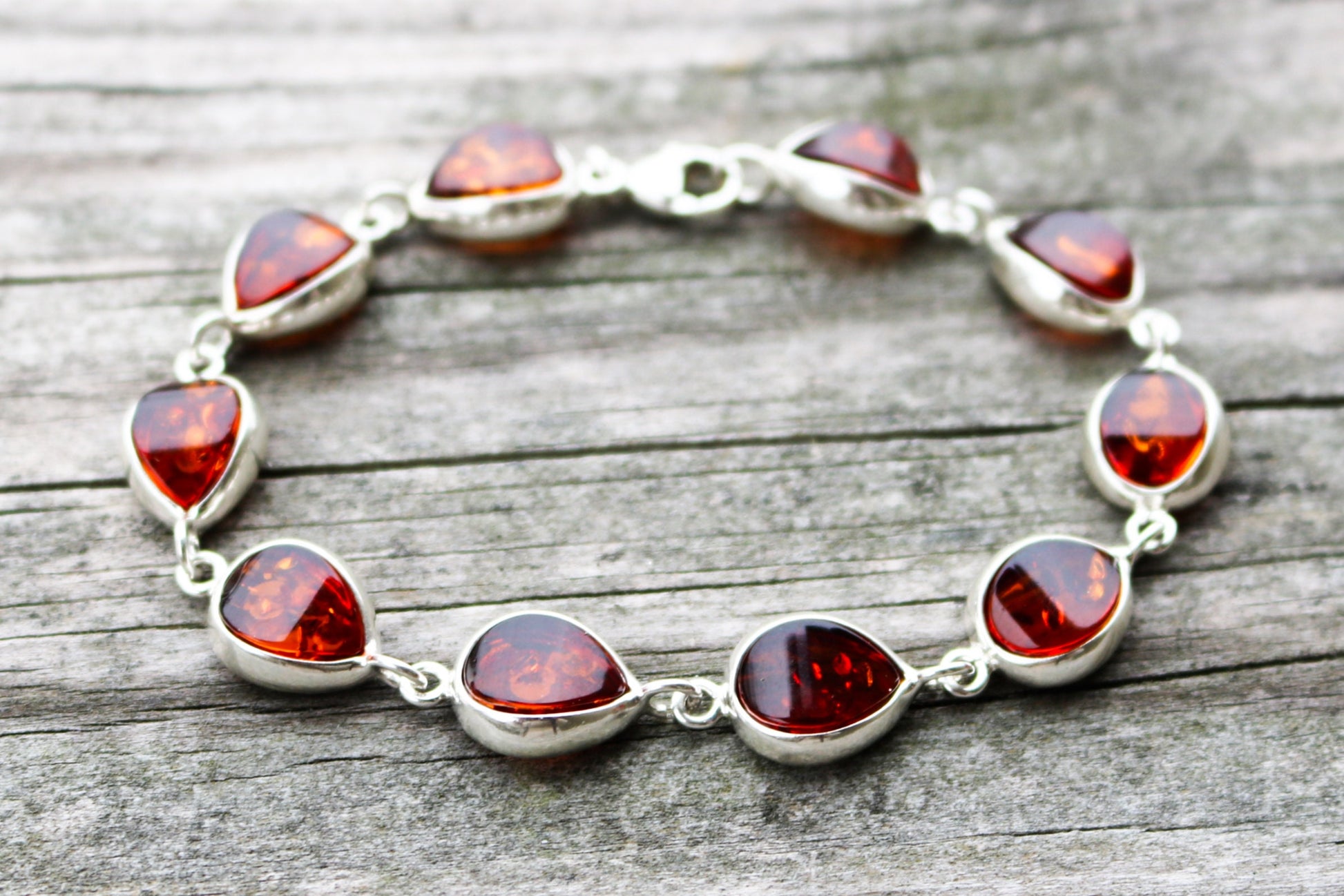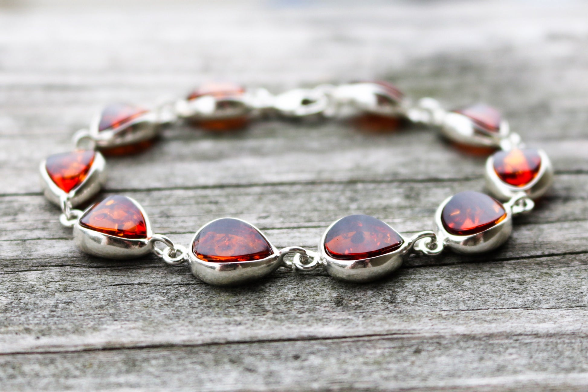Cognac Baltic Amber chain bracelet set in 925 sterling silver.