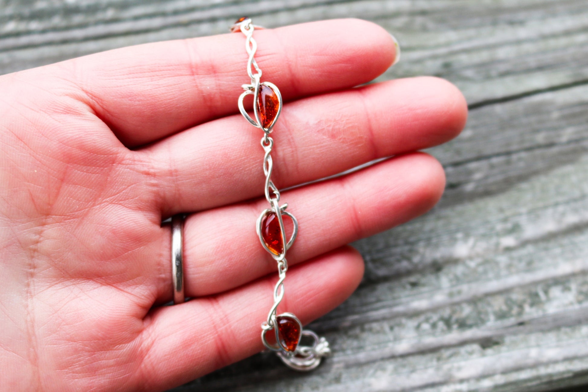 Baltic Amber Chain Bracelet Cognac Natural 7" 925 Silver 5 gram