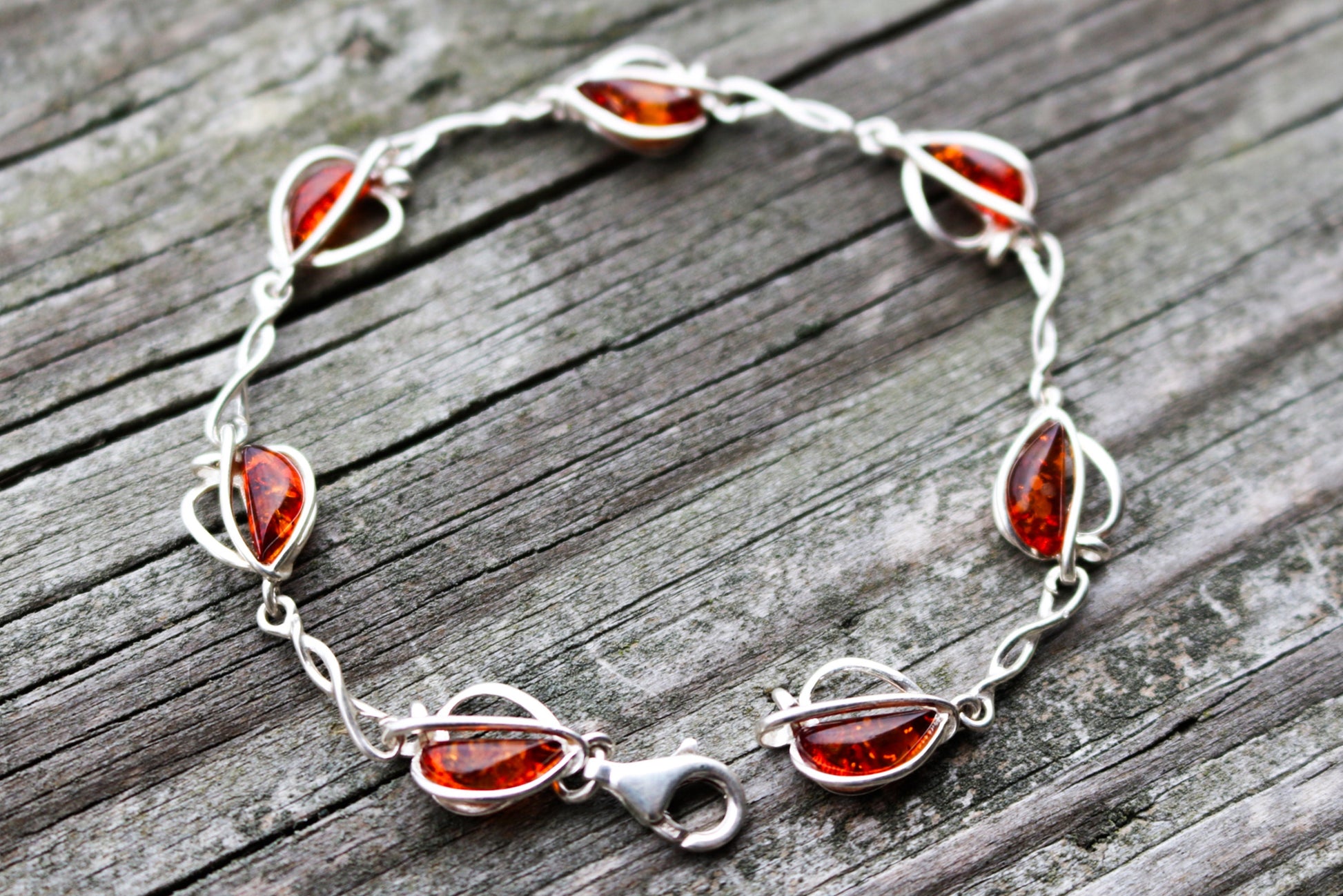 Baltic Amber bracelet made out of cognac color beads and set in 925 sterling silver.